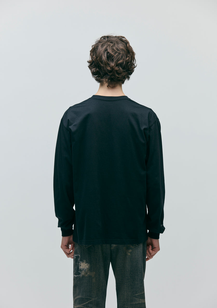 コットン天竺のオリジナルボディーを使用したロングスリーブTシャツ。左胸にロゴをプリント。ワンウォッシュ。