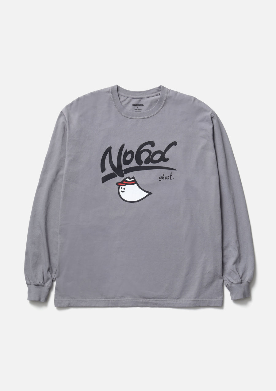 コットン天竺のオリジナルボディーを使用したロングスリーブTシャツ。フロントにghost.によるグラフィックをプリント。ワンウォッシュ。