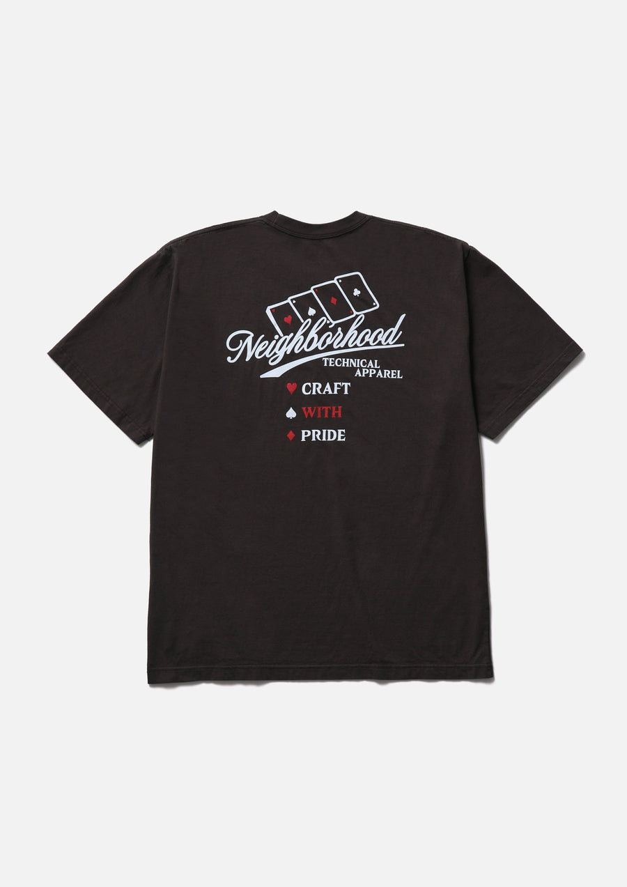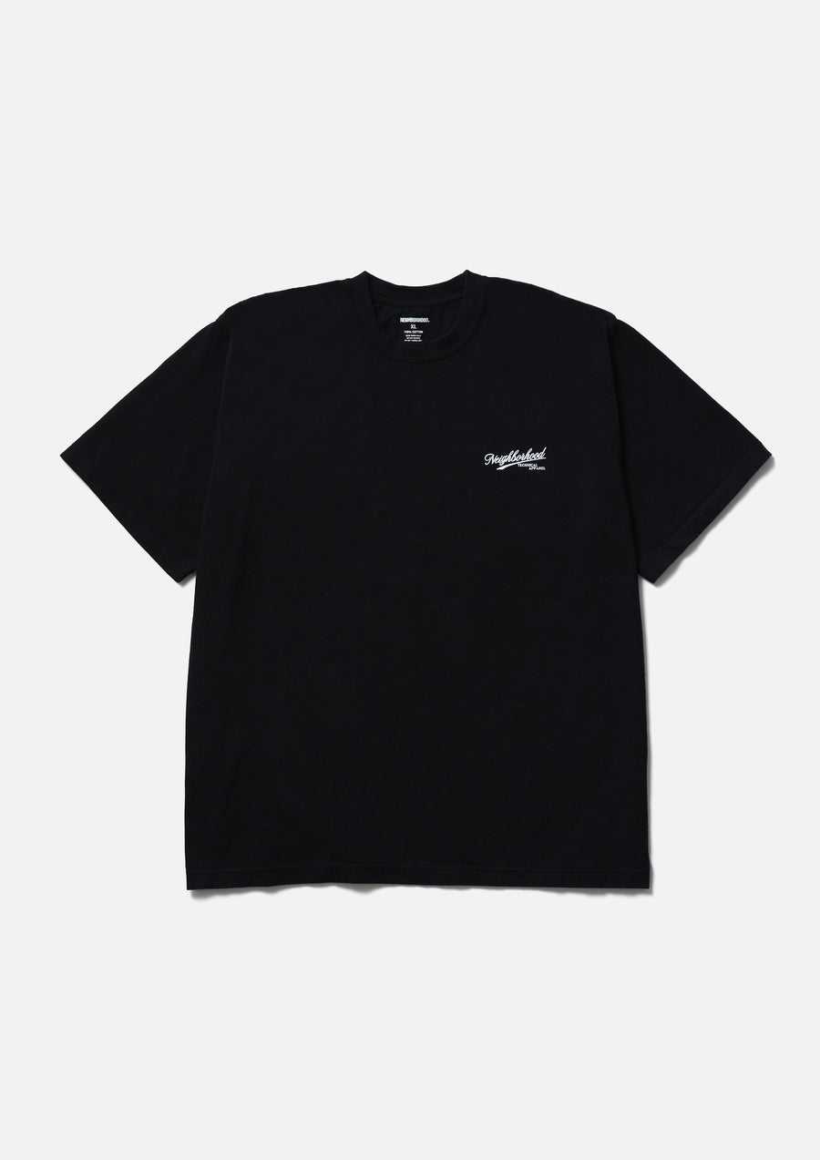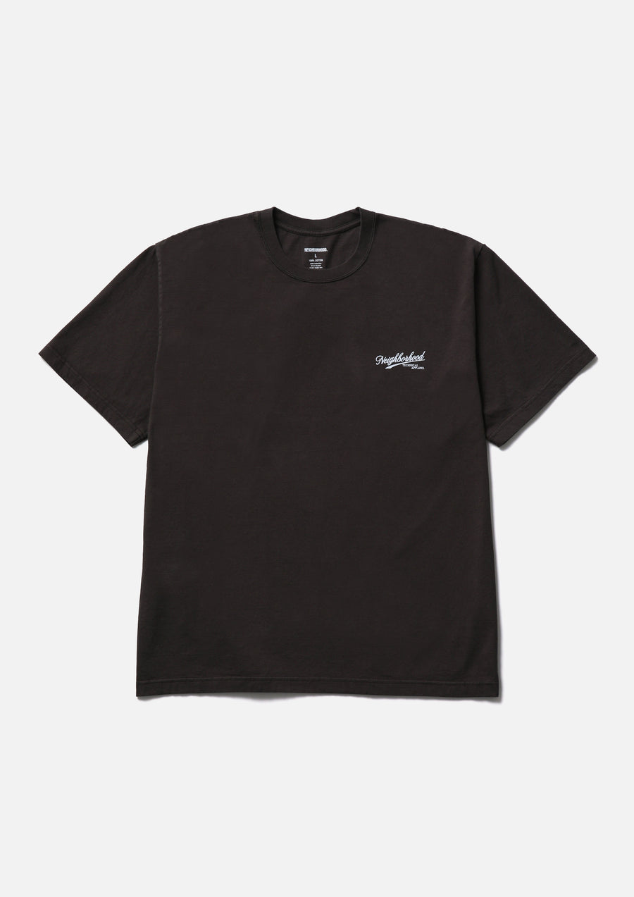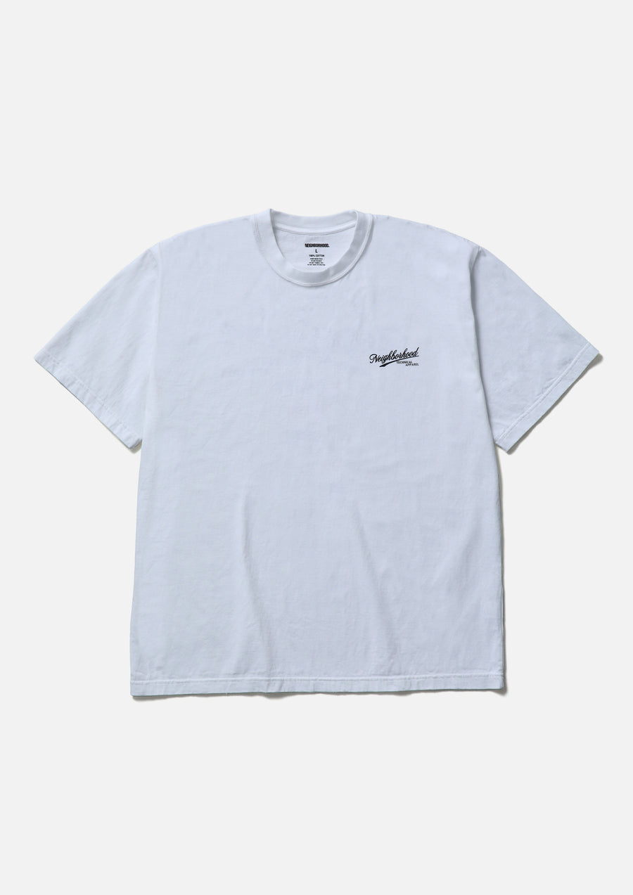 コットン天竺のオリジナルボディーを使用したショートスリーブTシャツ。左胸と背面にグラフィックをプリント。ワンウォッシュ。