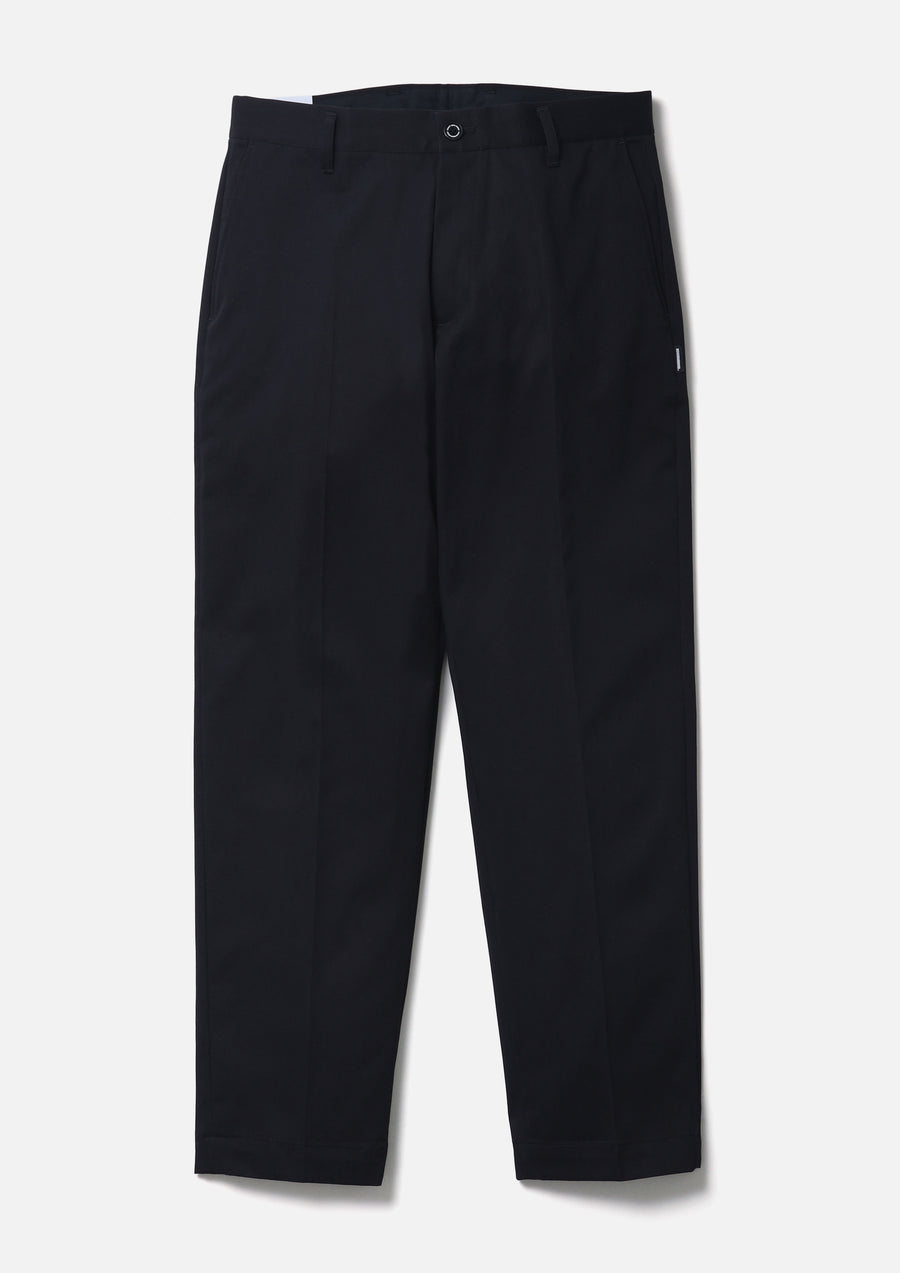上品な光沢と、ソフトで膨らみのあるタッチのチノ素材を使用したアンクルパンツ。オリジナルの4つ穴ボタン、フロントファスナー、シグネチャーテープを採用。ウエスト背面にネームタグ、サイドシームにピスネームを付属。センタープレスを入れたテーパードナローシルエット。
