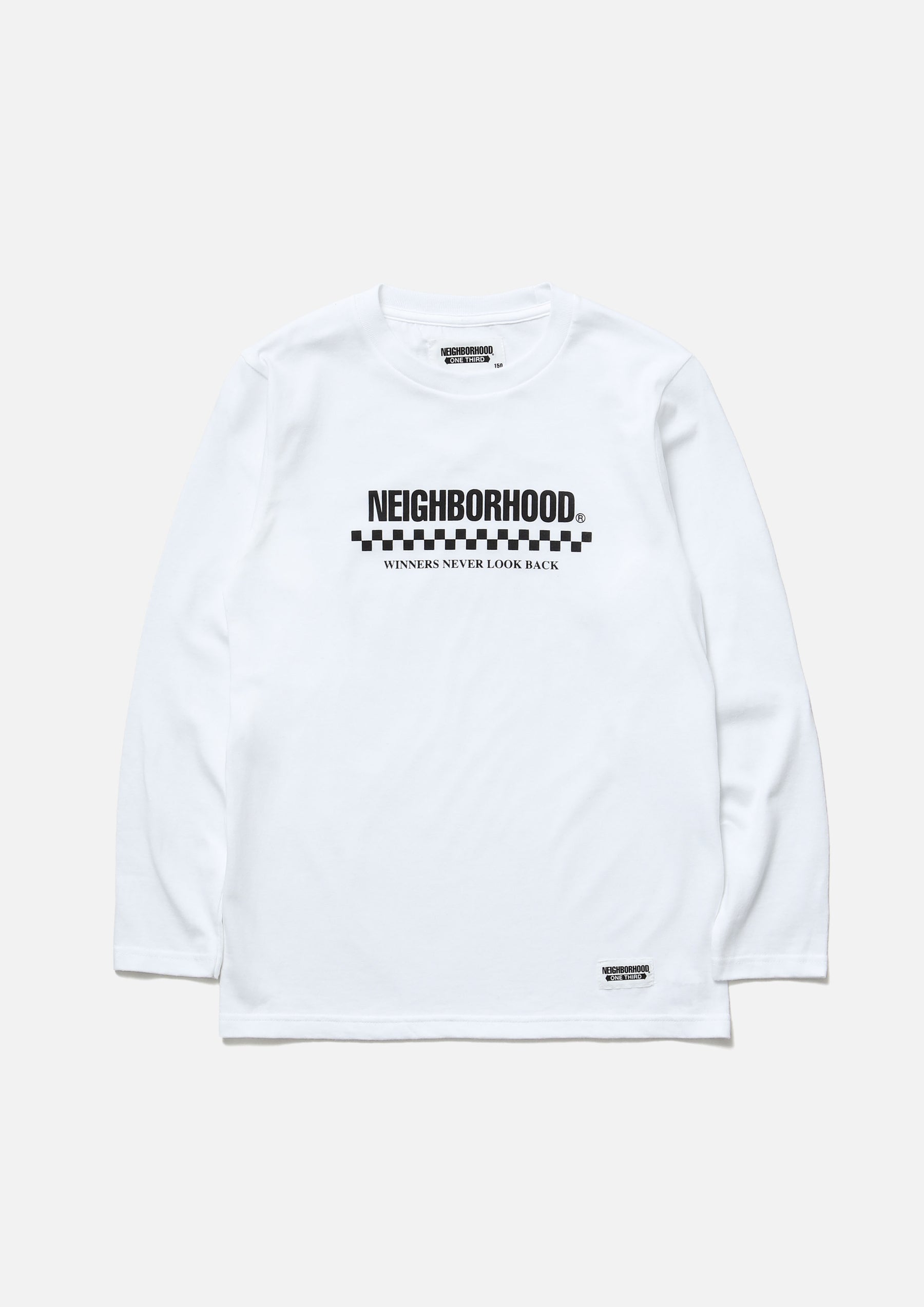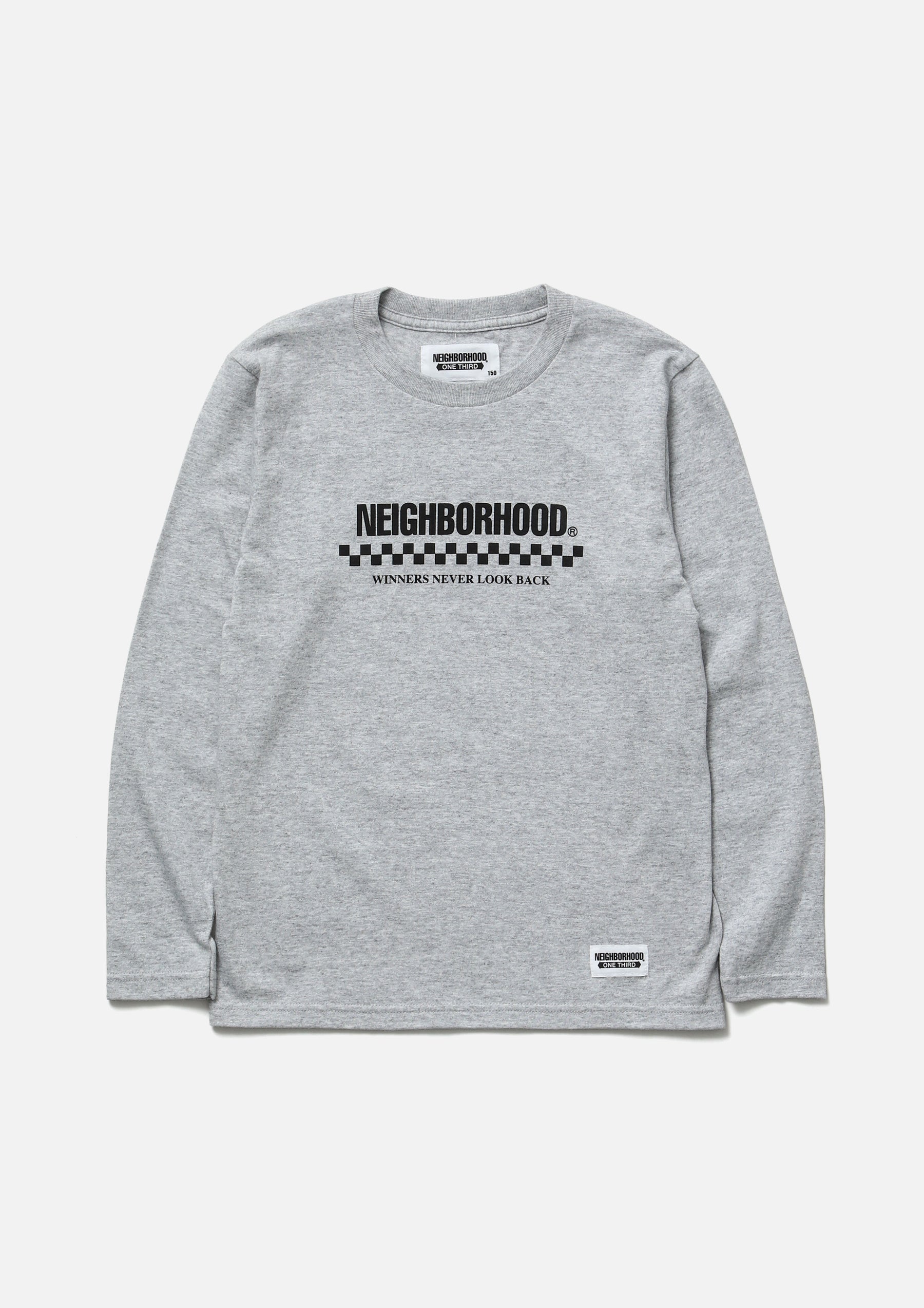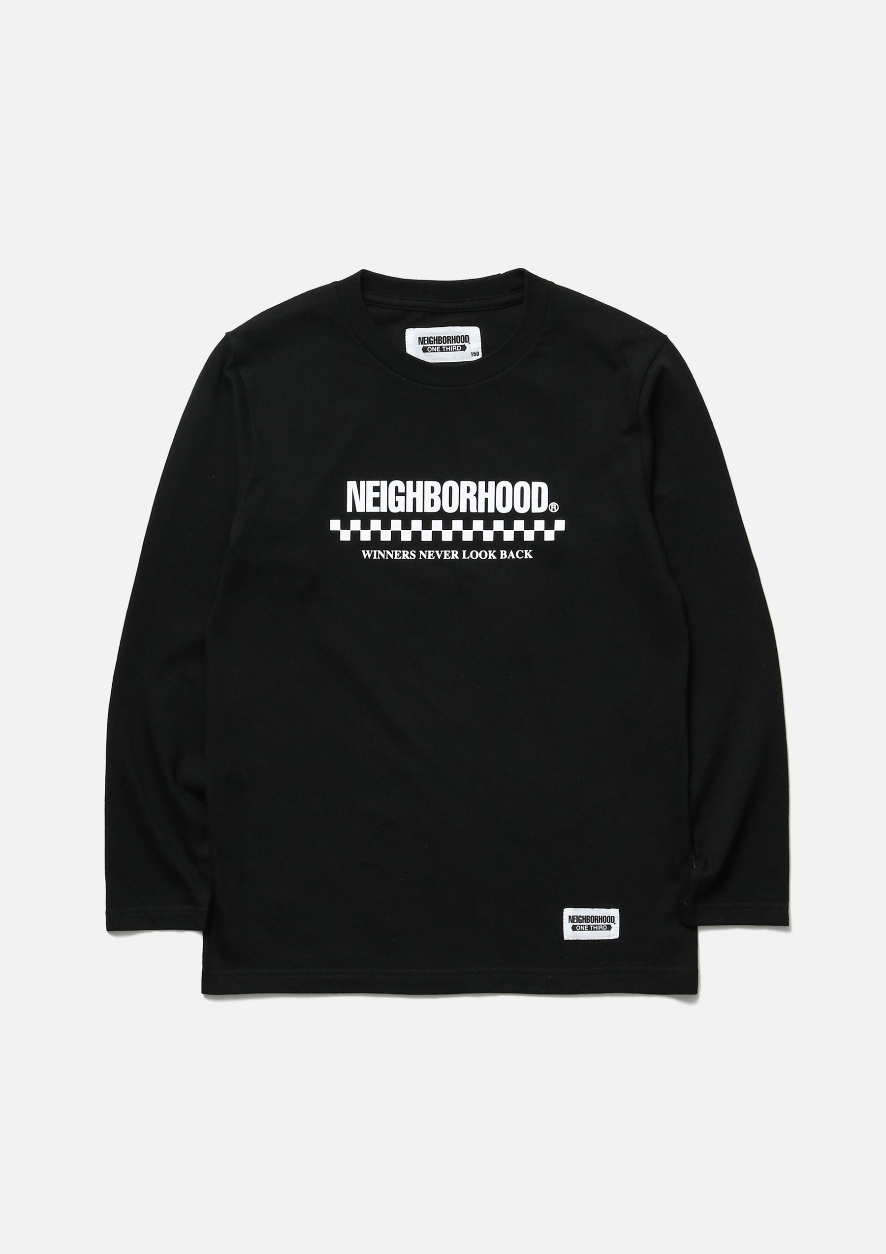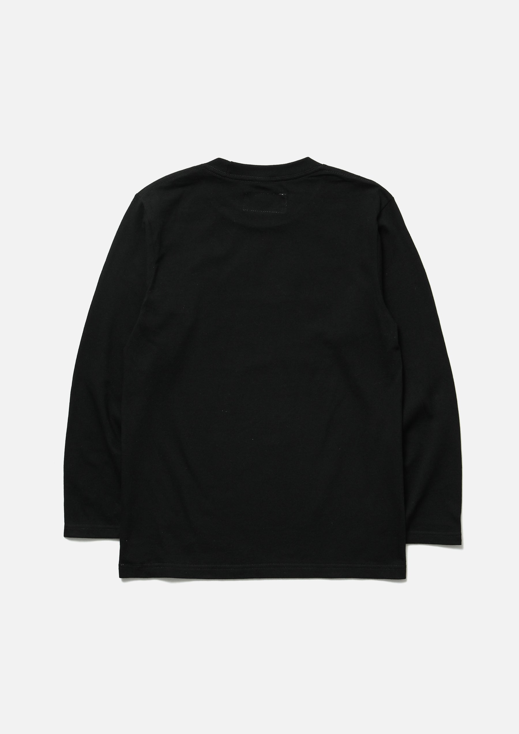 5.6ozのヘビーウェイトボディーを使用したロングスリーブTシャツ。正面にロゴをプリント。左裾にブランドタグを配置。