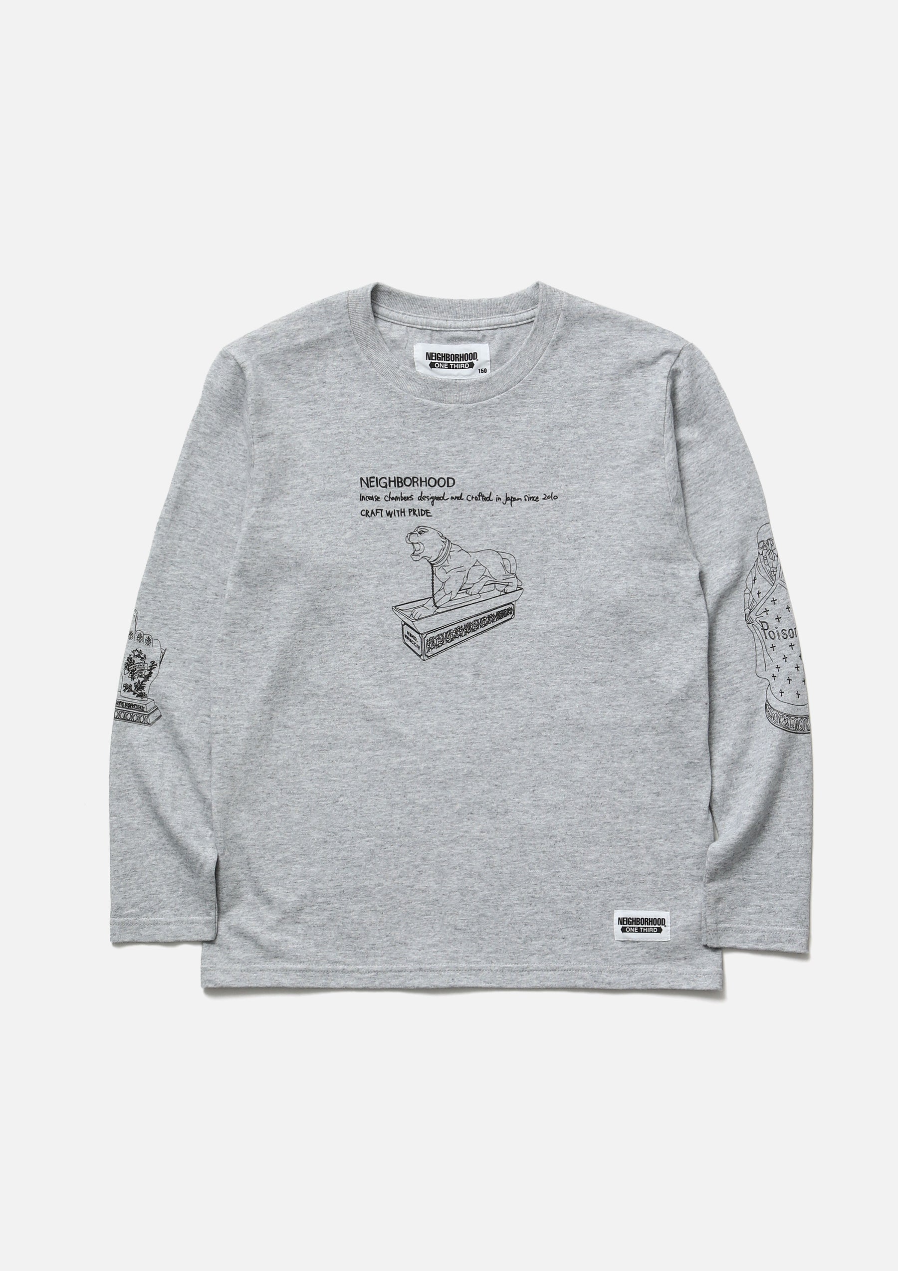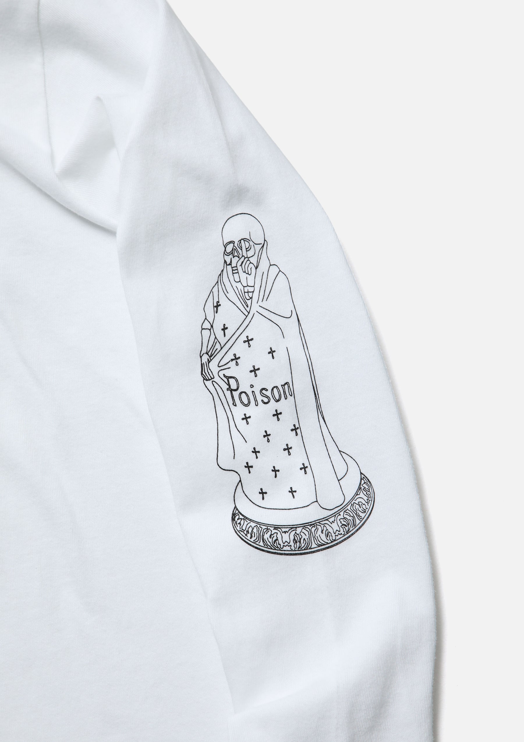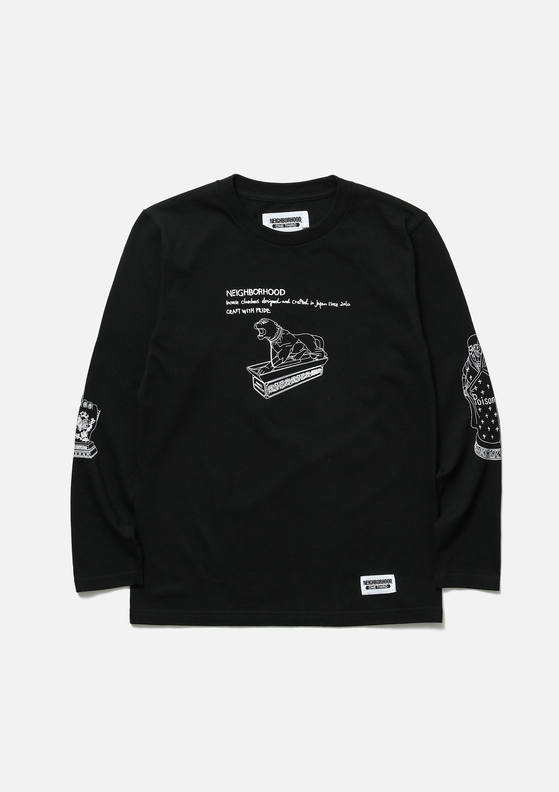 5.6ozのヘビーウェイトボディーを使用したロングスリーブTシャツ。インセンスチャンバーモチーフのグラフィックをプリント。左裾にブランドタグを配置。