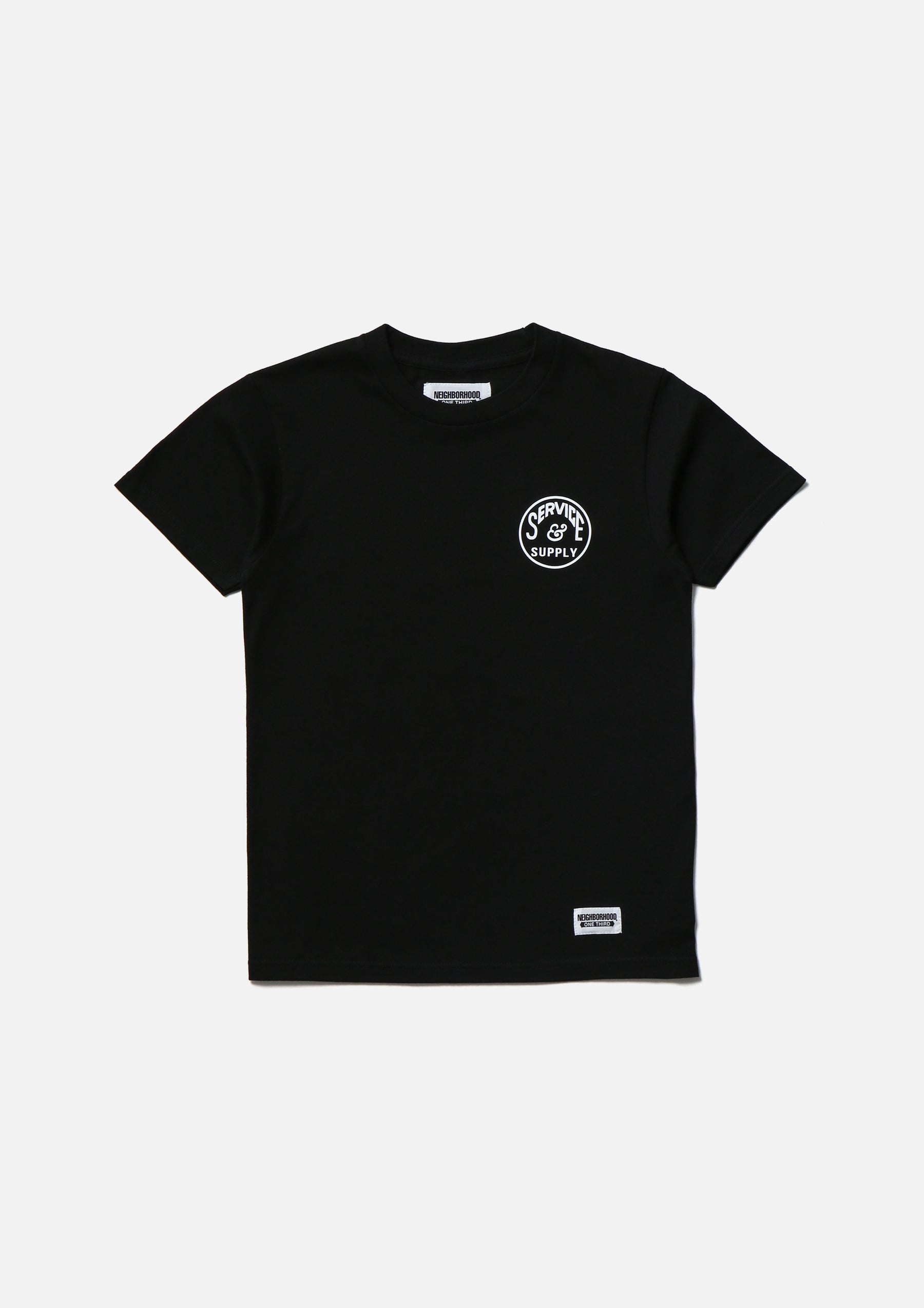 5.6ozのヘビーウェイトボディーを使用したショートスリーブTシャツ。左胸と背面にロゴをプリント。左裾にブランドタグを配置。