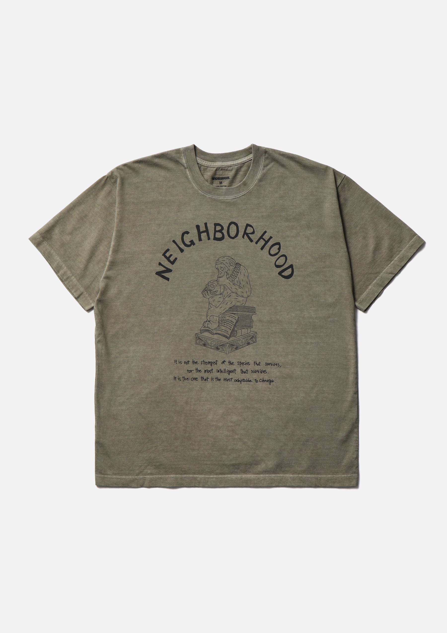 コットン天竺のオリジナルボディをベースに、顔料染め加工を施したショートスリーブTシャツ。正面にインセンスチャンバーモチーフのグラフィックをプリント。ワンウォッシュ仕上げ。