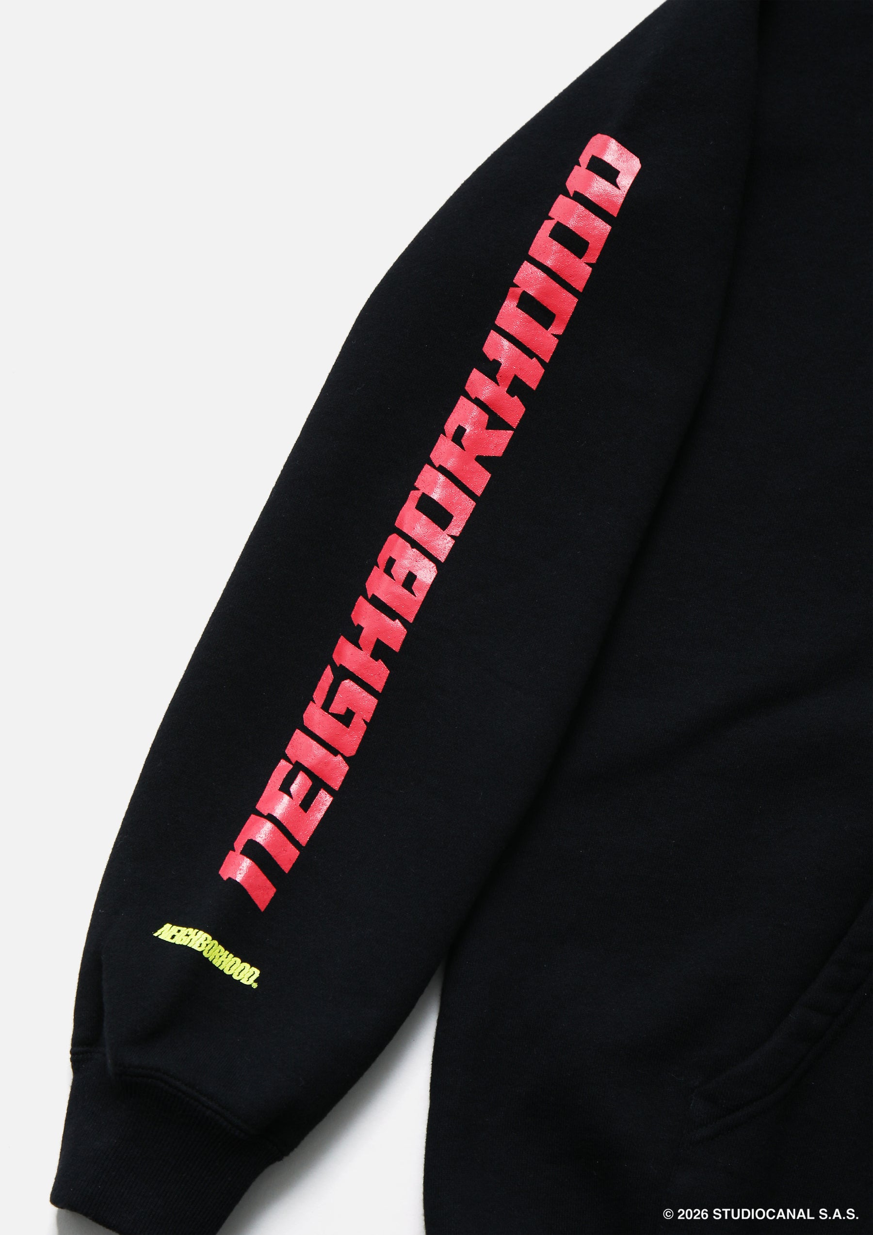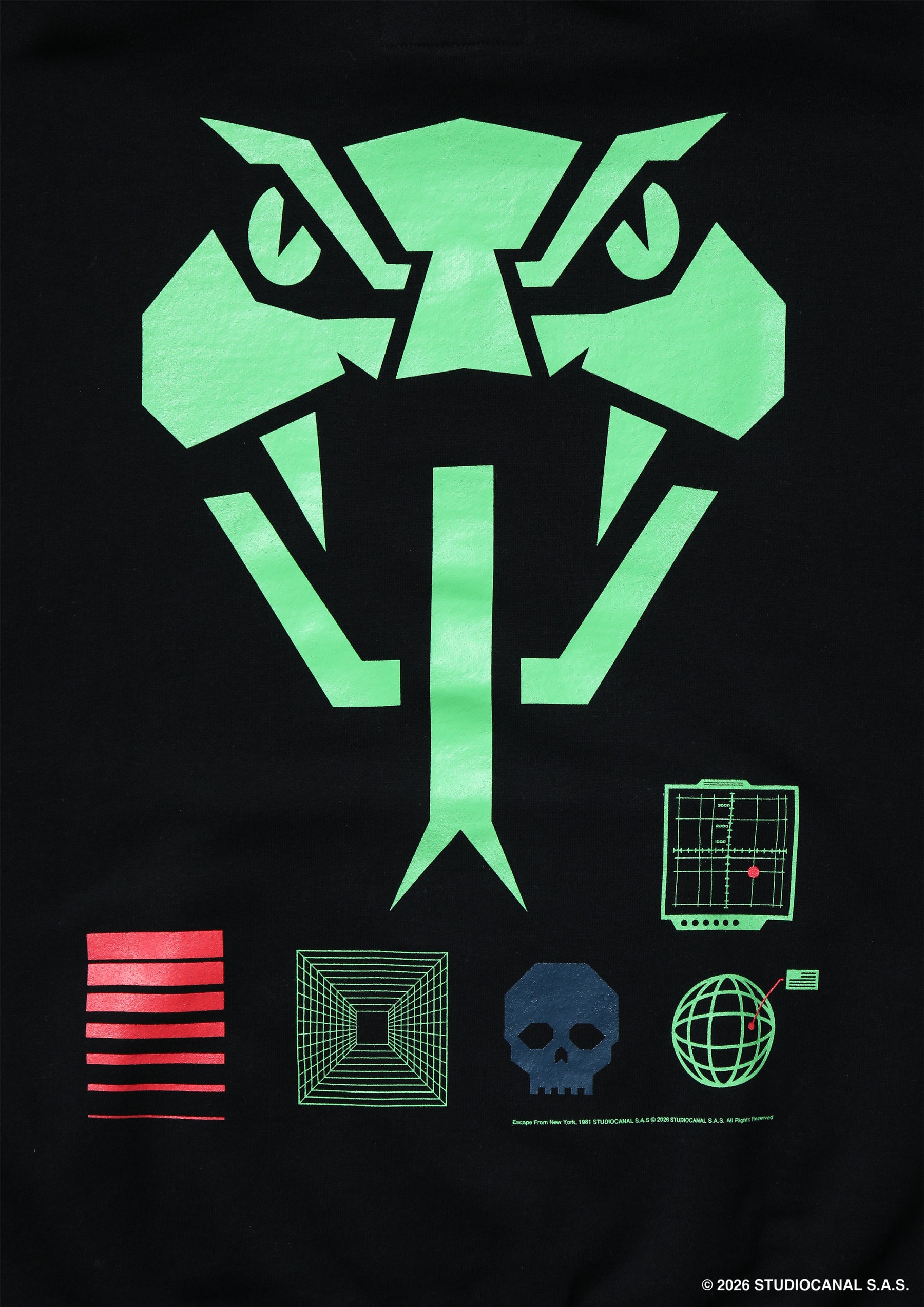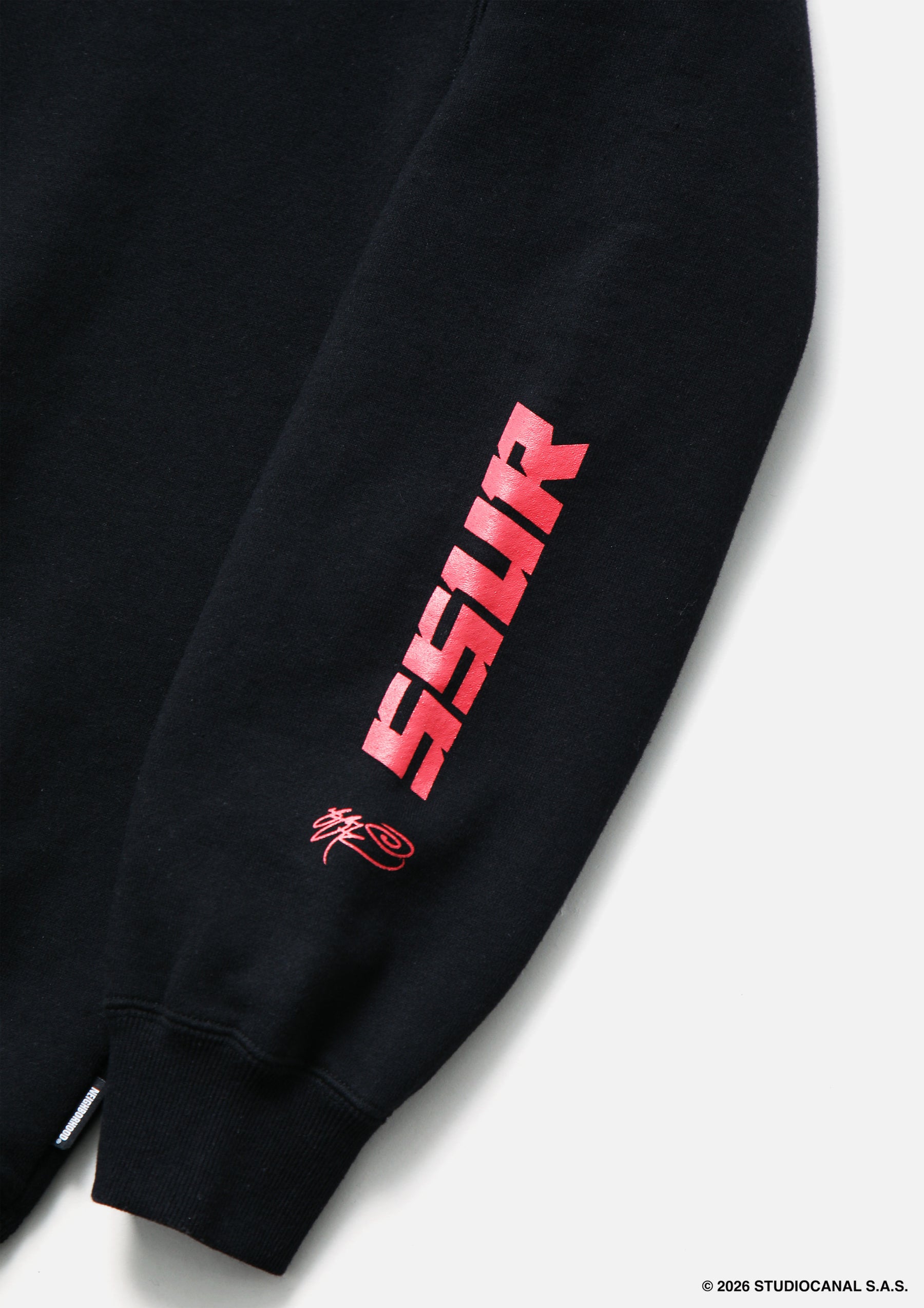 映画『Escape from New York』(1981)のアートワークをベースに、RUSLAN KARABLINによる独自の解釈で再構成したグラフィックを落とし込んだプルオーバーフーディ。中肉厚のコットン裏毛素材を使用。マフポケットを配置。両ブランドのロゴをプリント。左裾にブランドタグ、脇接ぎにピスネームを付属。SSUR©とのコラボレーション。