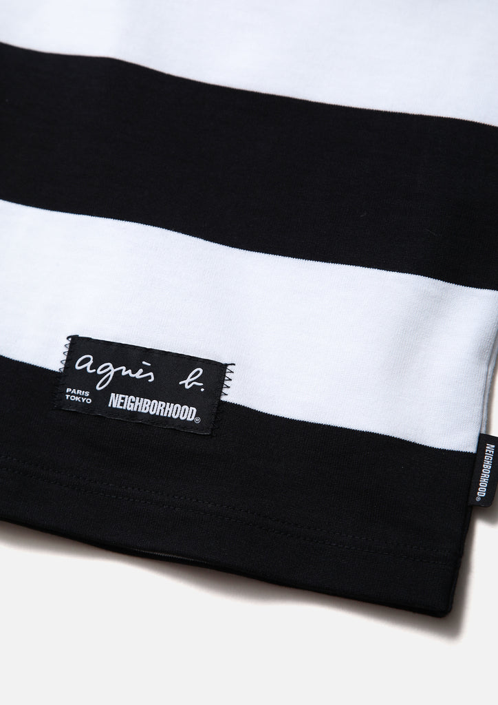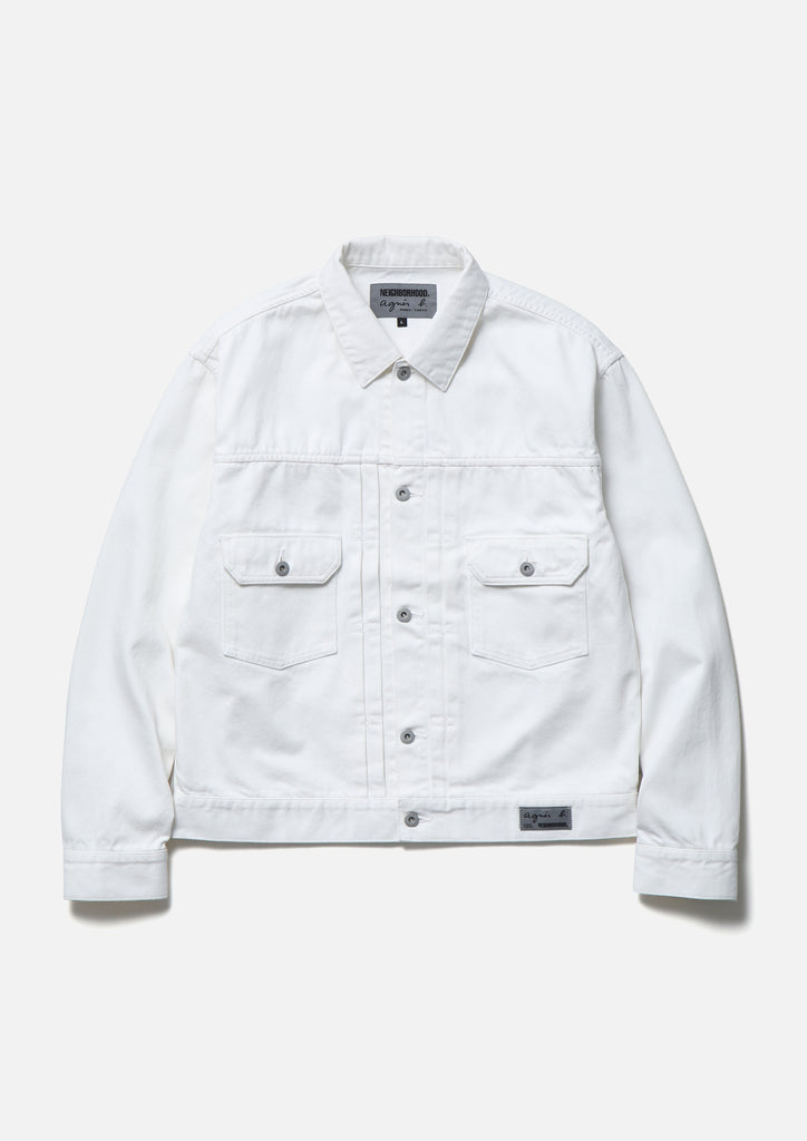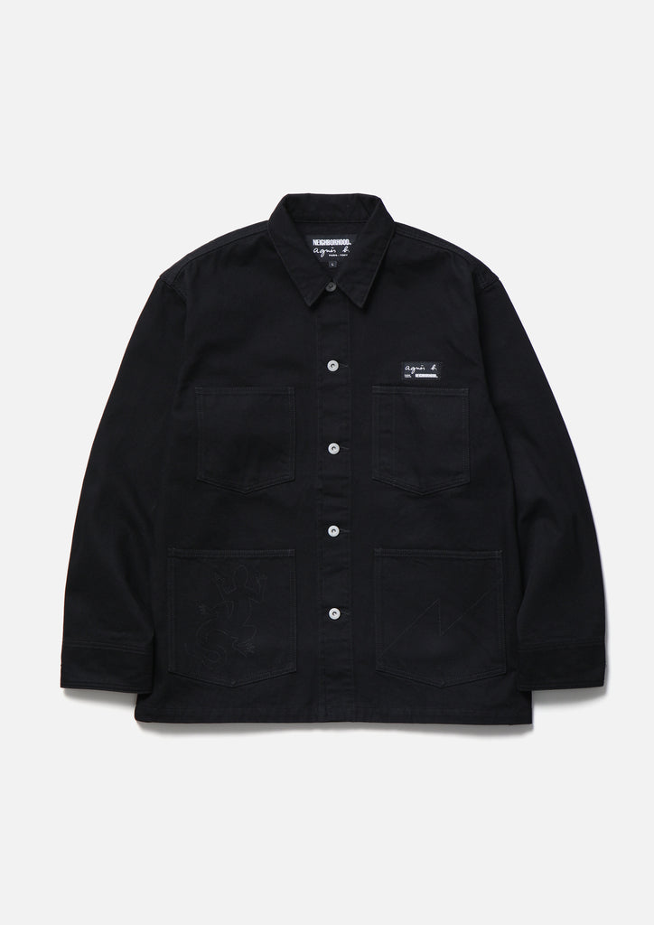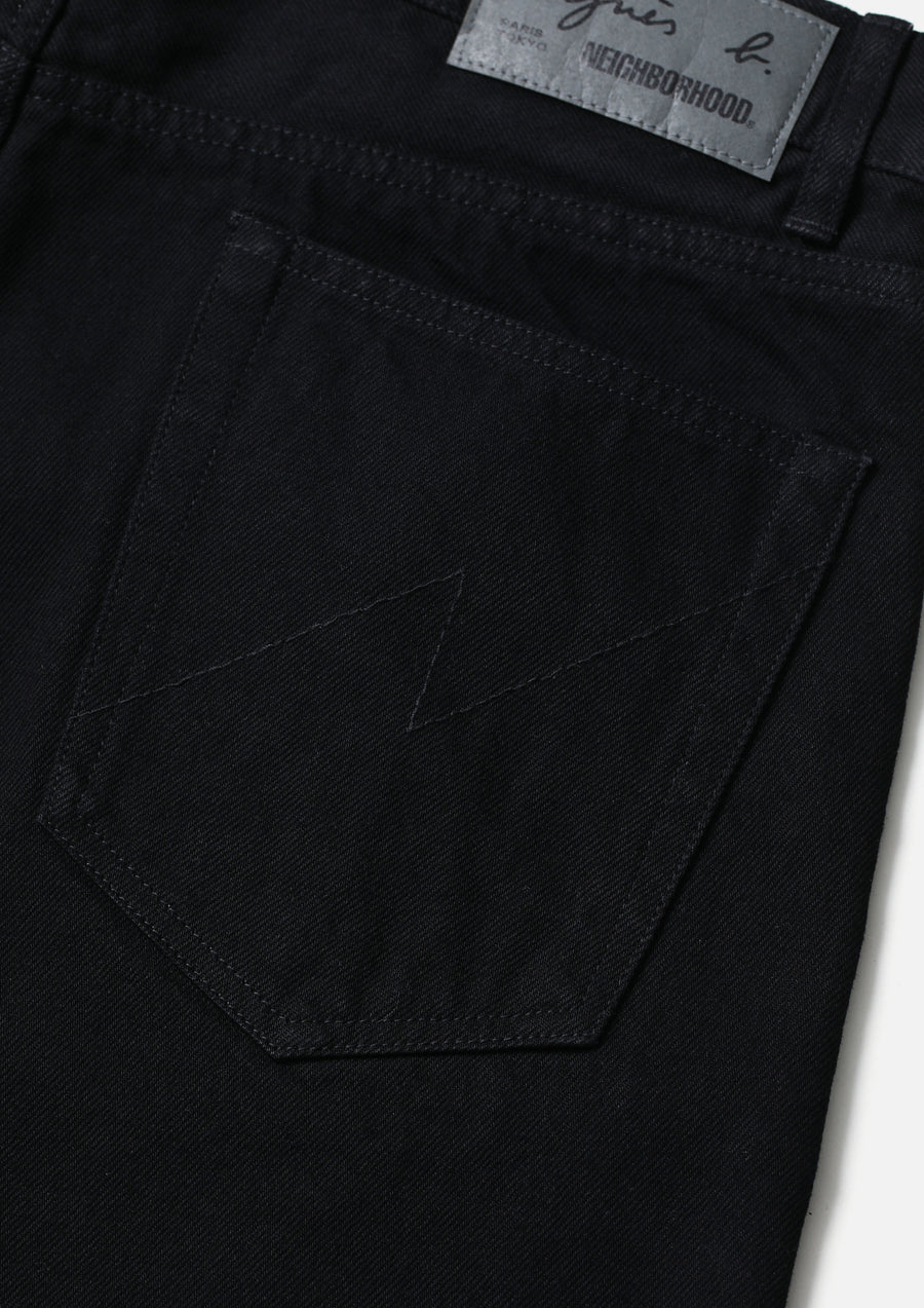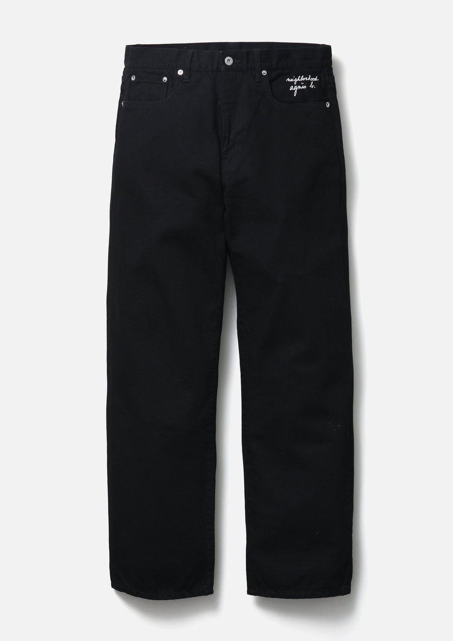 丈夫なコットン素材でタフに仕上げたストレートシルエットの5ポケットパンツ。ポケット口にAgnès Troublé直筆の両ブランドのロゴを刺繍。バックポケットには、アイコンであるNとレザール(トカゲ)モチーフのデザインステッチを配置。オリジナルのタックボタン、紙パッチを採用。agnès b.とのコラボレーション。