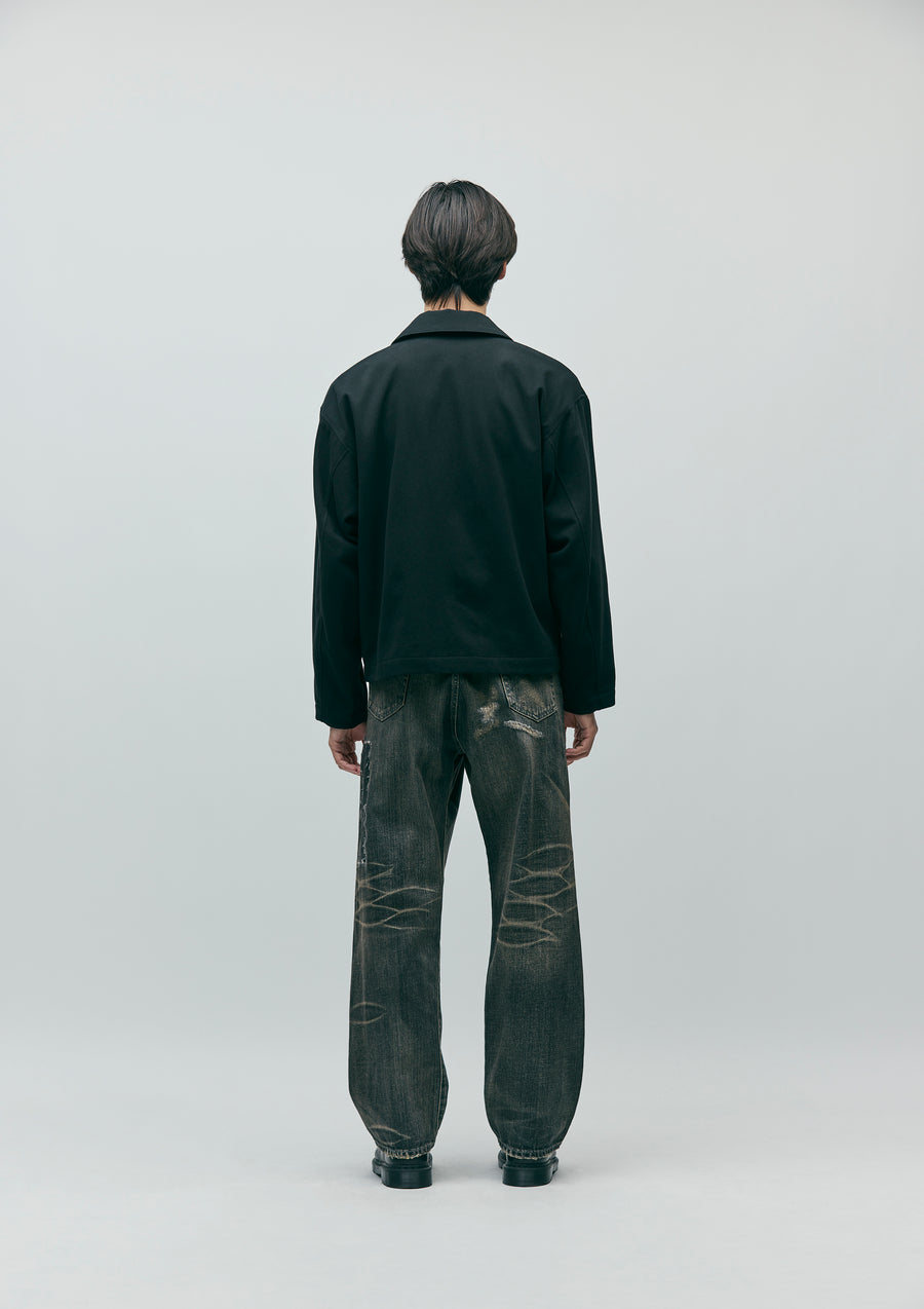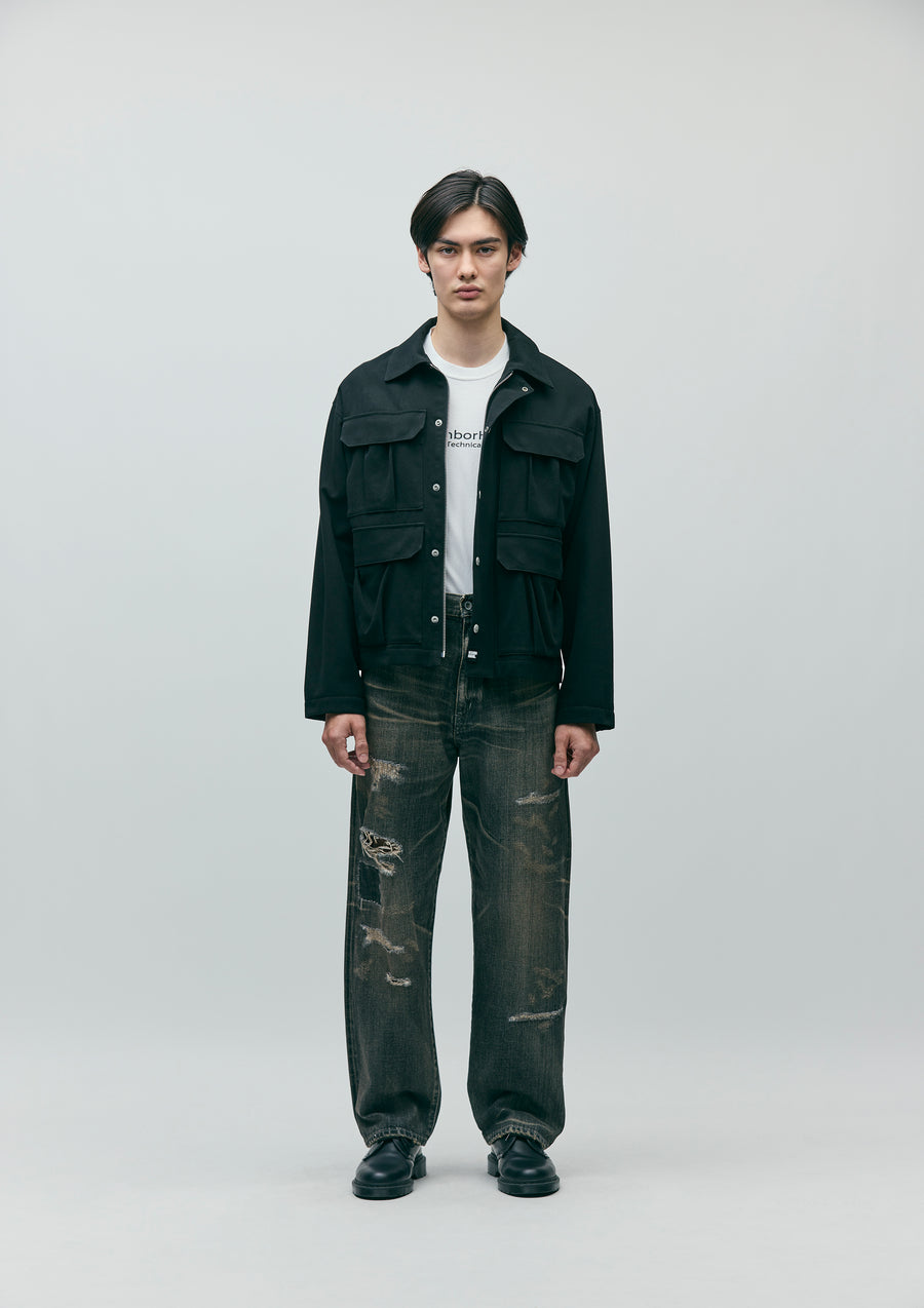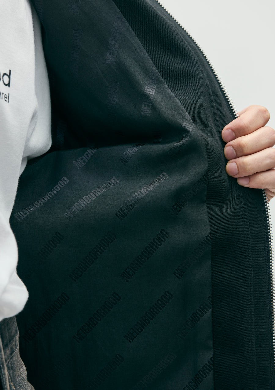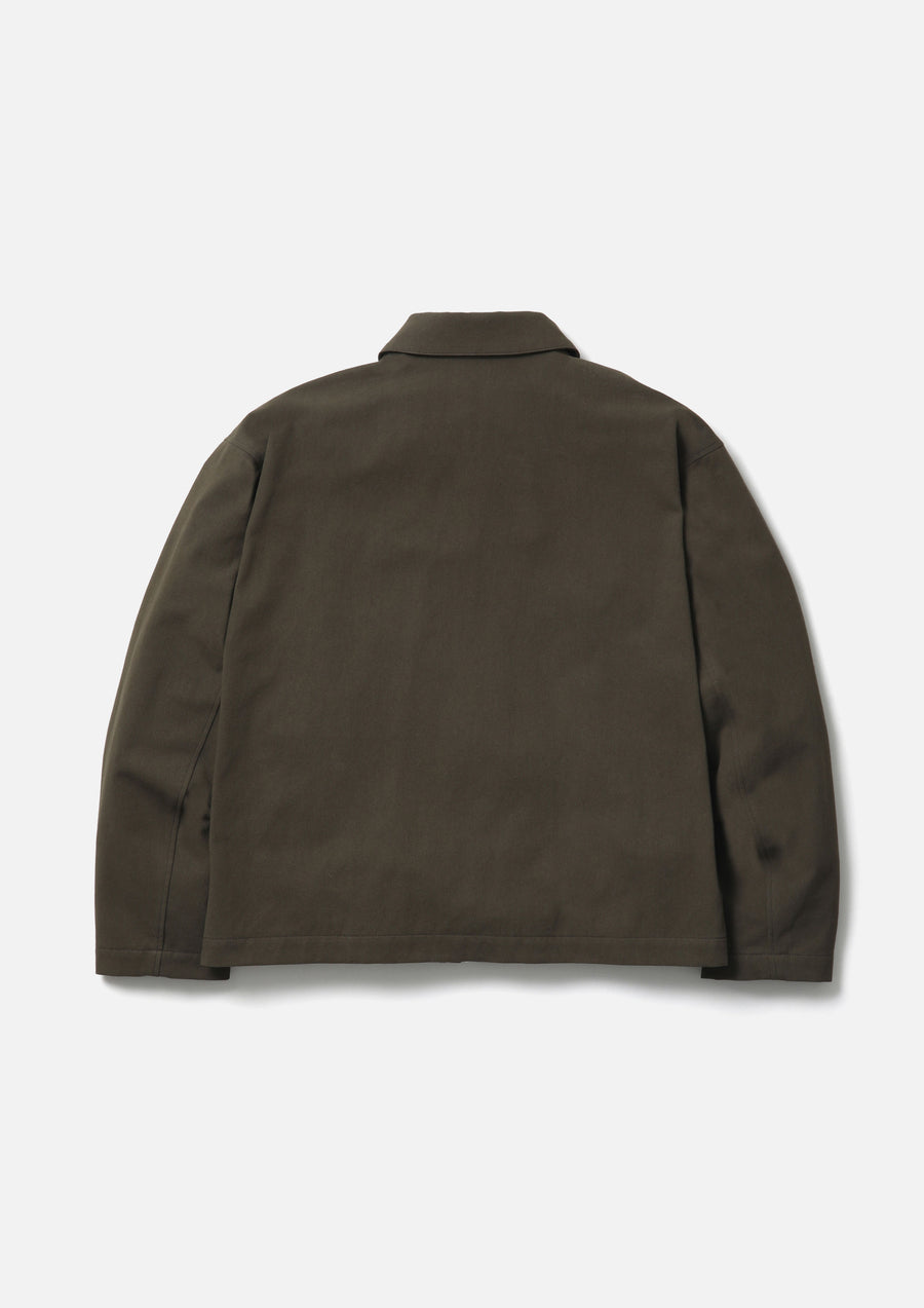 強撚糸によるタフさと、ドライタッチな風合いが特徴のチノ素材を使用したユーティリティジャケット。フロントは、大きめの前立てとファスナーによる開閉。タック入りのユーティリティポケットを4箇所配置。ジャカードロゴ入りの裏地を採用。前立てにネームタグ、サイドシームにピスネームを付属。