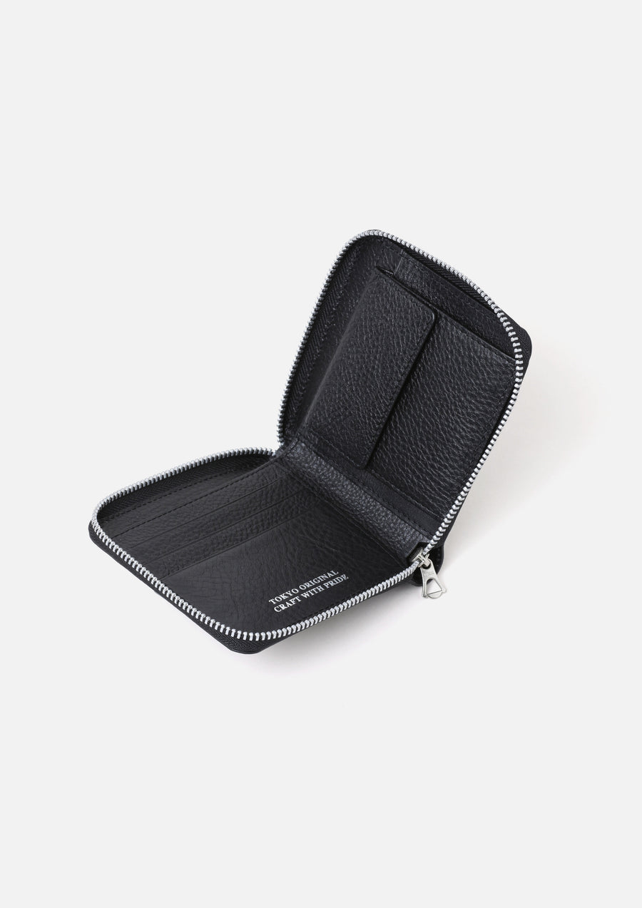 染料のみで仕上げられた自然な色ムラと天然のシボが特徴的なイタリアンショルダーのジップウォレット。収納は、カード入れ3つ、札入れ2つ、コインポケットを配備。オリジナルのステンレスプレートを施し、内側にはロゴを箔押しプリント。