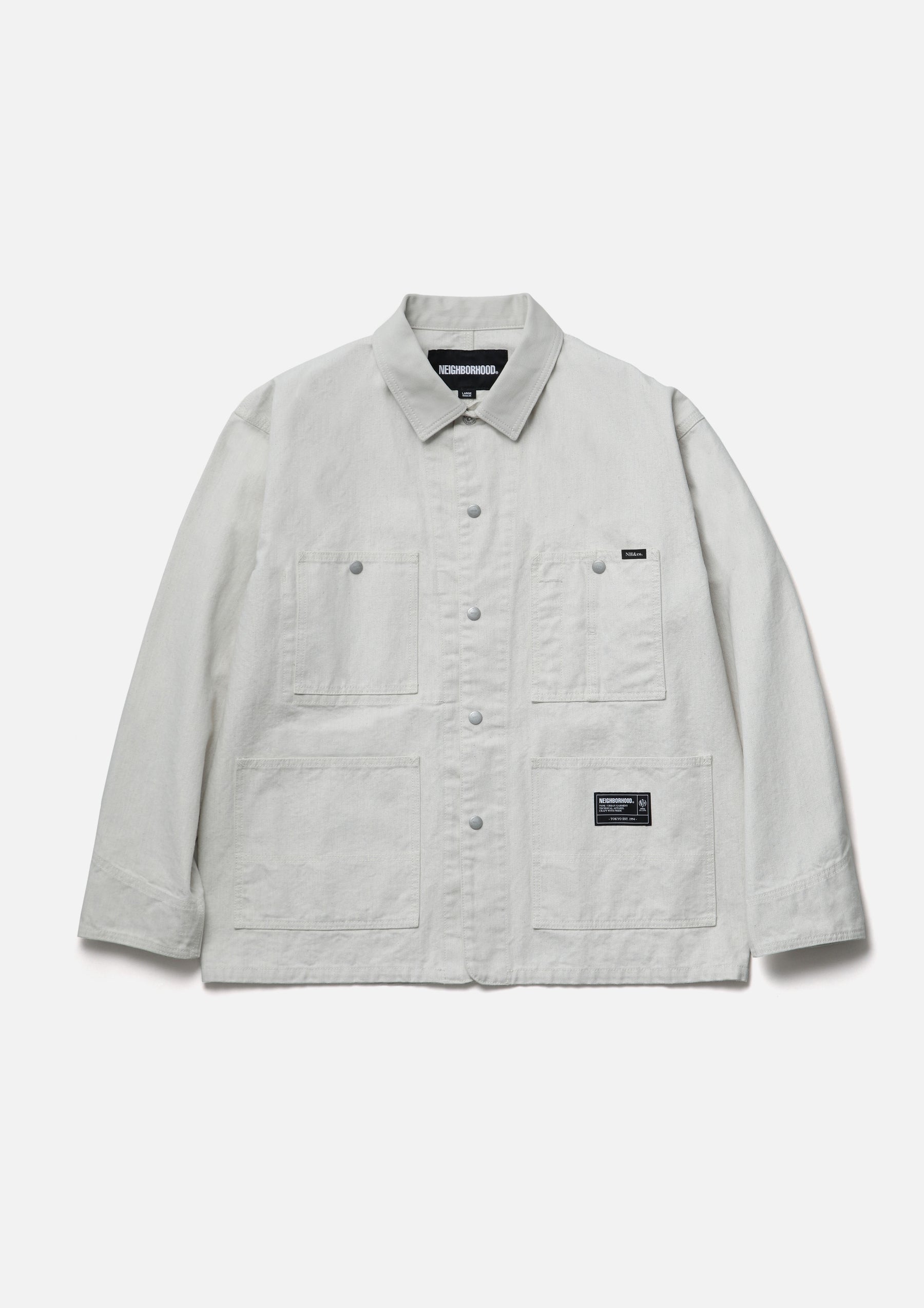 オックス生地の本体にコットンピケの襟を組み合わせたカバーオールジャケット。胸元にはペン差しホールとウォッチポケット、トリプルステッチの巻縫い仕様など、クラシックなディティールを踏襲。オリジナルのスナップボタンを採用し、トップボタンのみメタルボタン仕様。ポケットにブランドタグ、脇接ぎにピスネームを付属。ワンウォッシュ仕上げ。