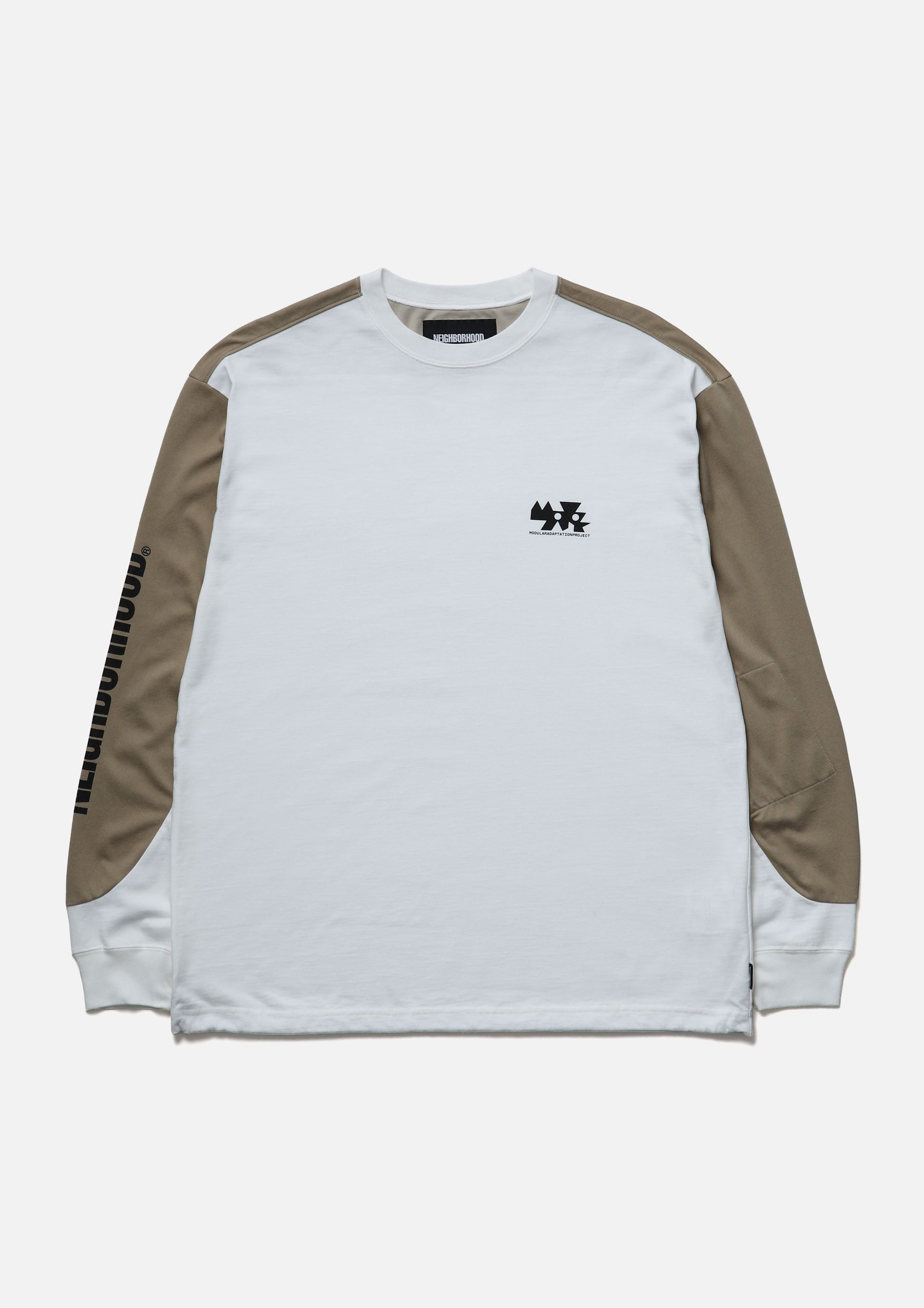 CORDURA®の天竺素材を使用したMAP クルーネックカットソー。左袖に切り替えデザインを利用したジップポケットを配置。裾に調節用のゴムドローコードを内蔵。左胸と袖にロゴをプリント。左裾にブランドタグ、脇接ぎにピスネームを付属。