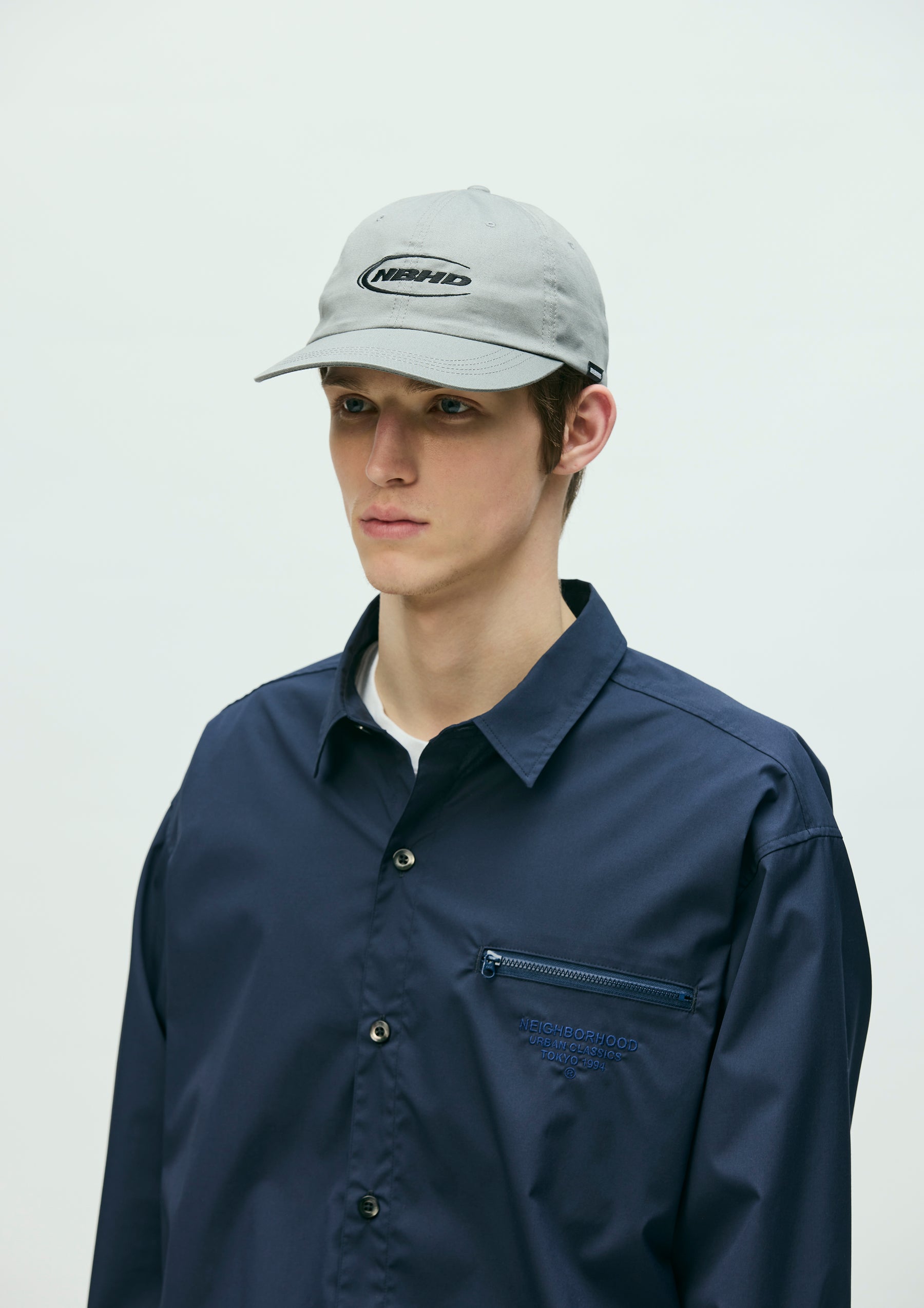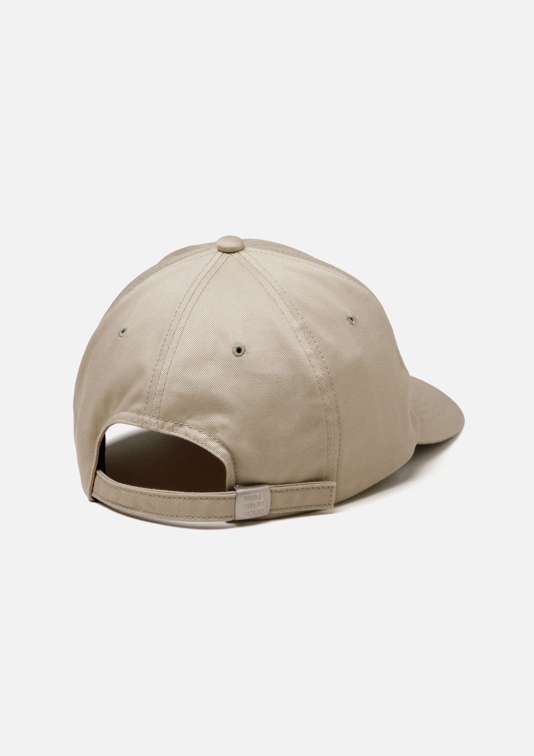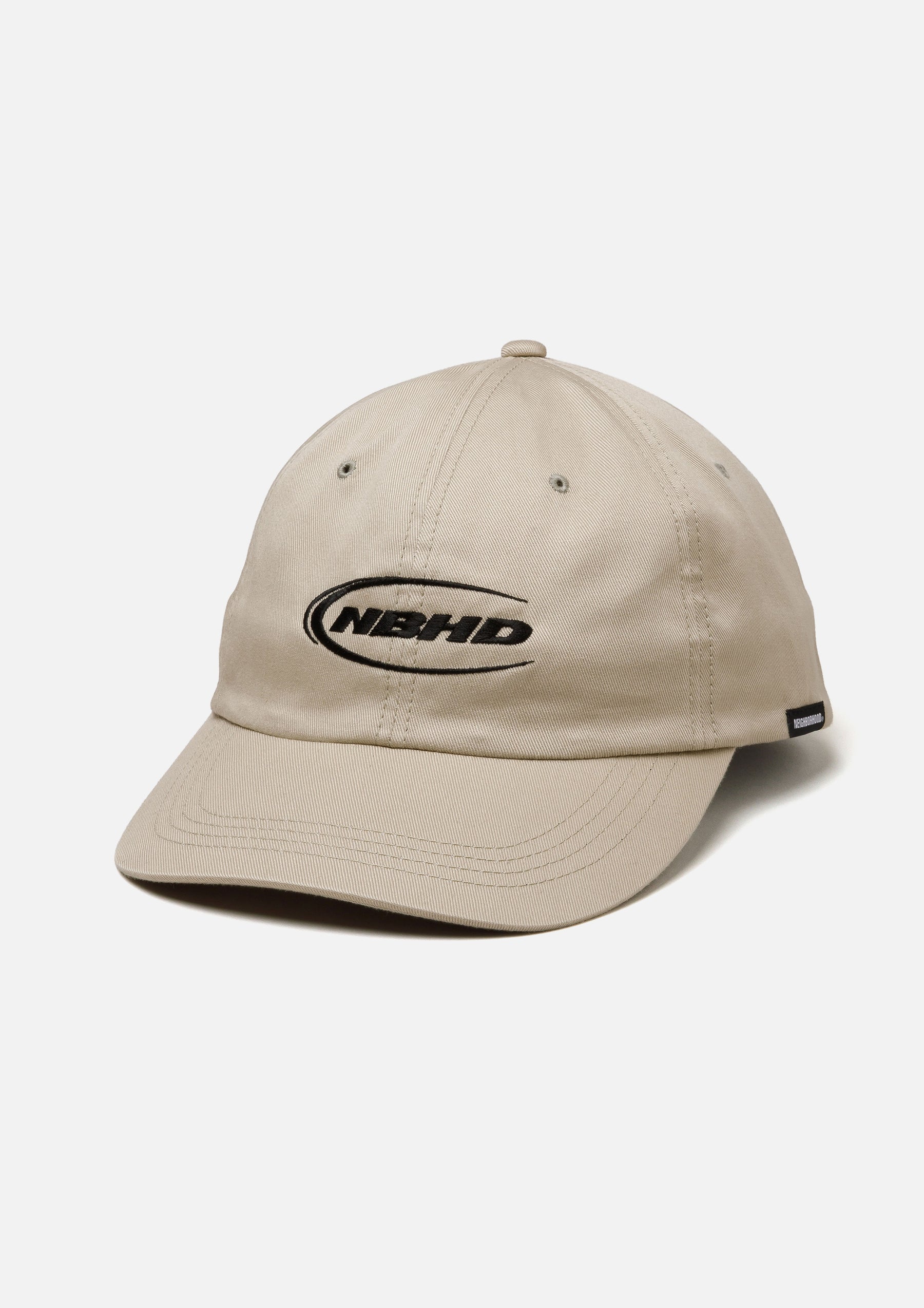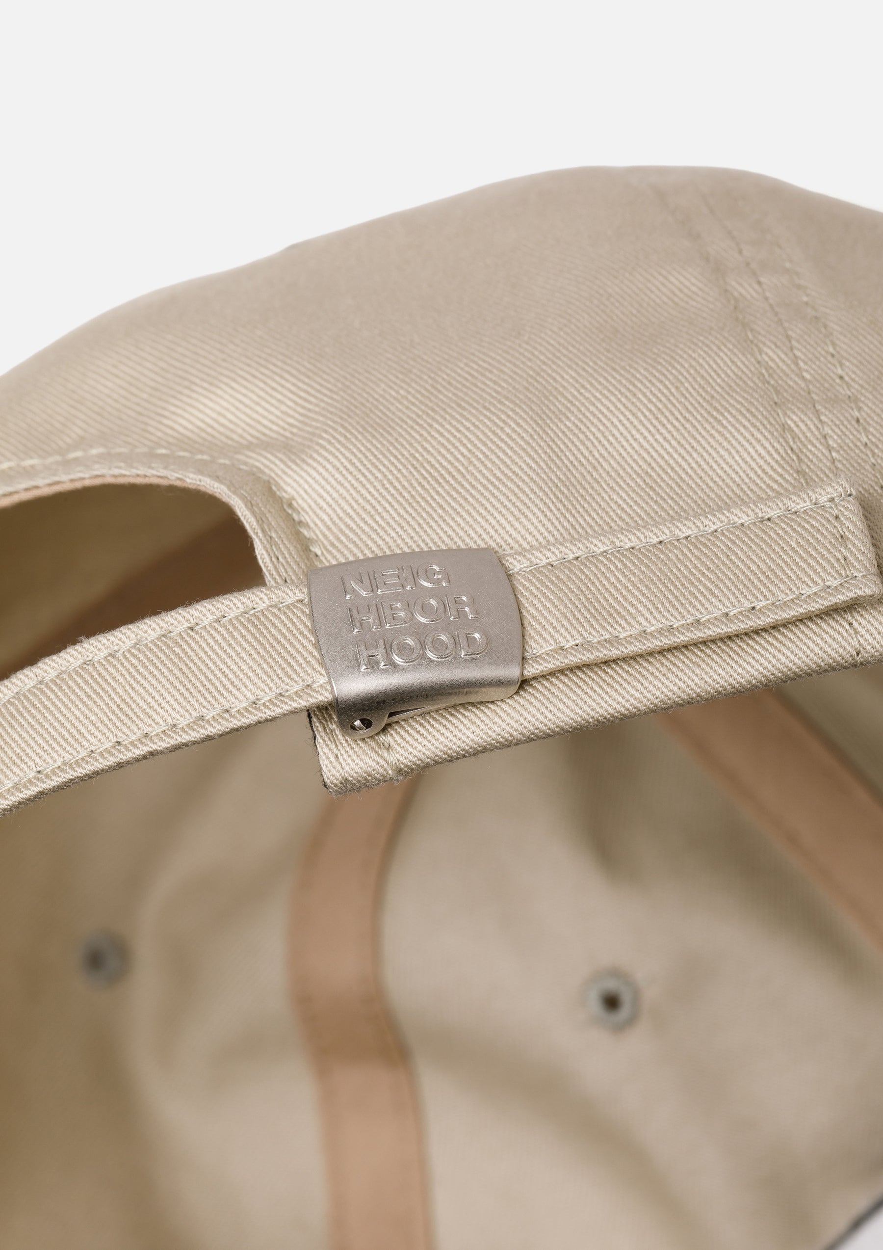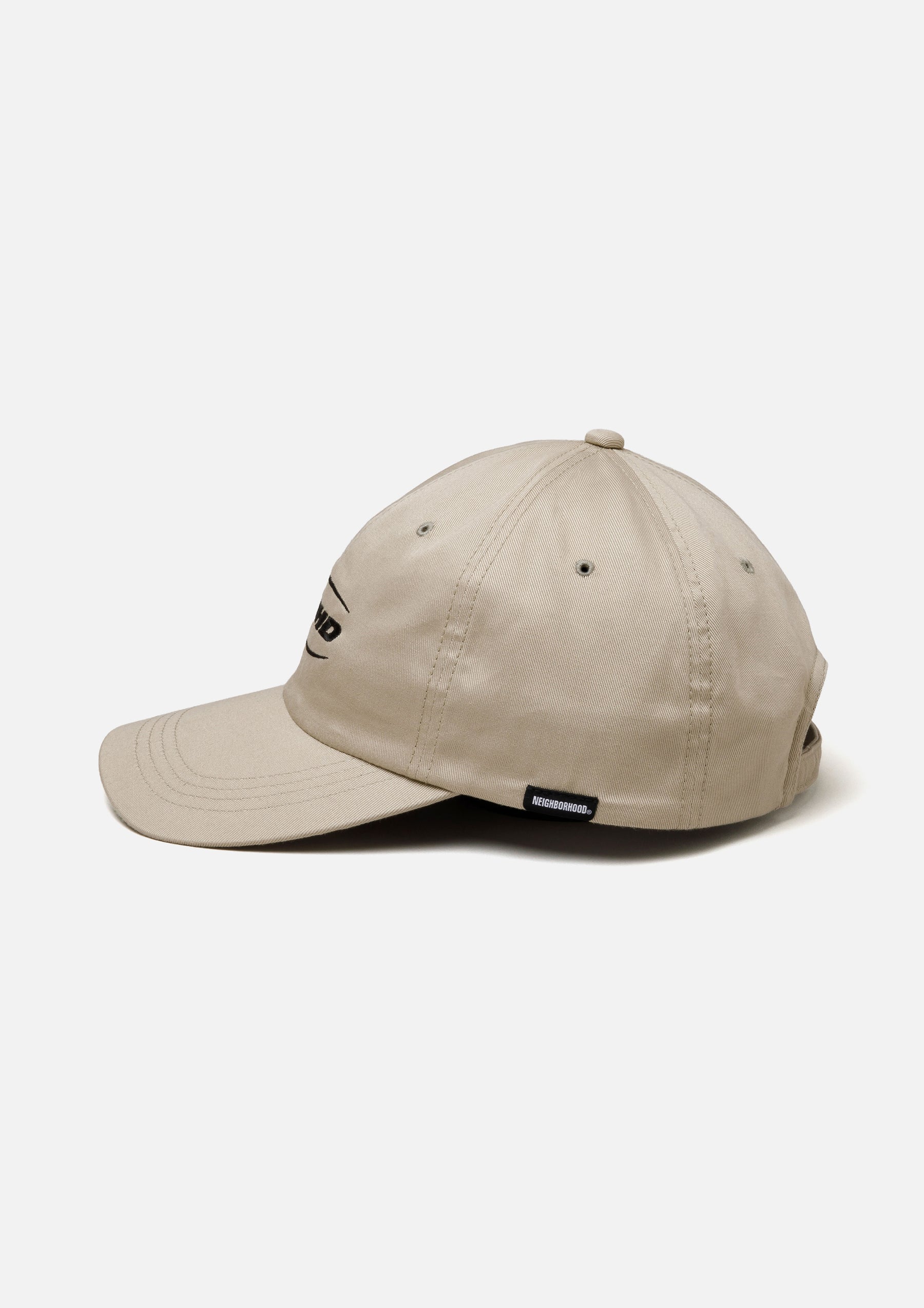 カツラギ素材を使用したダッドキャップ。フロントにロゴを刺繍。後部アジャスターにはオリジナルバックルを採用。左サイドにピスネームを付属。