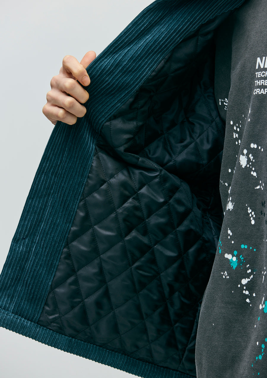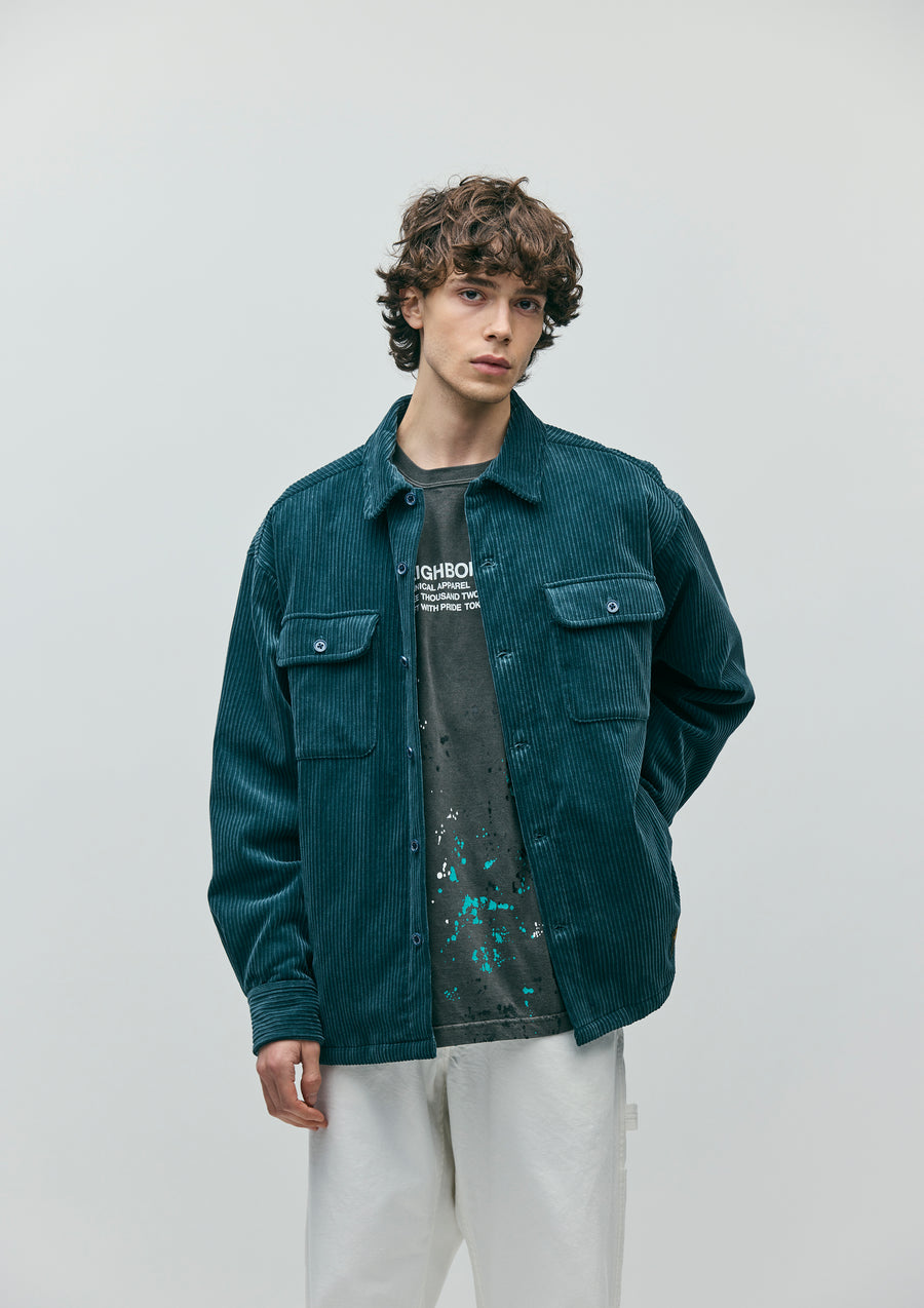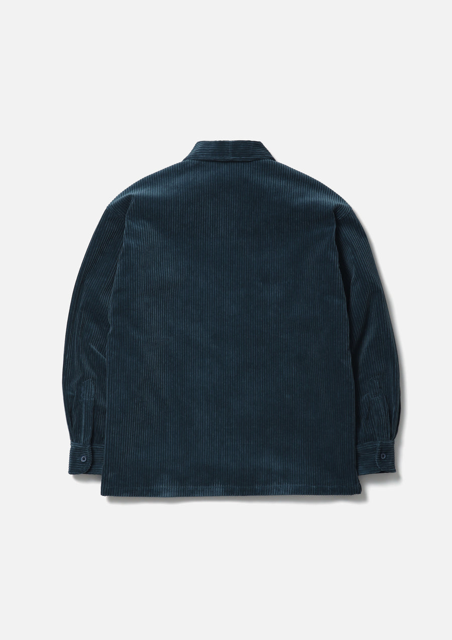 保温性に優れたコールエアータンブラー素材のコーデュロイキルティングシャツ。裏地は中綿入りのダイヤキルティング仕様。両サイドに片玉縁ポケットを配置。オリジナルの四つ穴ボタンを採用し、左裾にネームタグ、サイドシームにピスネームを付属。