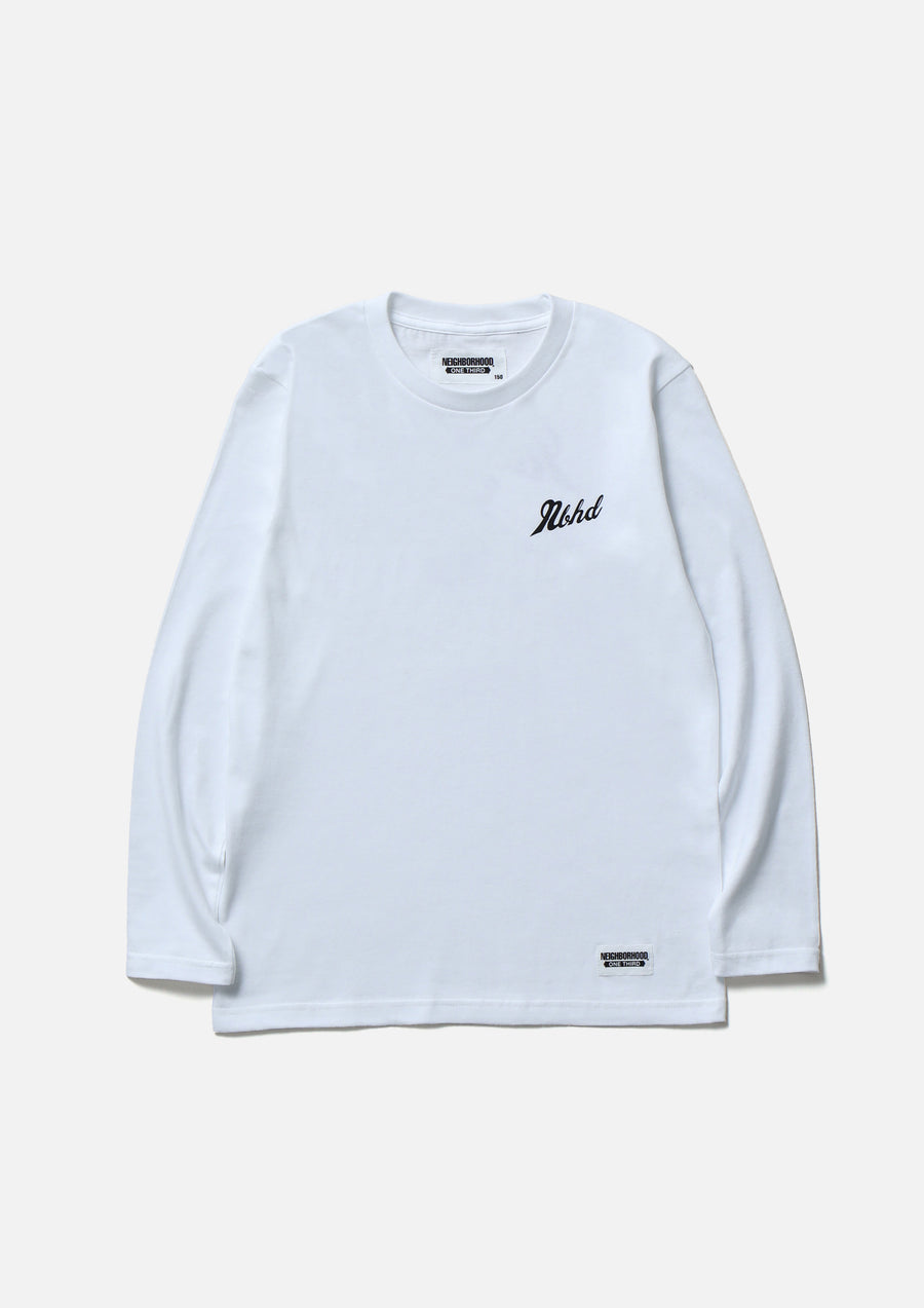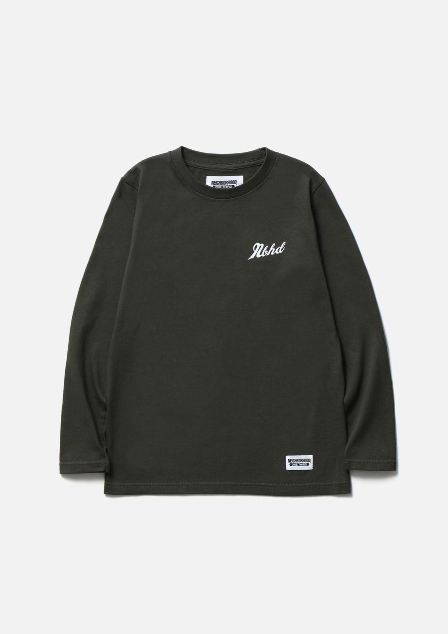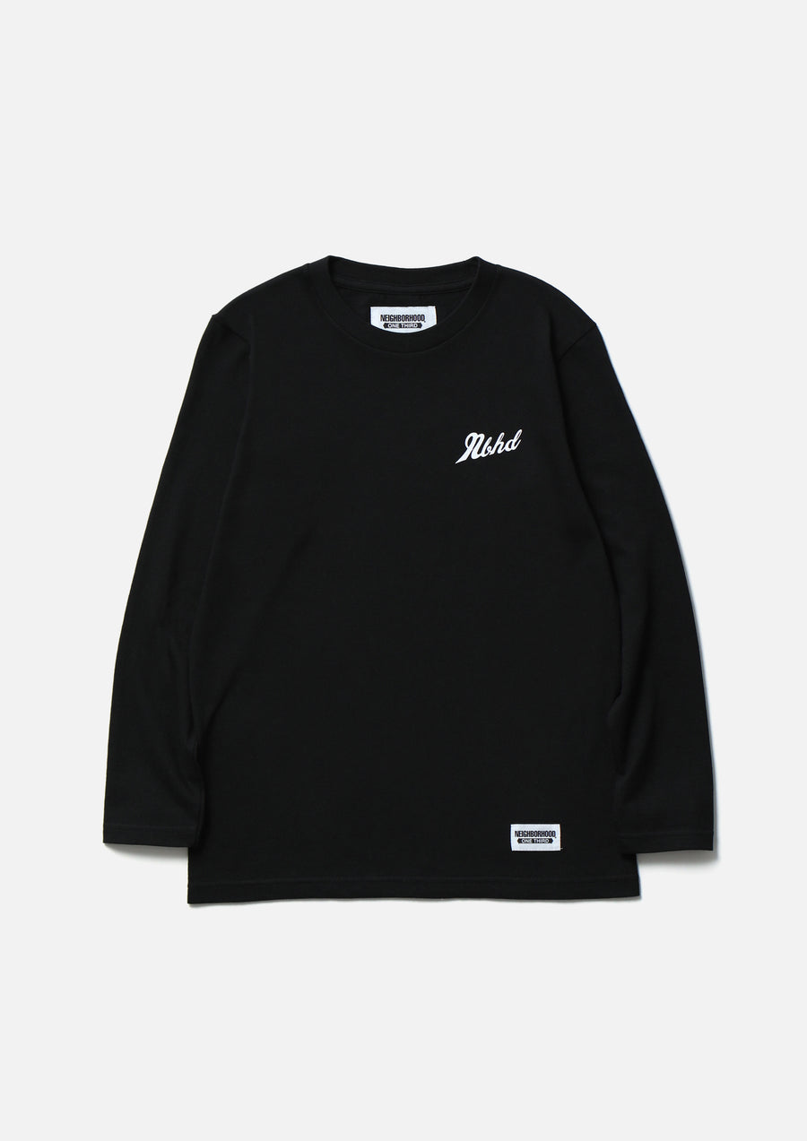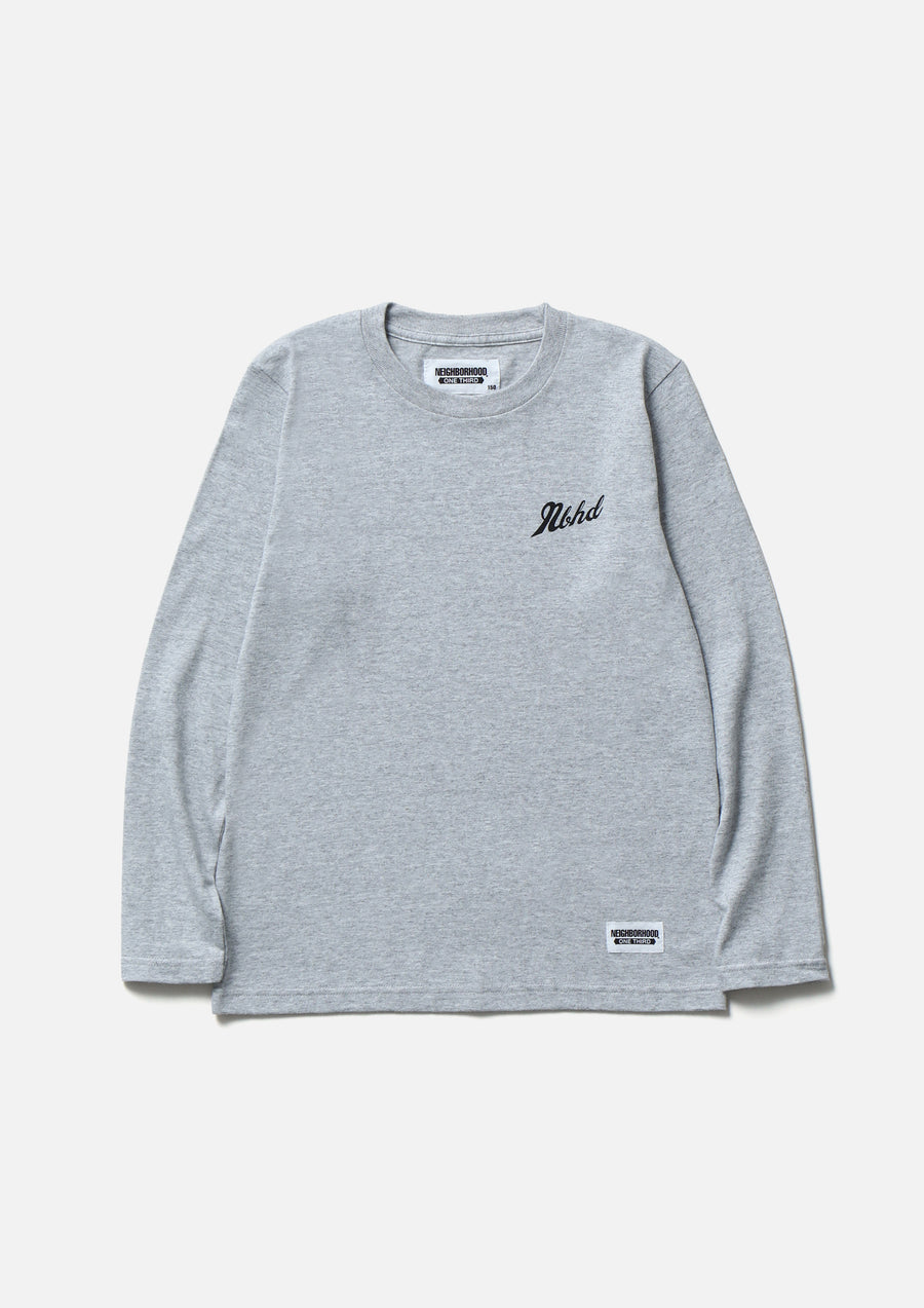 5.6ozのヘビーウェイトボディーを使用したロングスリーブTシャツ。左胸と背面にグラフィックをプリント。左裾にネームタグを配置。