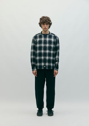 HOMBRE CHECK BAND COLLAR SHIRT LS
