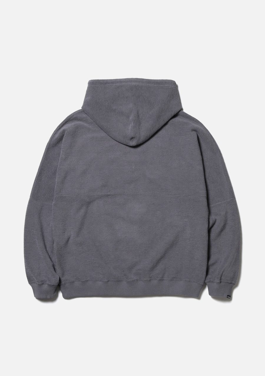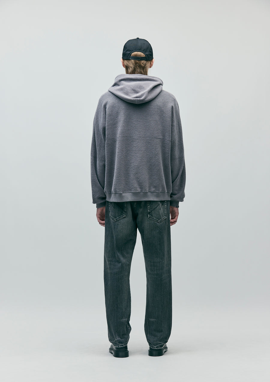 A reversible pullover hoodie utilizing the pile side of tightly knit fleece-backed fabric. Designed with distinctive paneling. Features a logo print on the jersey side and a brand tag on the pile side. Includes a brand tag inserted in the cuff.
