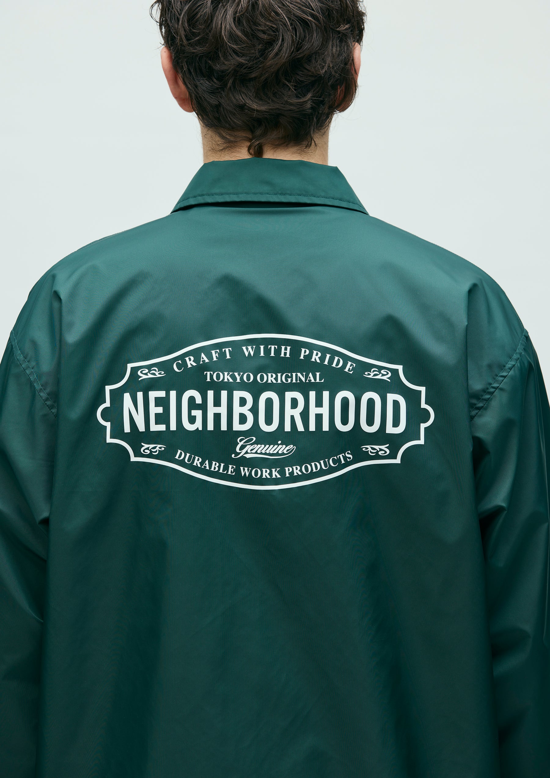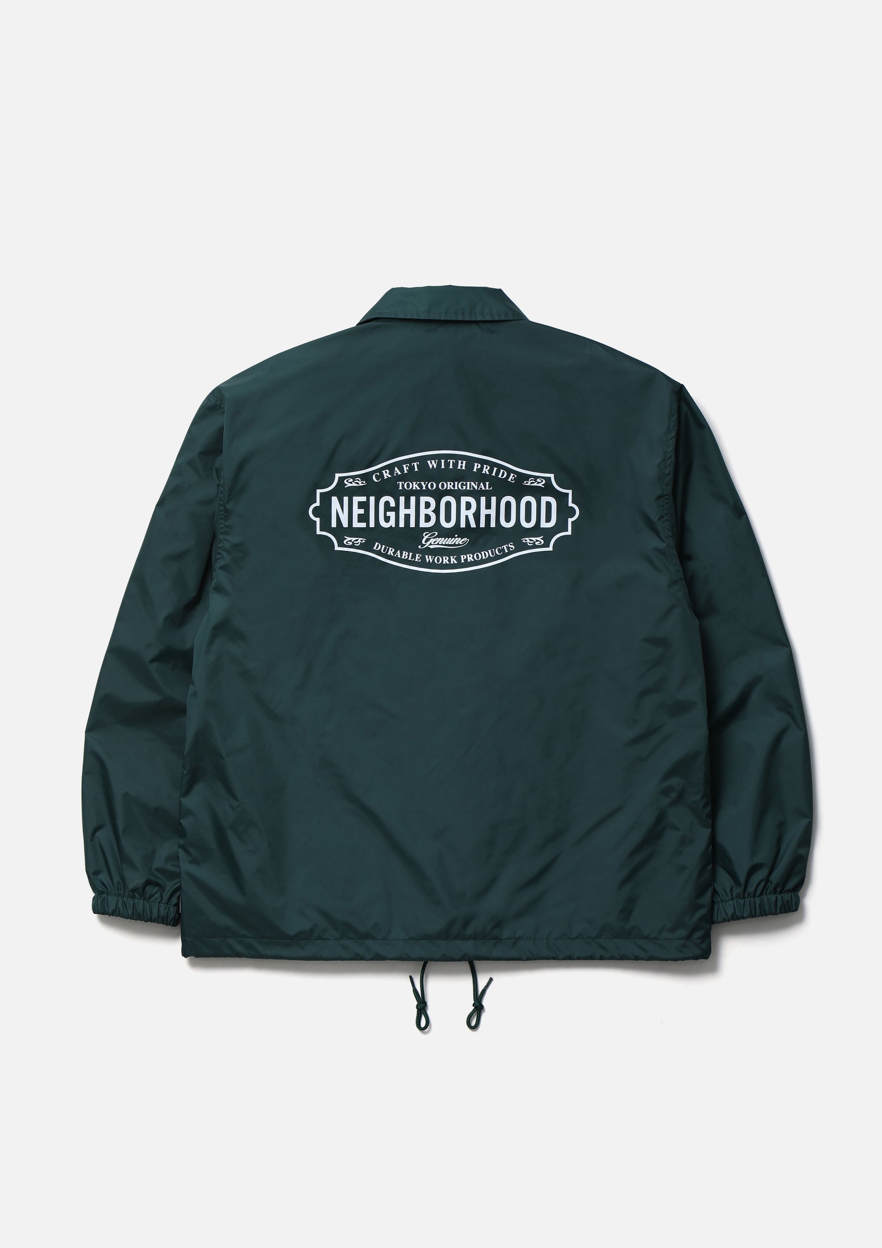 A Windbreaker jacket made from nylon taffeta material that combines lightness with durability. Equipped with an adjustable drawcord at the hem. Logos are printed on the left chest and back. Finished with original snap buttons. A brand tag is placed at the left hem, and a woven side label is attached at the side seam. Features a tricot lining with excellent moisture absorption and quick-drying properties.