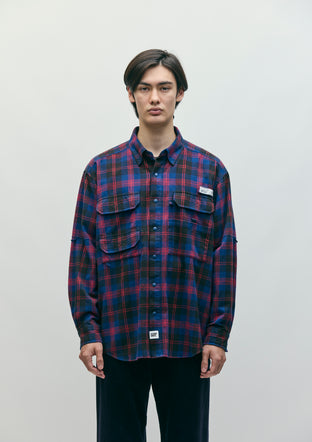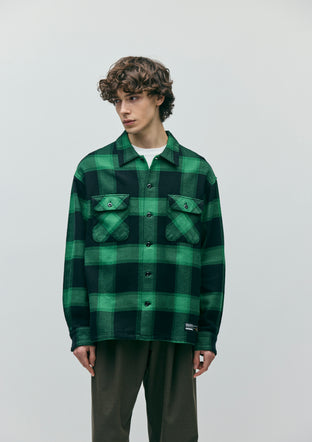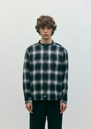 HOMBRE CHECK BAND COLLAR SHIRT LS