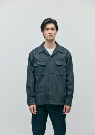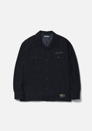 HERRINGBONE OPEN COLLAR SHIRT LS