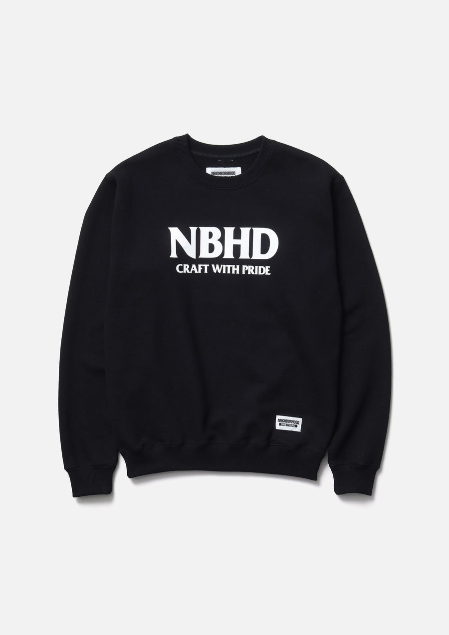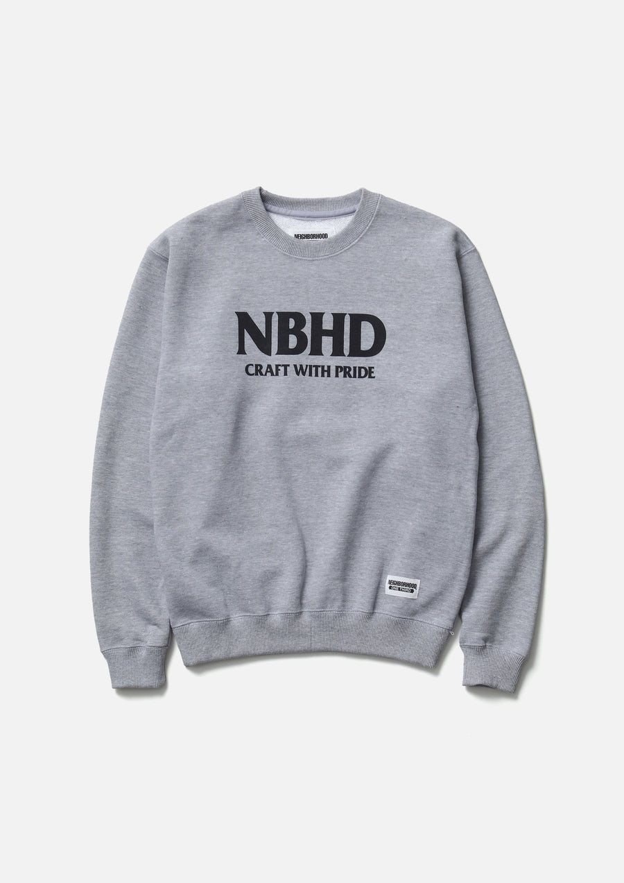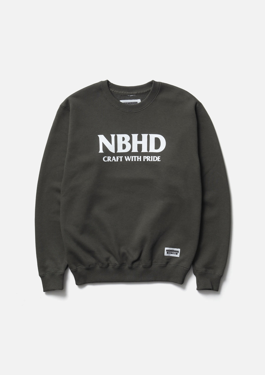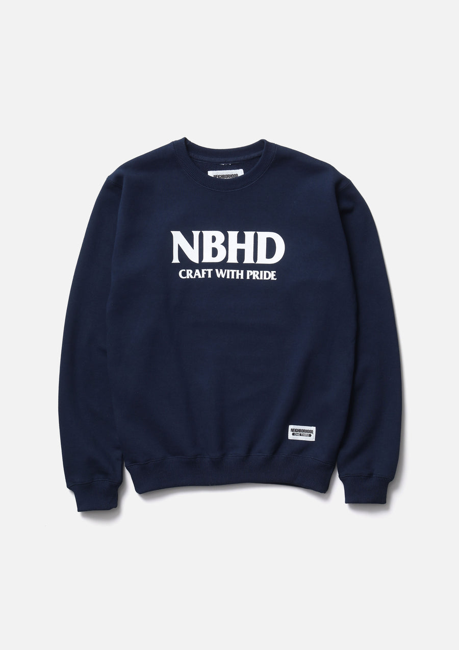 A crew neck sweatshirt made of mid-weight cotton fleece fabric. Printed logo on the front. A name tag is placed on the left hem.