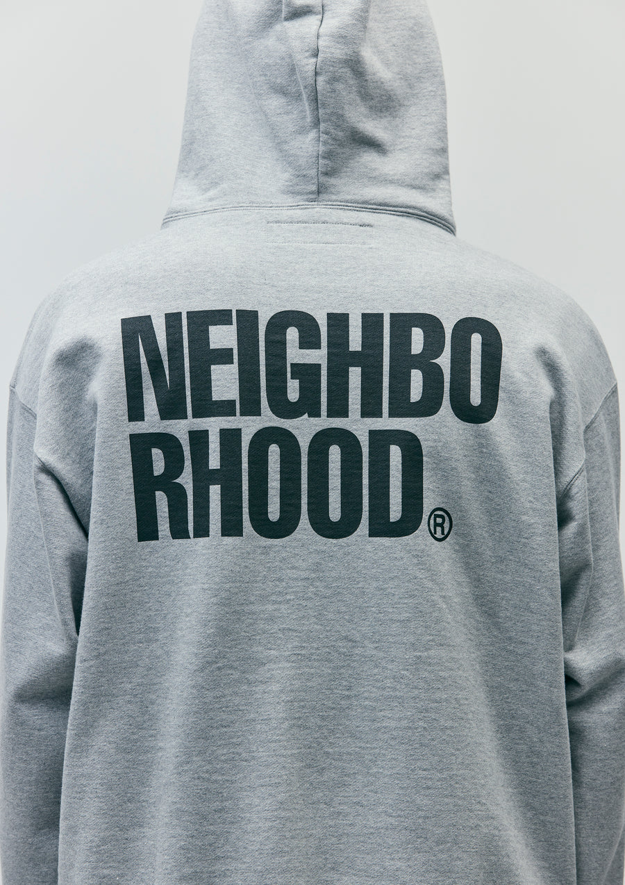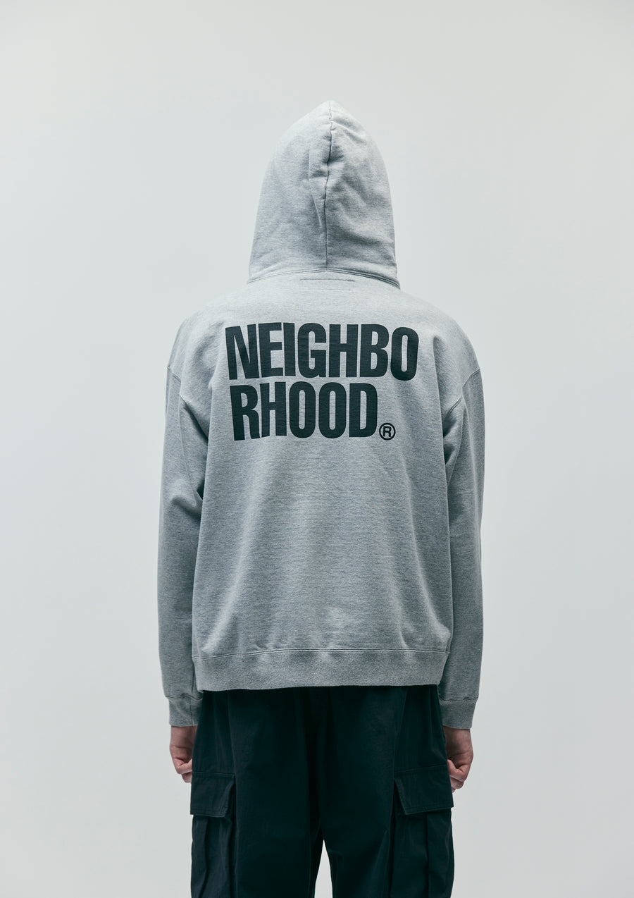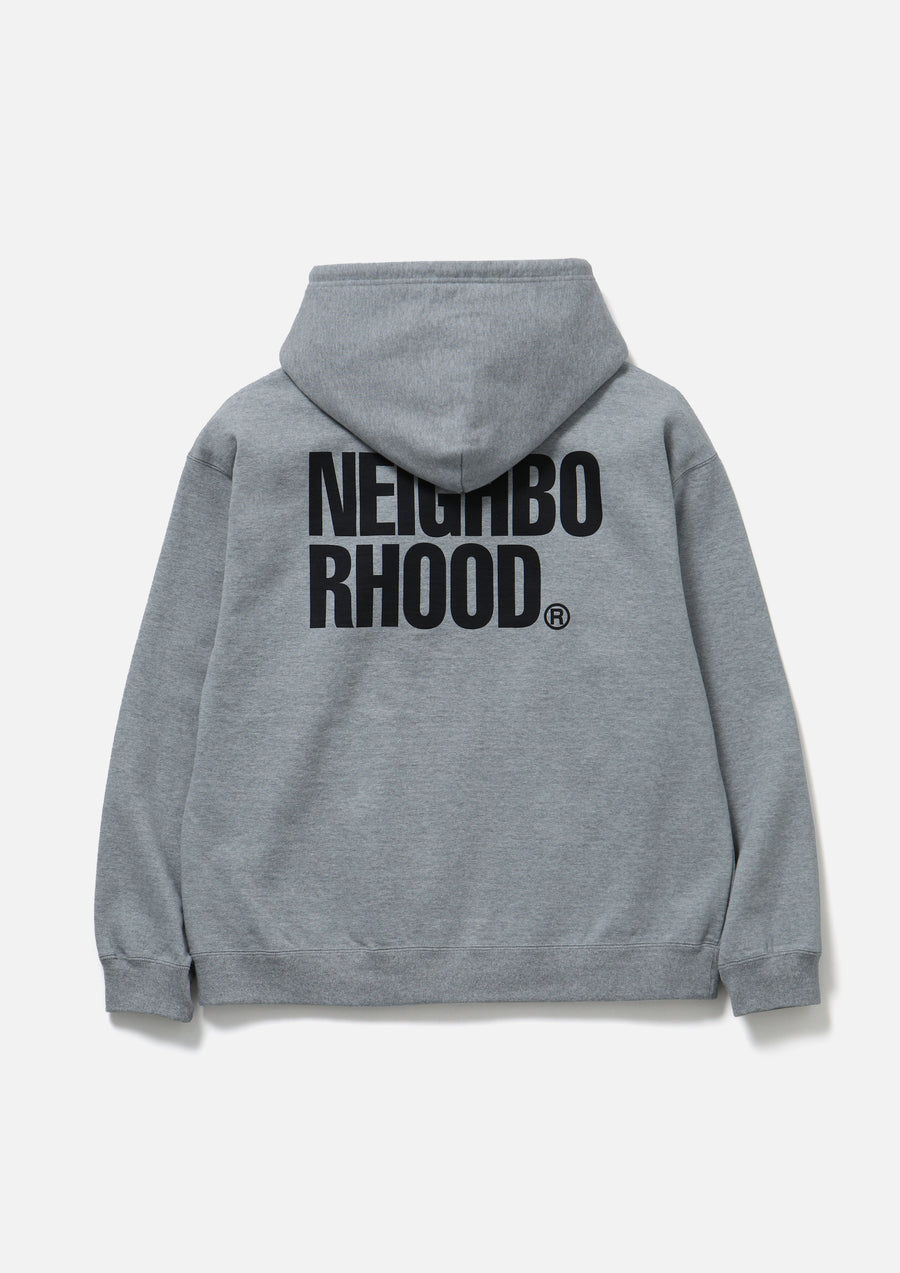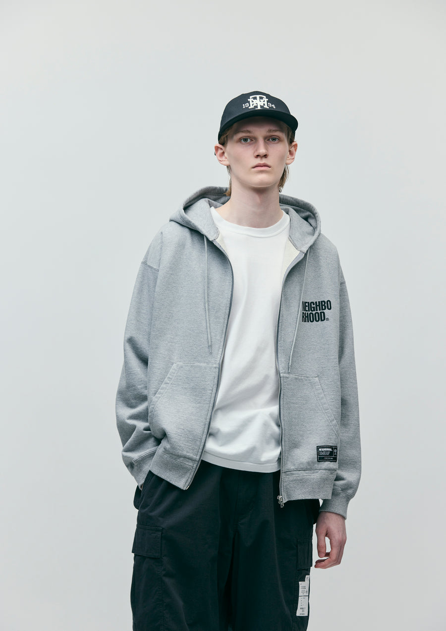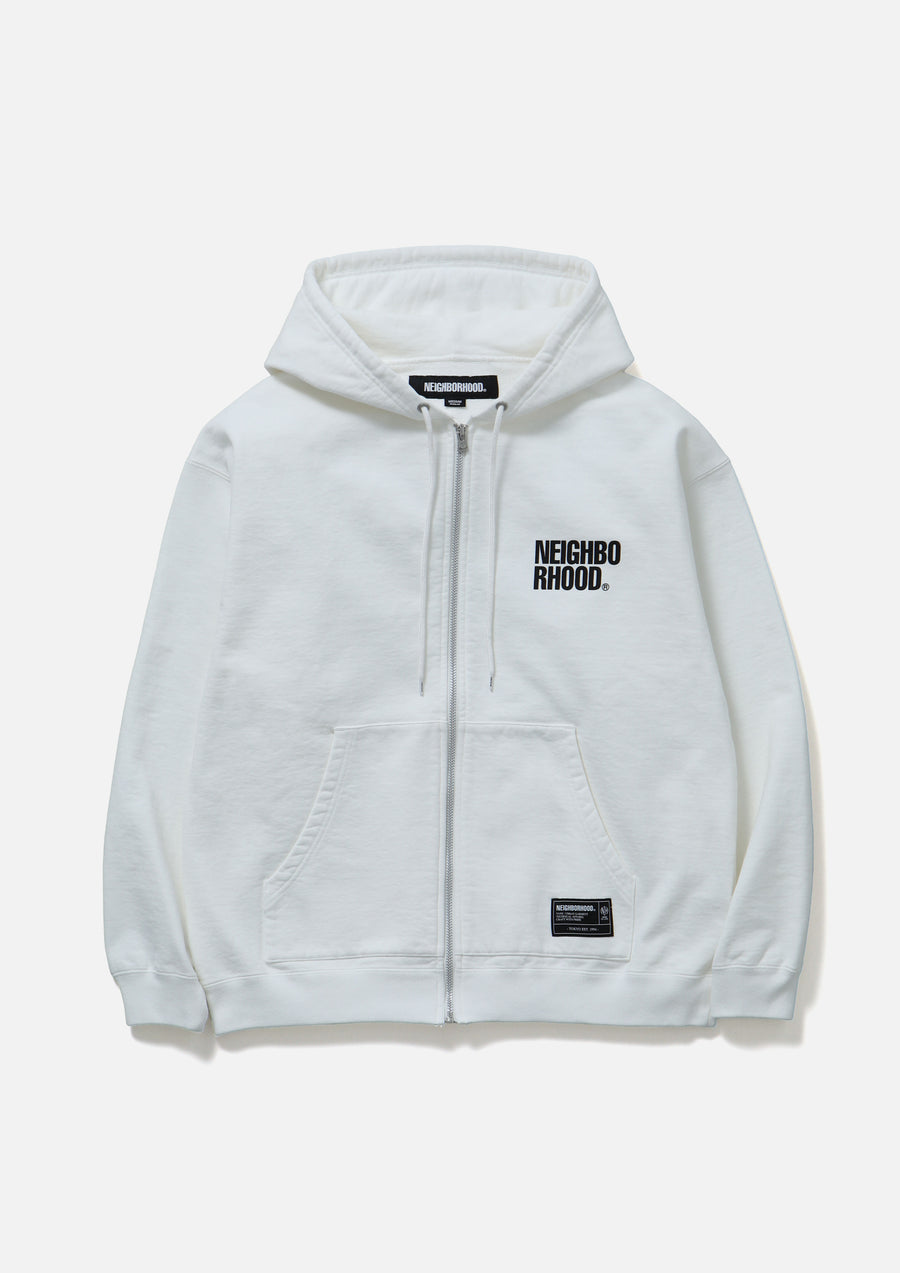 A zip hoodie made of tightly knit fleece-backed fabric. Features double-thread loops for both durability and softness. Printed logos on the left chest and back. Includes an original zipper pull and a brand tag on the side seam.