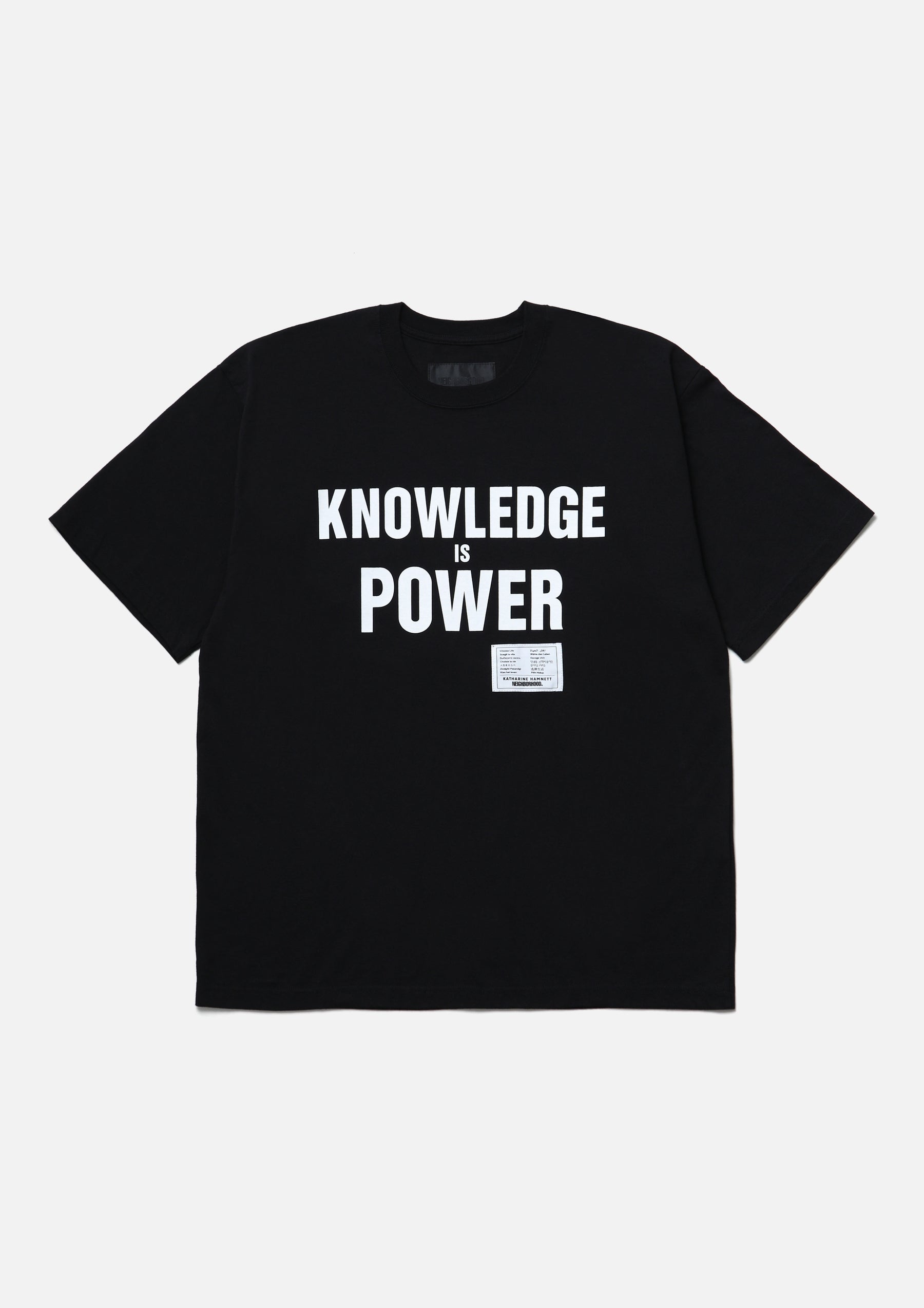A short-sleeve T-shirt printed with a slogan proposed by KATHARINE HAMNETT. The slogan conveys the idea that knowledge is a force for change in life and society, serving as a foundation for progress. Made from original cotton jersey body. Features a special edition brand tag.