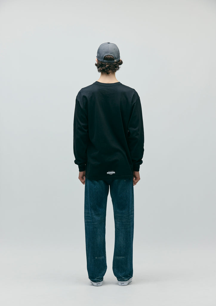 A long-sleeve T-shirt made of an original cotton jersey body. Graphic prints on the front and back. One-wash finish.