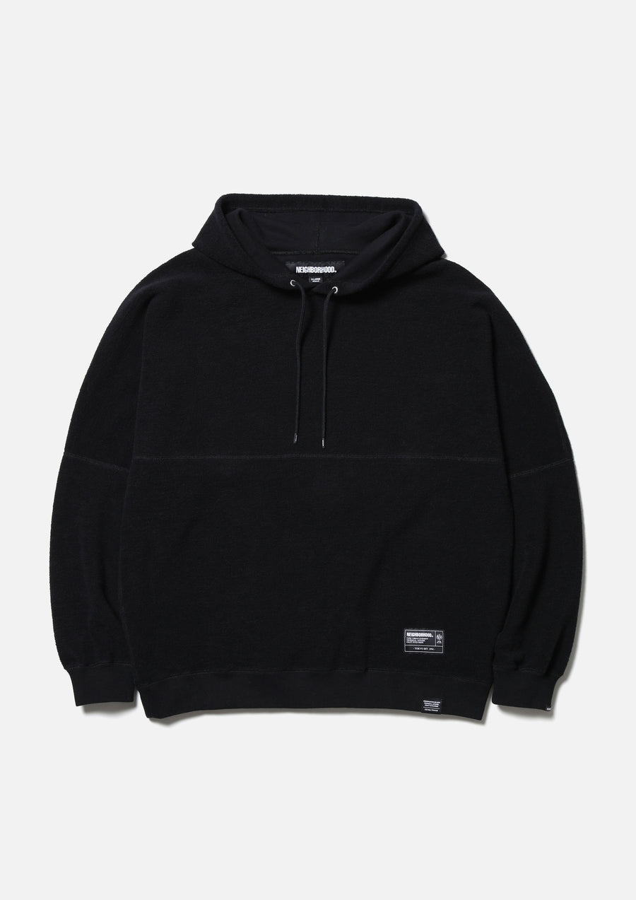 A reversible pullover hoodie utilizing the pile side of tightly knit fleece-backed fabric. Designed with distinctive paneling. Features a logo print on the jersey side and a brand tag on the pile side. Includes a brand tag inserted in the cuff.