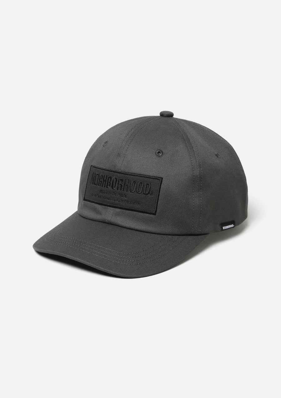 A dad cap made from high-density cotton twill fabric. Logo patch on the front. The rear adjuster features an original buckle. Brand tag on the left side.