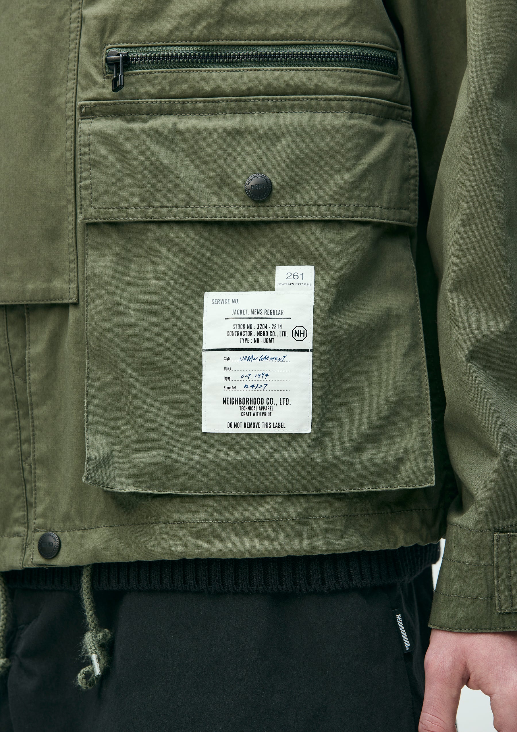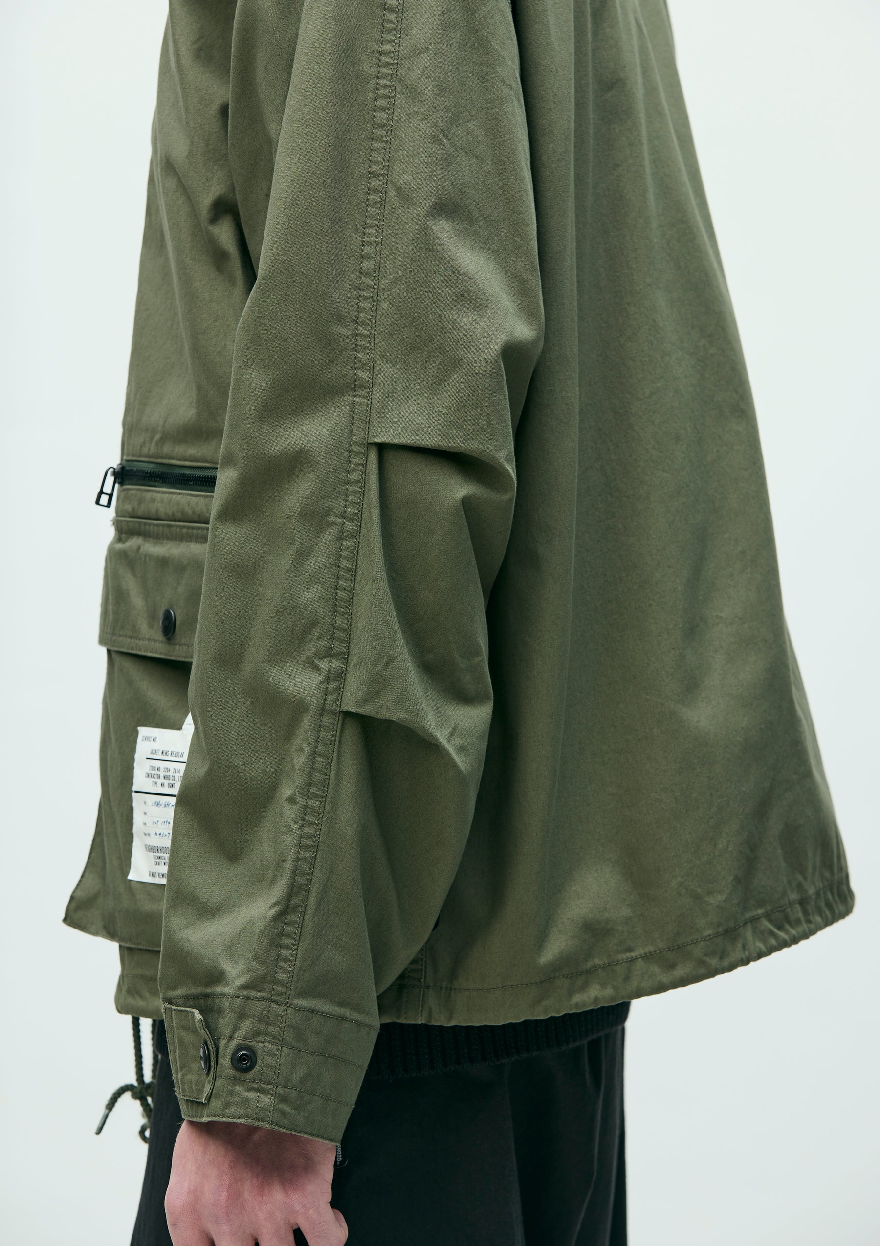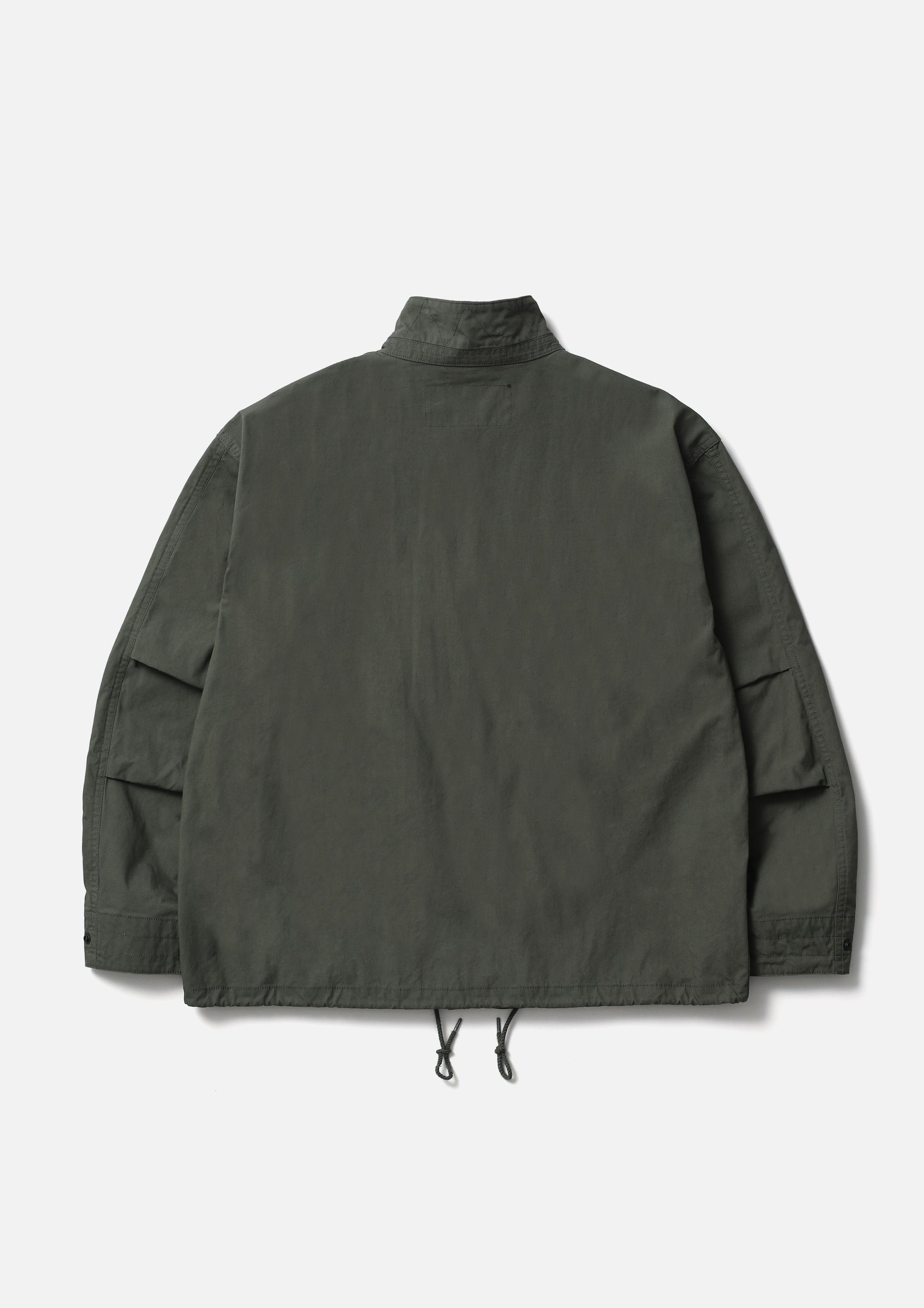 Stand Collar Field Jacket made from a cotton-nylon oxford fabric blended with CORDURA®, offering excellent durability and abrasion resistance, and finished with a water-repellent treatment. The front features a wide placket, gusseted pockets, and a zip pocket. An adjustable drawcord is built into the hem. The cuffs are finished with adjustable tabs. Original snap buttons are used. A brand tag is attached to the pocket, and a woven side label is placed on the left seam. Finished with a one-wash process.
