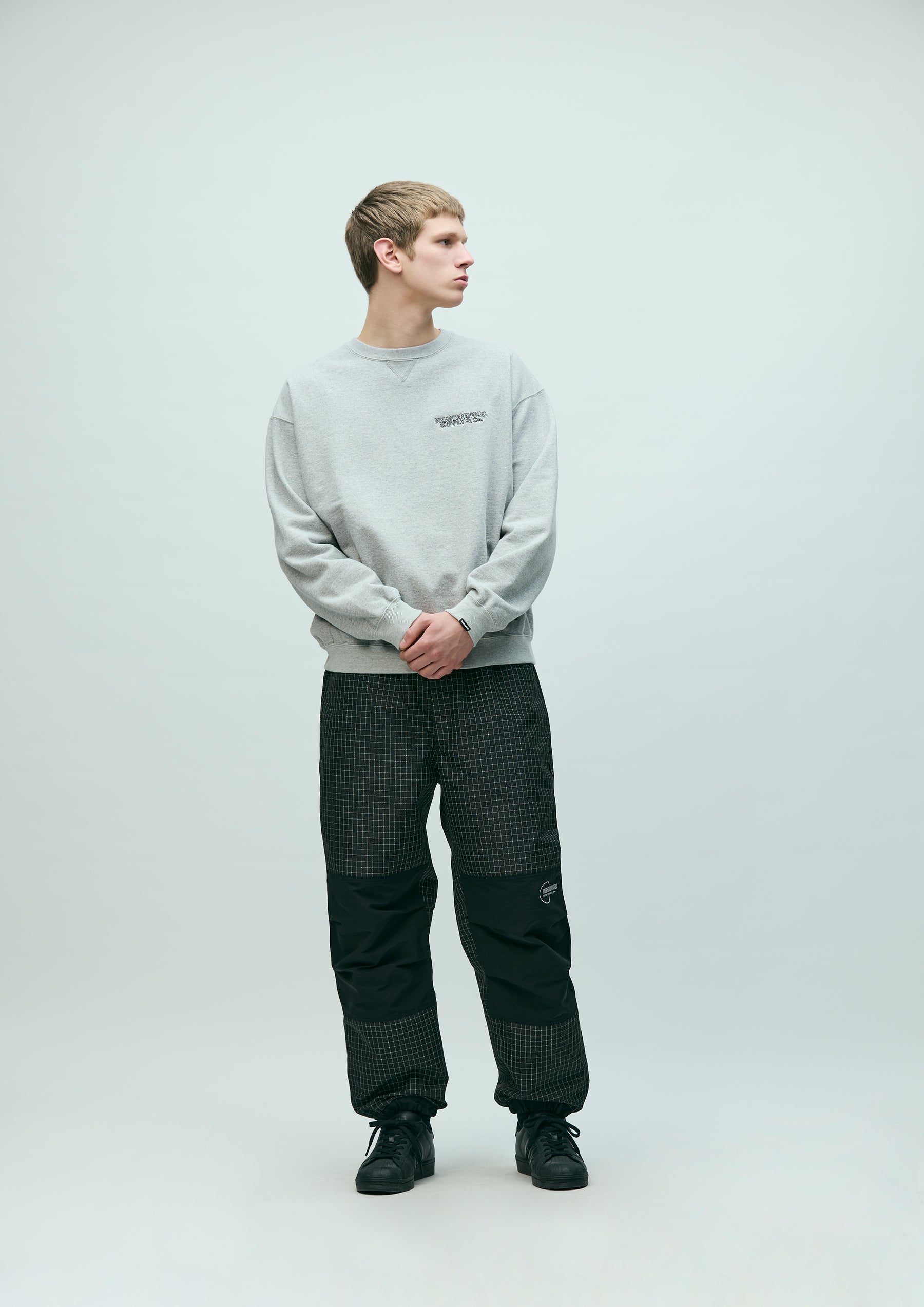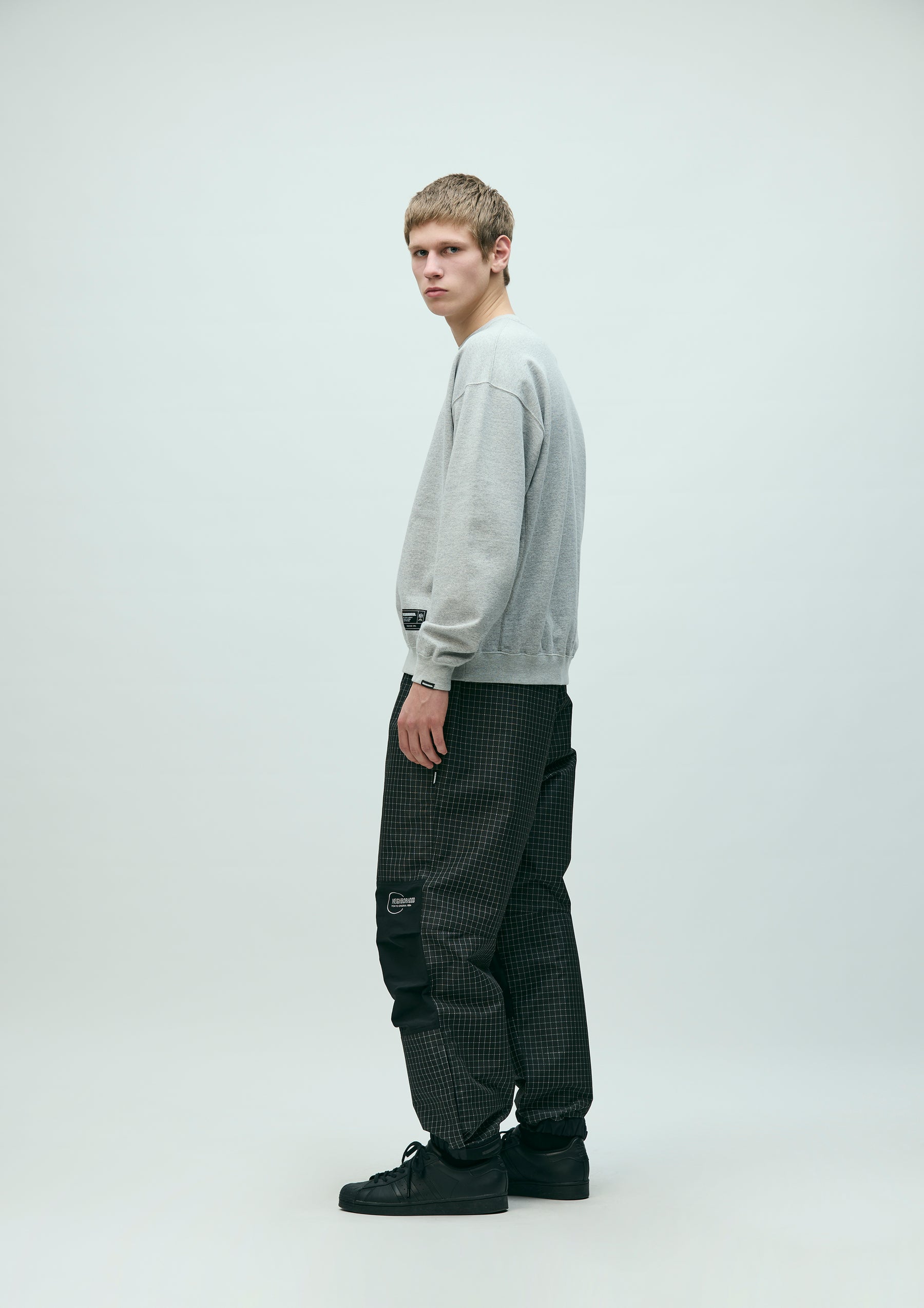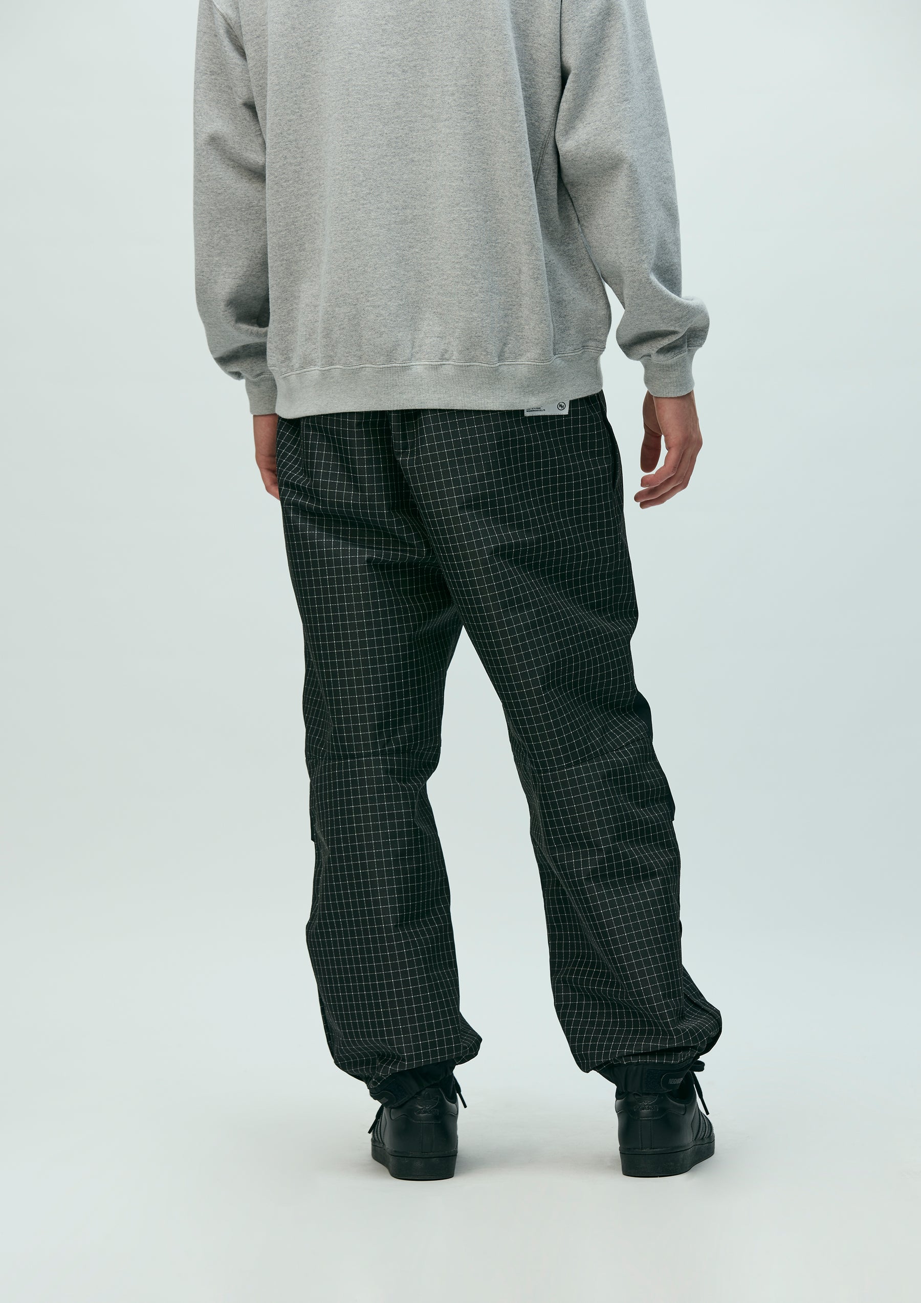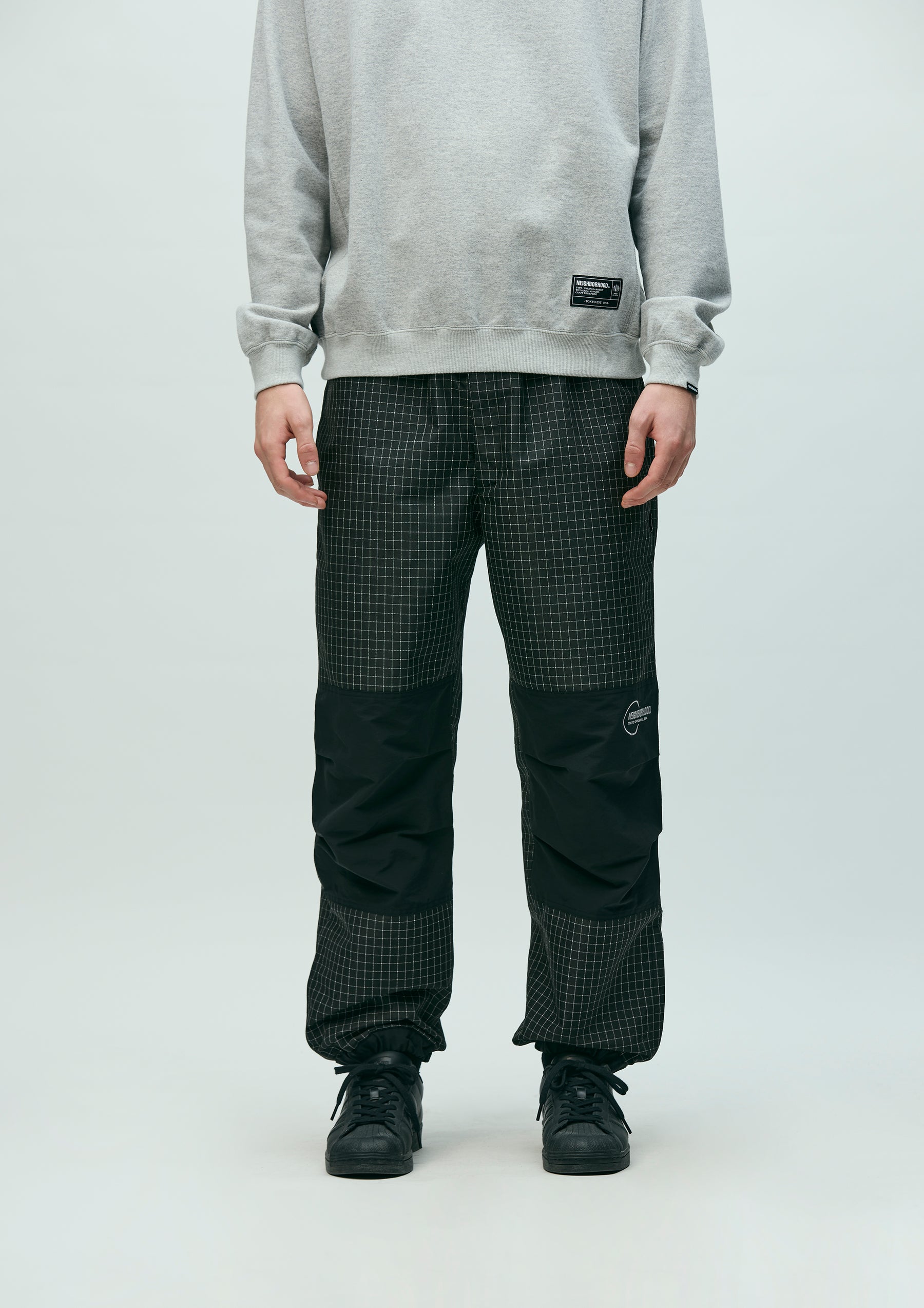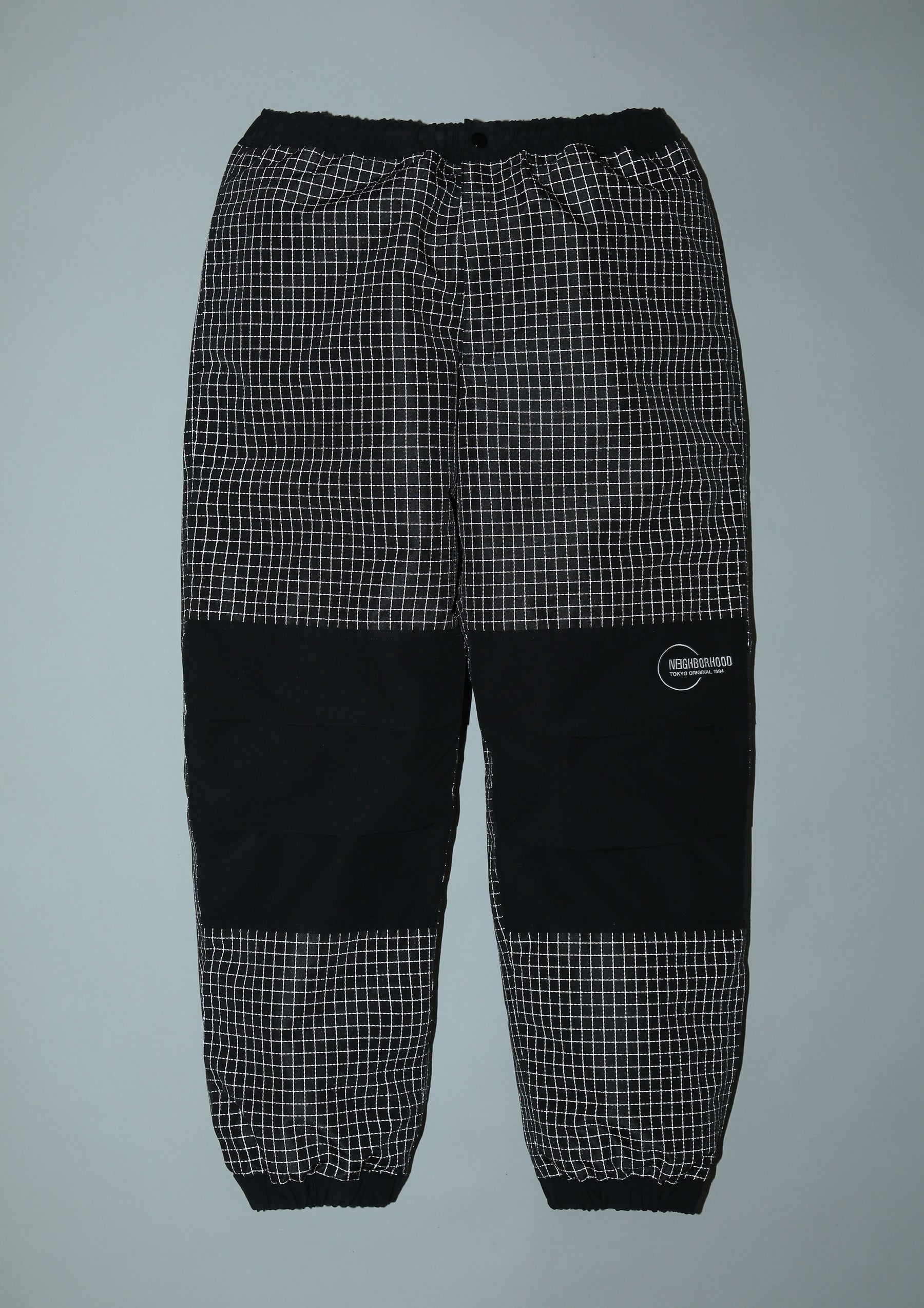 Training Pants made from a combination of original reflective ripstop material and recycled nylon-blend fabric. The textile incorporates reflector yarn for high visibility, with a water-repellent surface finish and acrylic-coated reverse side to ensure durability, water resistance, and safety. Designed with zip slits at both sides and a zip pocket at the back. The elasticated waistband includes an internal drawcord. Features embroidered logo detailing at the left knee panel, original snap buttons, and Velcro tabs. Lined with COOLMAX® mesh for moisture-wicking and quick-dry performance. A brand tag is placed below the back pocket, with a woven side label at the side seam.