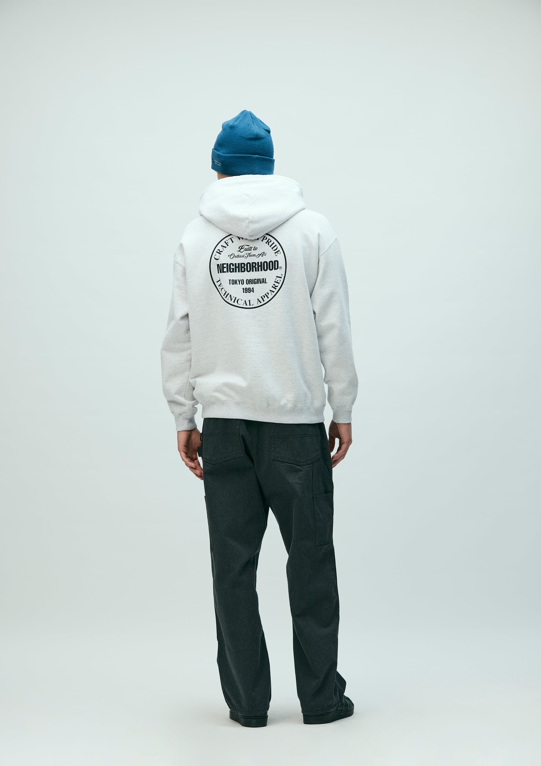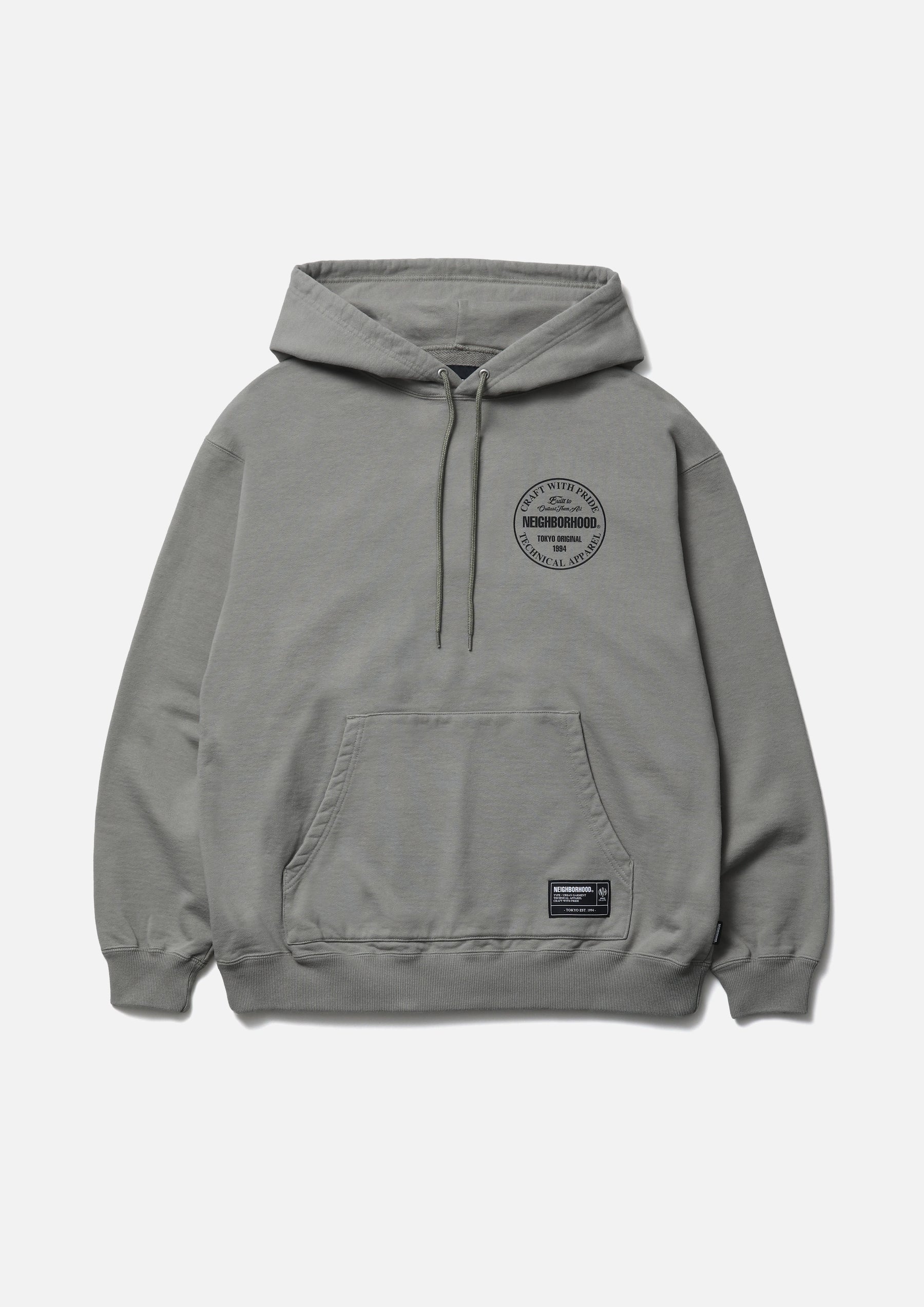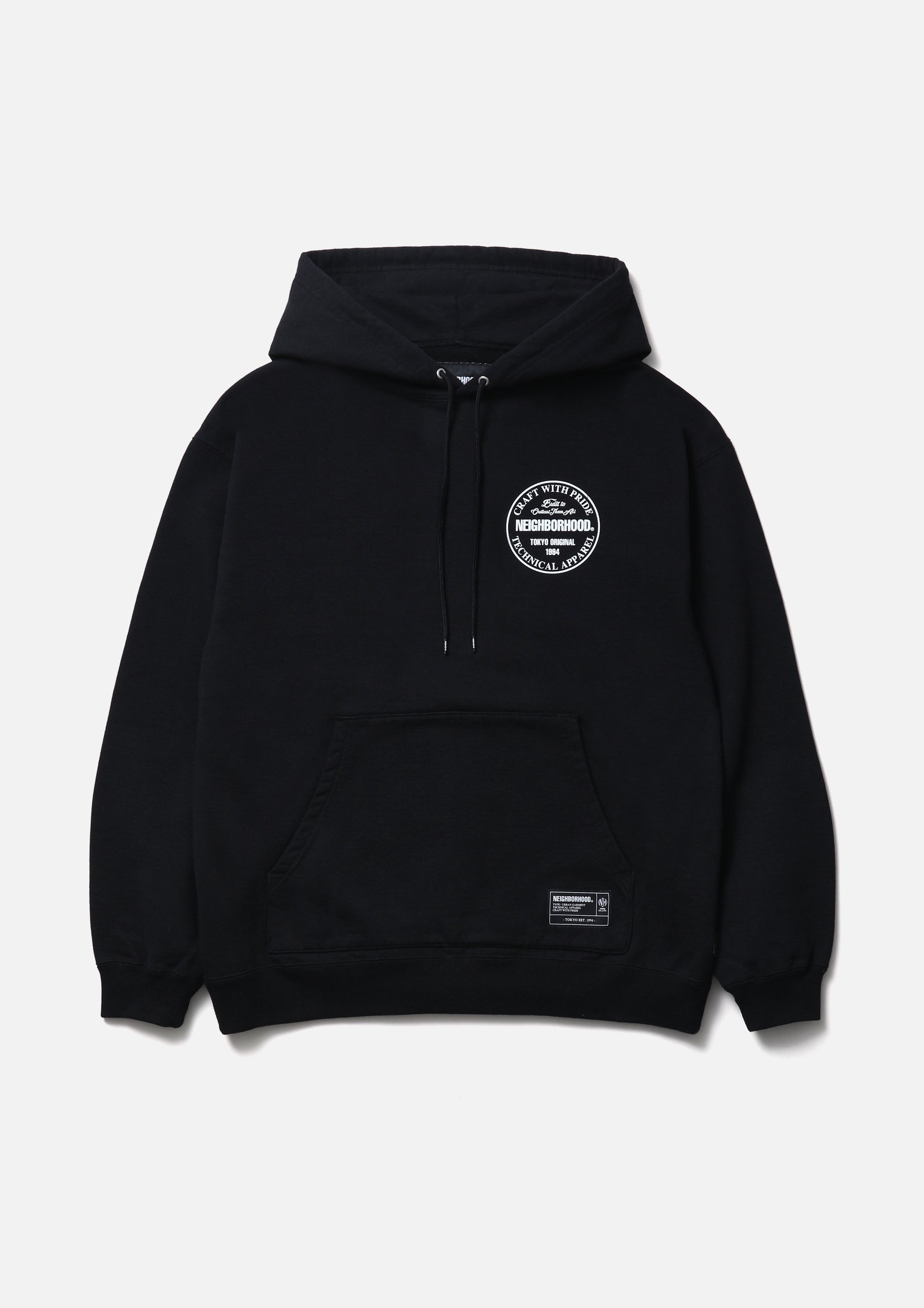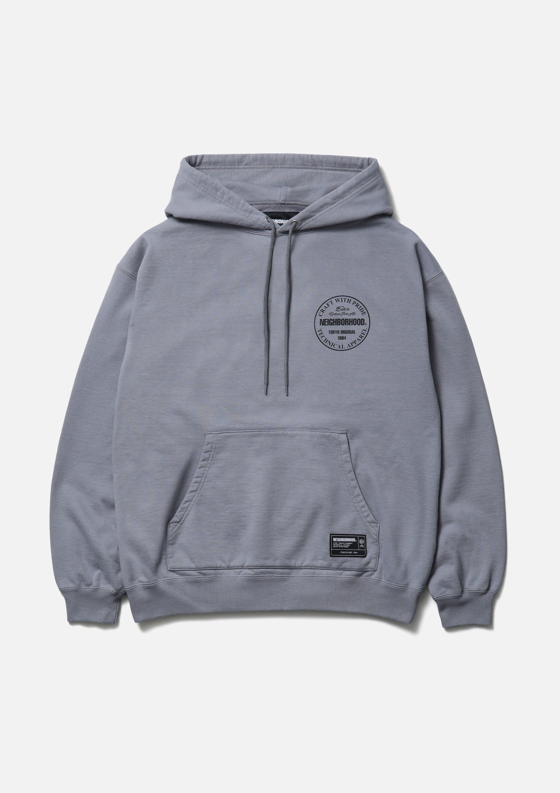 Pullover hoodie made from medium-weight cotton fleece fabric. Features printed logos on the left chest and back, with an original adjustable drawcord at the hood. A brand tag is placed at the left hem, and a woven side label is attached at the side seam. Completed with a one-wash finish.