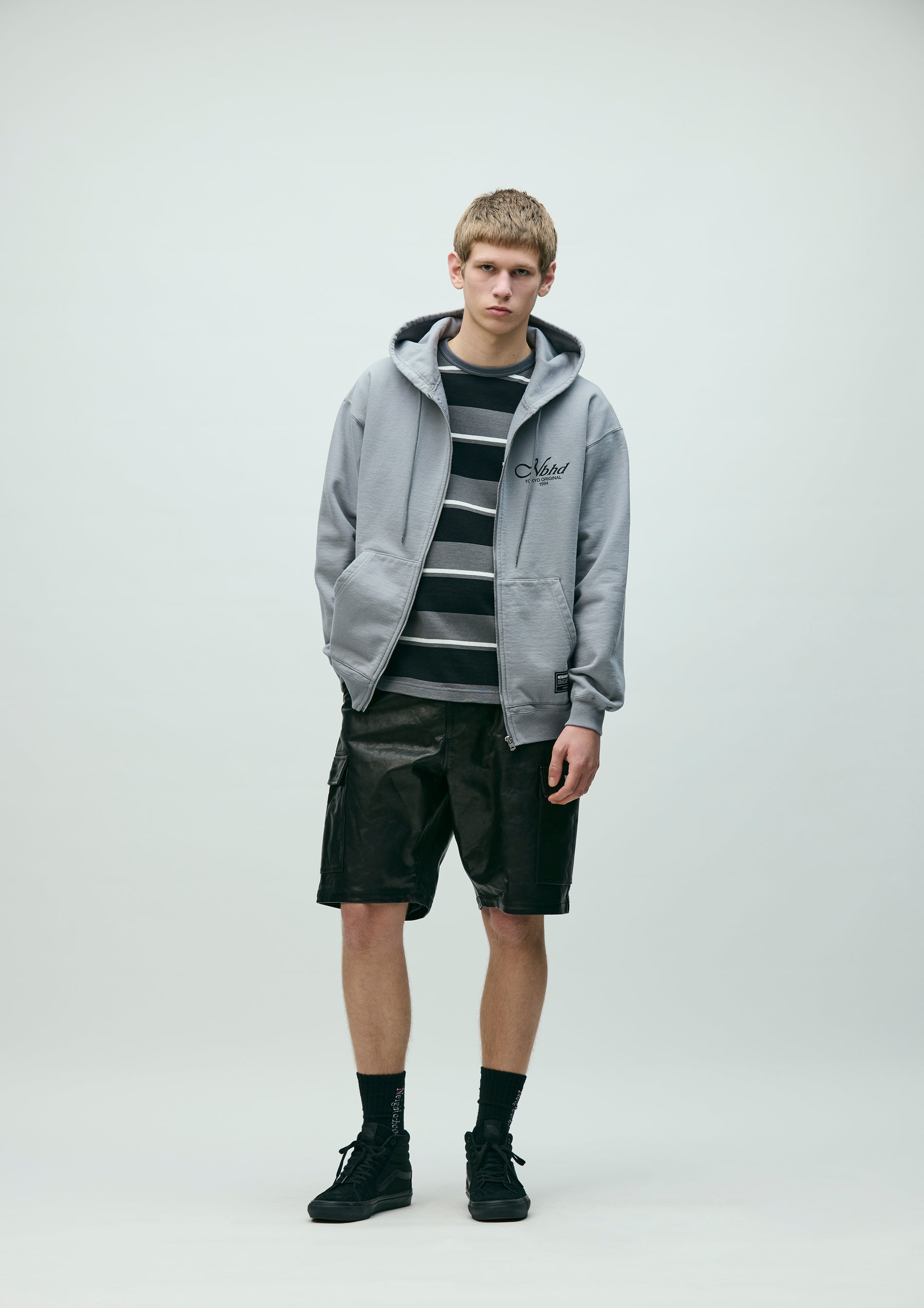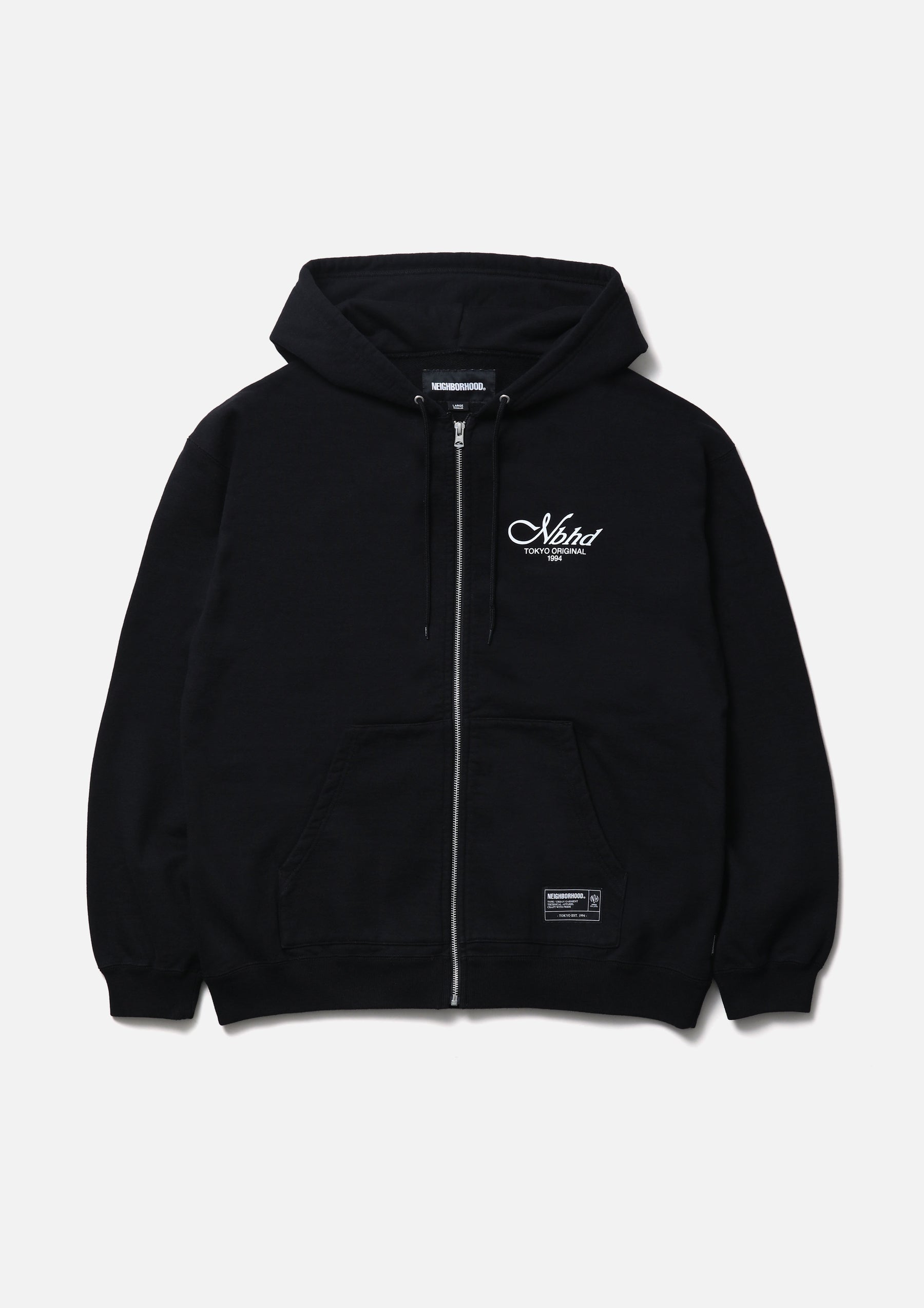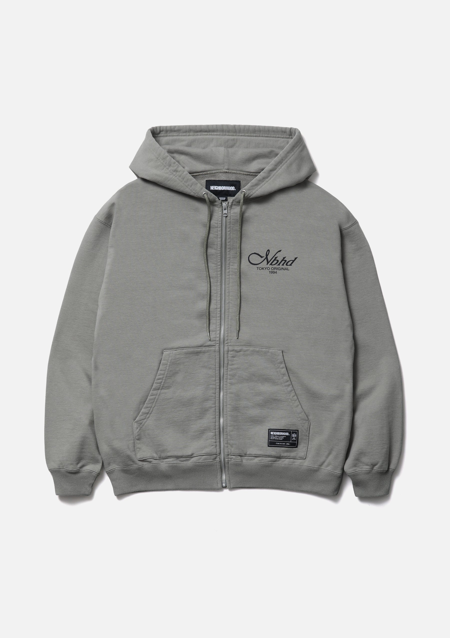 Zip-up hoodie made from medium-weight cotton fleece fabric. Features printed logos on the left chest and back. Equipped with an original adjustable drawcord at the hood and original zipper pulls. A brand tag is placed at the left hem, and a woven side label is attached at the side seam. Completed with a one-wash finish.