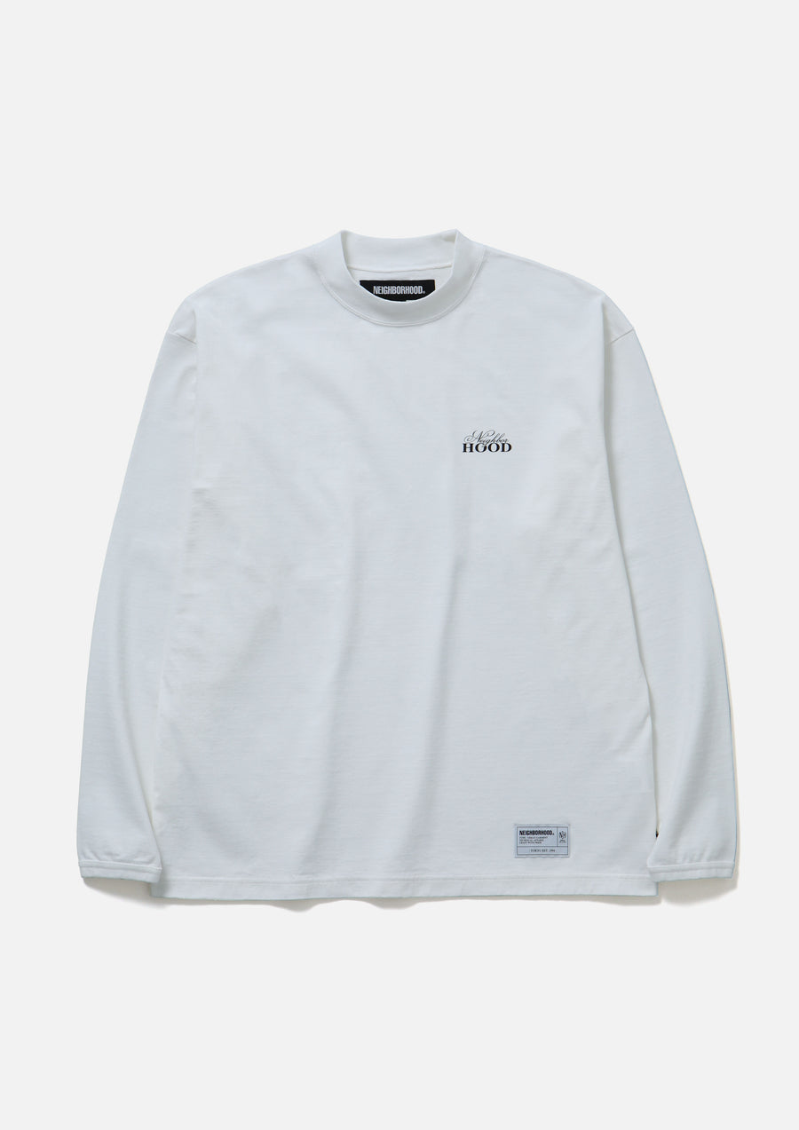 A mock neck cut-and-sew made of high-gauge tightly knit jersey. Features a printed logo on the left chest. Includes a brand tag on the side seam.