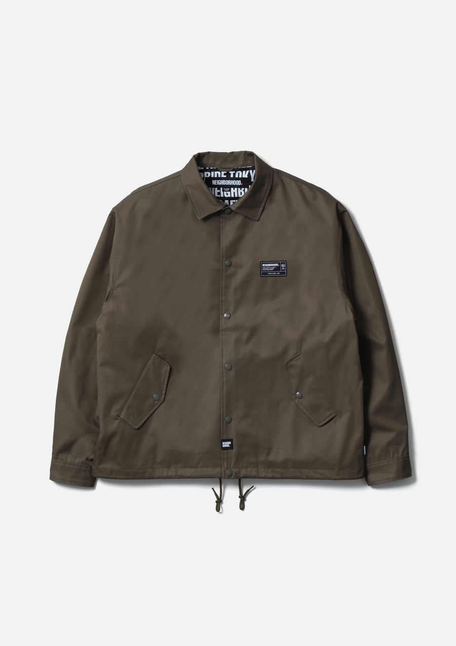 A windbreaker jacket made from High-density gabardine fabric, which is cotton-based yet water-repellent due to its fine weave. Features flap pockets on both sides. The hem includes an adjustable drawcord. The lining features an original pattern with a printed graphic. Includes brand tags.
