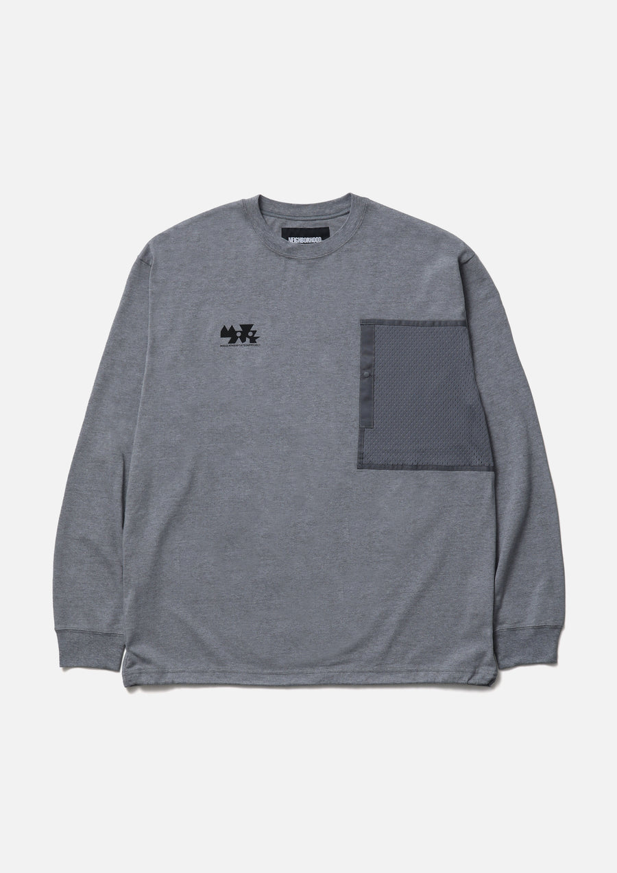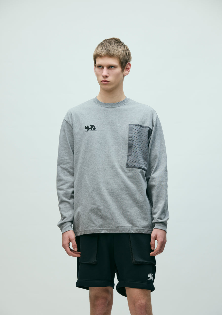 MAP Crewneck cut-and-sew top made from CORDURA® jersey fabric. Features a buttoned mesh pocket on the left chest and a printed logo on the right chest. Equipped with an adjustable elastic drawcord at the hem. A woven side label is attached at the side seam.