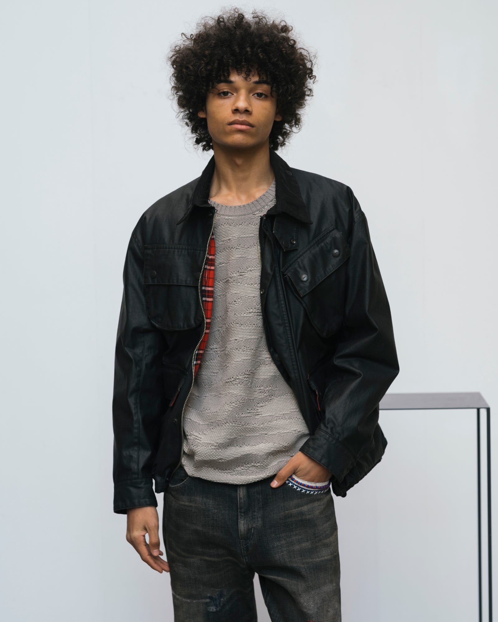 ZIP WORK JACKET SAVAGE CREWNECK SWEATER PATTERNED WIDE CARGO PANTS