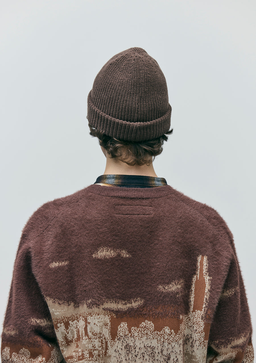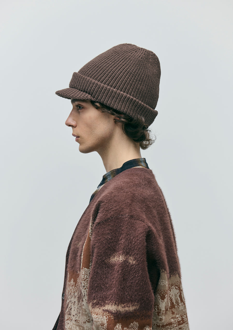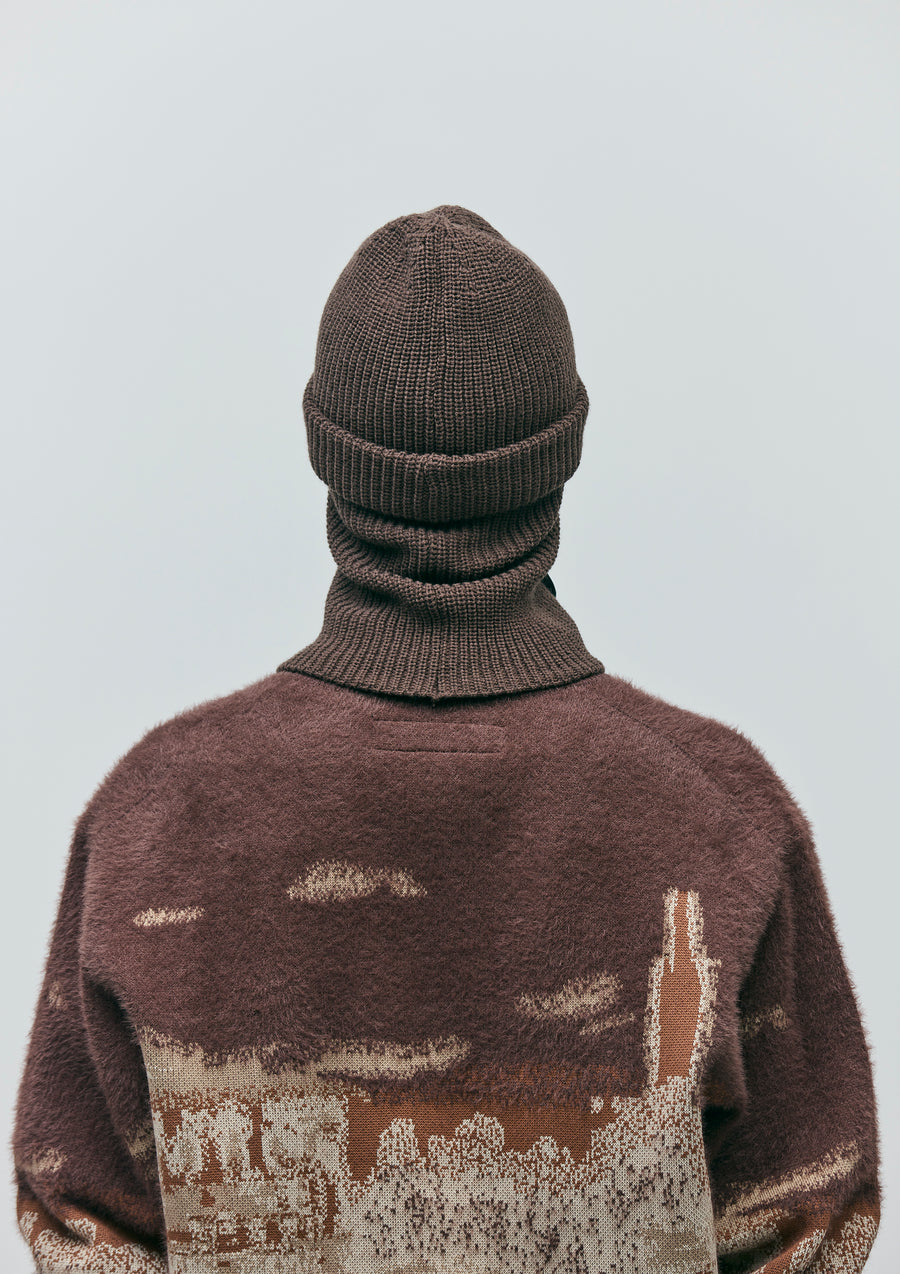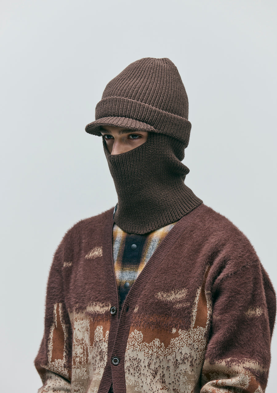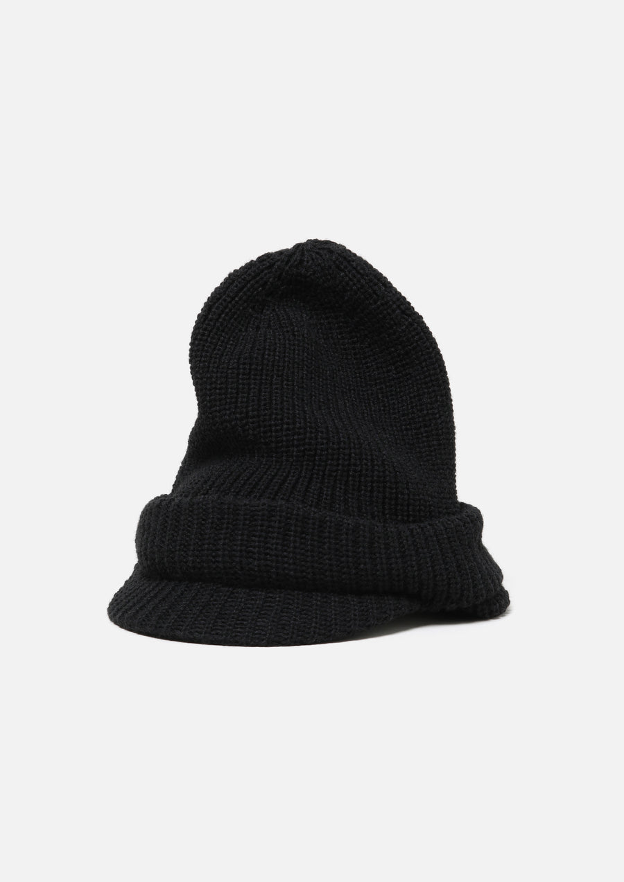 アートディレクター永戸鉄也と、デザイナー/クリエイティブディレクター倉石一樹が手掛けるブランド、out stand INとのジョイントワークアイテム。マスク部分を収納することで、ニットキャップとしても使用可能なつば付きのバラクラバ。アクリル糸を使用。右裾にロゴパッチを配置。