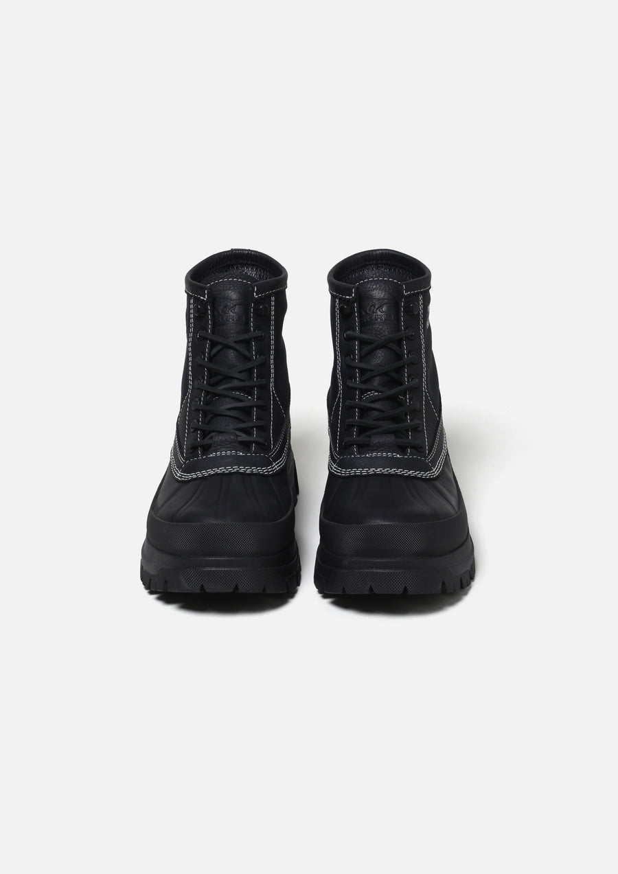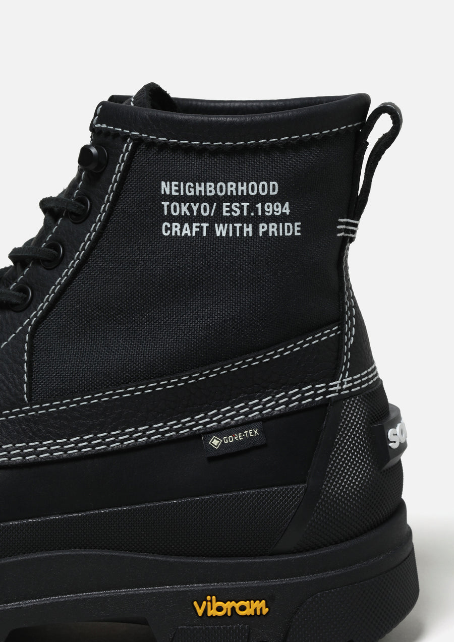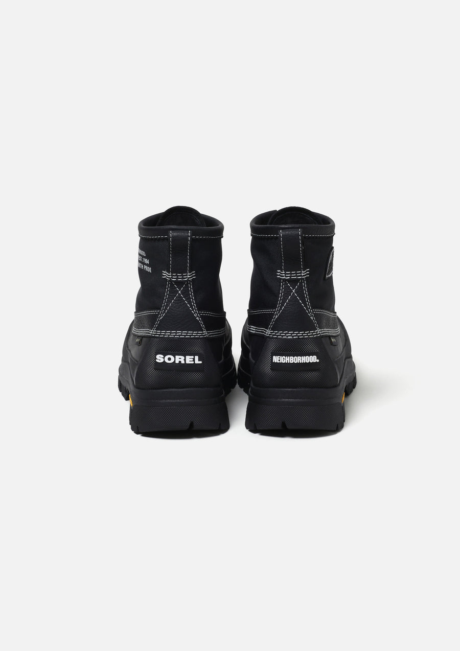 1962年の創業以来、ウィンターブーツのグローバルスタンダードを確立してきたカナダ発のヘリテージブランド「SOREL」とのコラボレーションアイテム。マウンテンスタイル × シティウェアをコンセプトにデザインされた「DAYSTORM HORIZON GTX」の特別エディションは、耐久性と快適性のバランスを兼ね備えた一足。アッパーパターンを変更し、両ブランドのロゴプリント、レザーパッチ、ラバーパッチを配置。GORE-TEX構造による完全防水仕様。取り外し可能なOrtholiteインソールと、XS TREK EVO Vibramコンパウンドを使用した成型アウトソールを搭載。