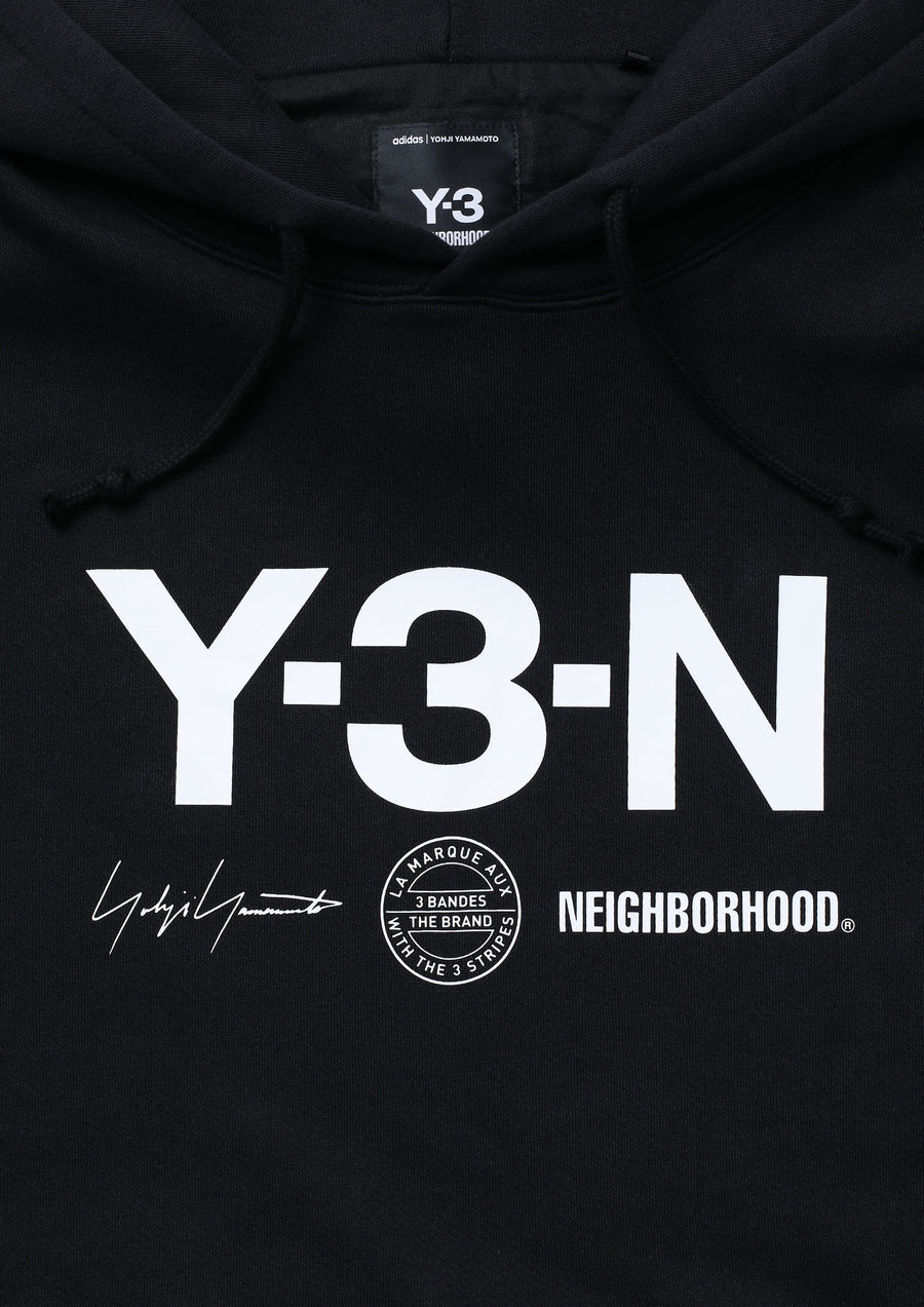 フロントにロゴをプリントしたスウェットフーディ。マフポケットを配置。フード口に調節用のドローコードを内蔵。左裾にブランドタグを付属。adidasのスポーツの専門的な技術・機能と山本耀司のデザインが融合したスポーツファッションブランド「Y-3」とのコラボレーション。