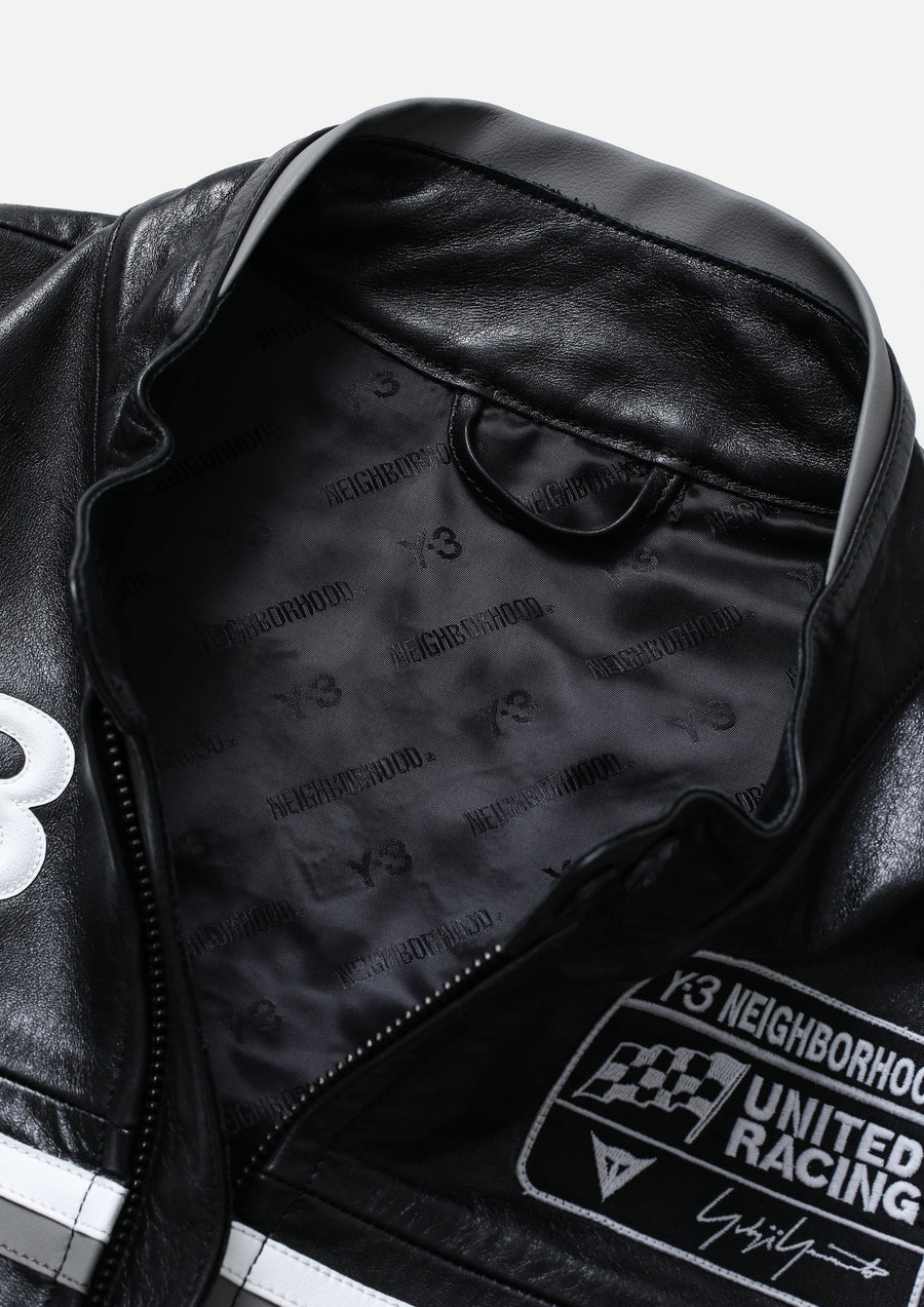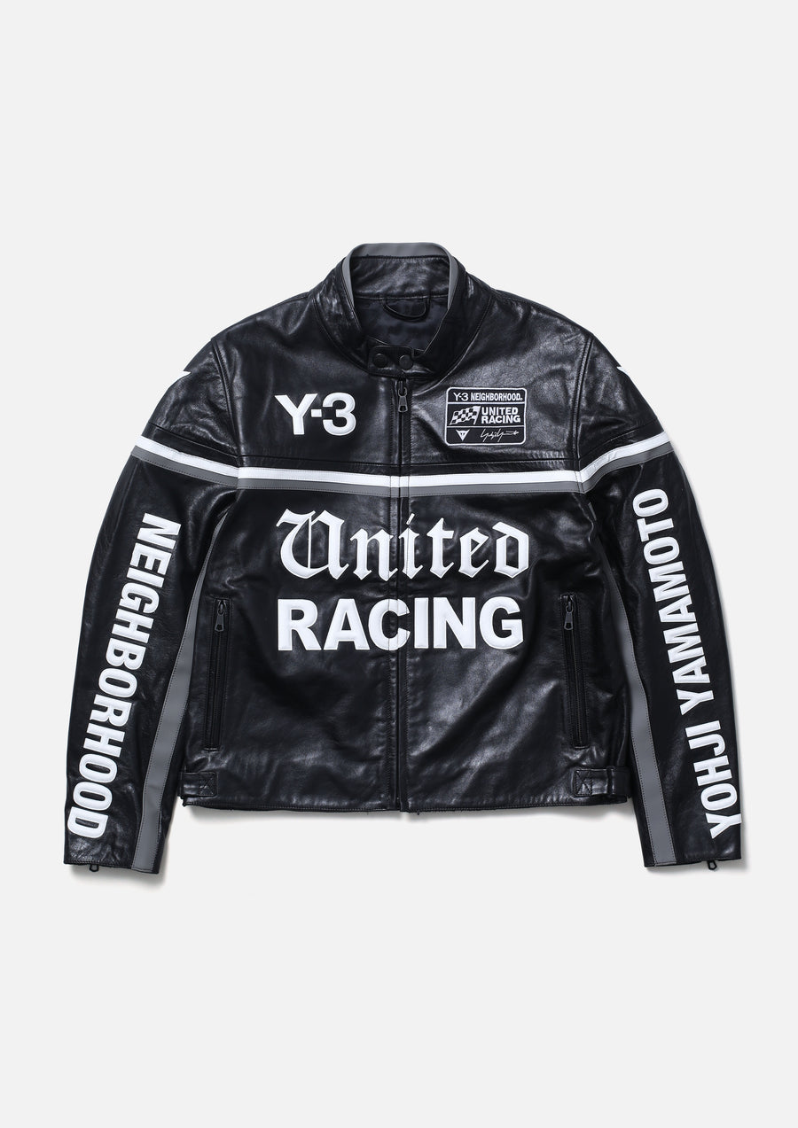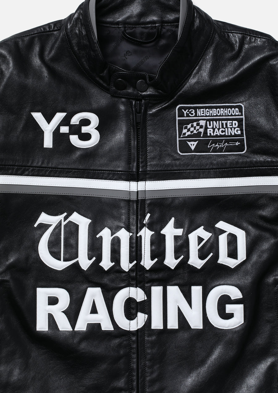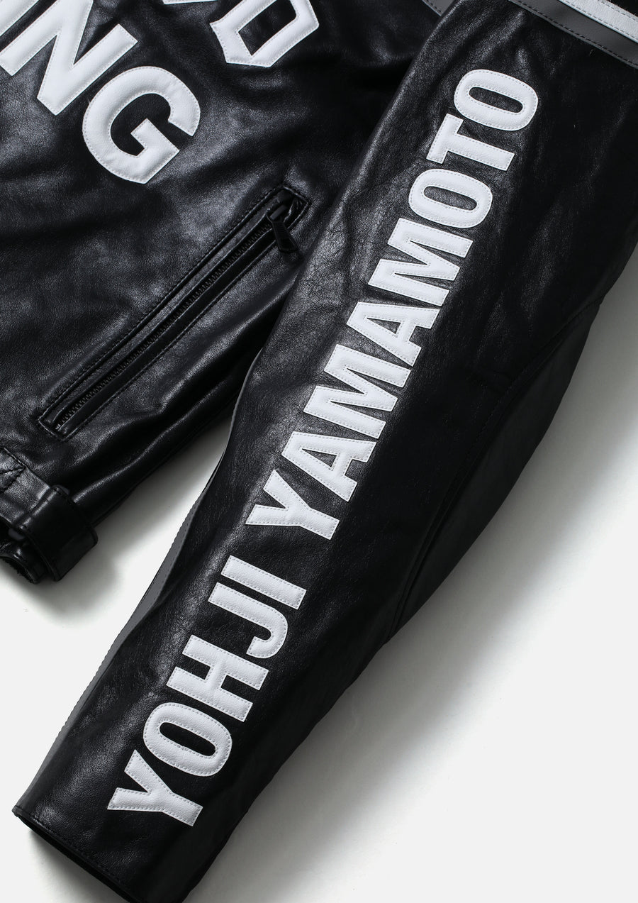 ダイナミックなスポーツを楽しむアスリート達に最高のプロテクターを提供するブランドDaineseに製作を依頼したレーサージャケット。カウレザーを使用。象徴的なモチーフやロゴパッチを随所に配置。フロントジップ、ジッパーポケット、複数のインナーポケット、肘当て、オリジナルジャカード裏地などのディティールを採用。adidasのスポーツの専門的な技術・機能と山本耀司のデザインが融合したスポーツファッションブランド「Y-3」とのコラボレーション。