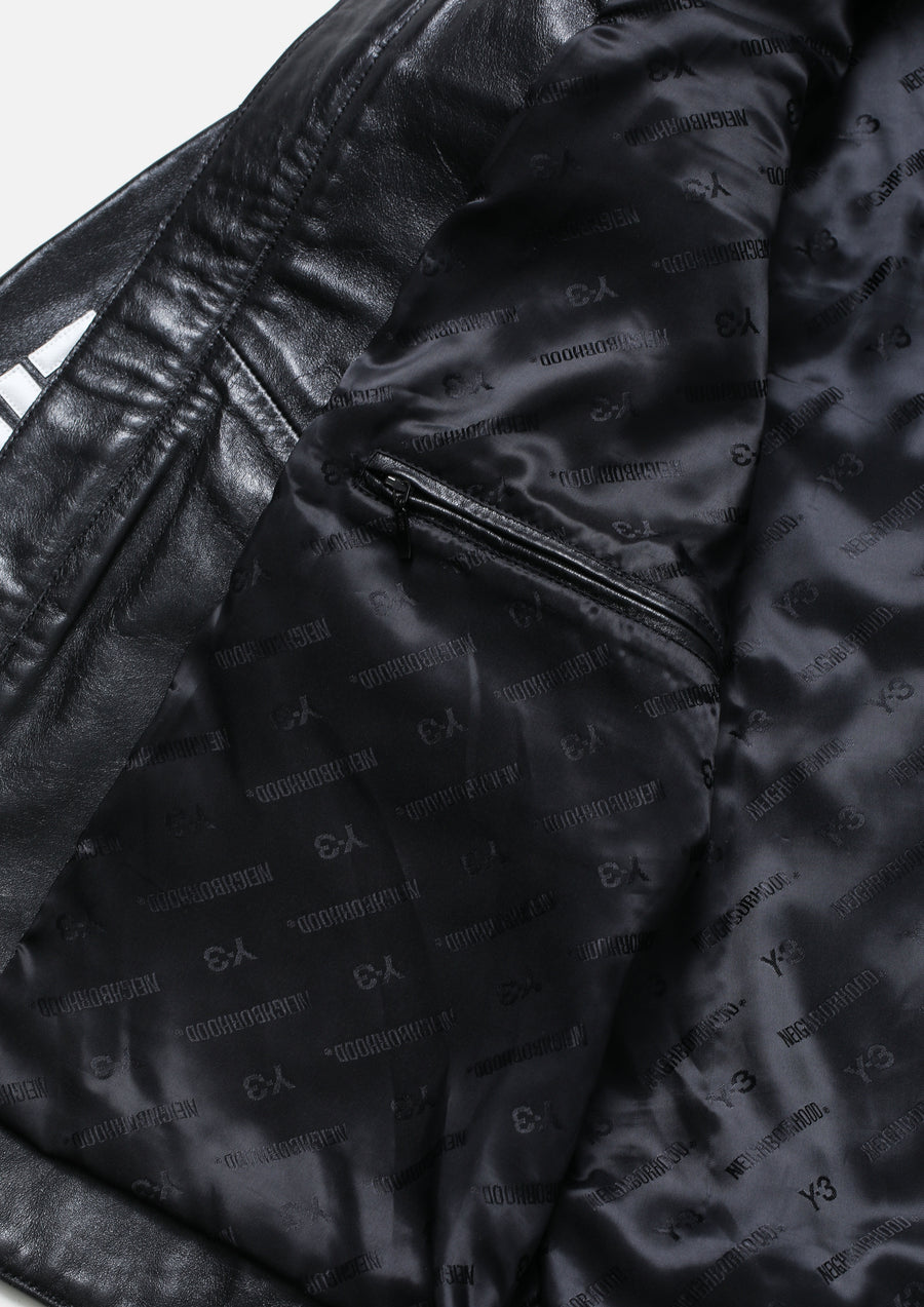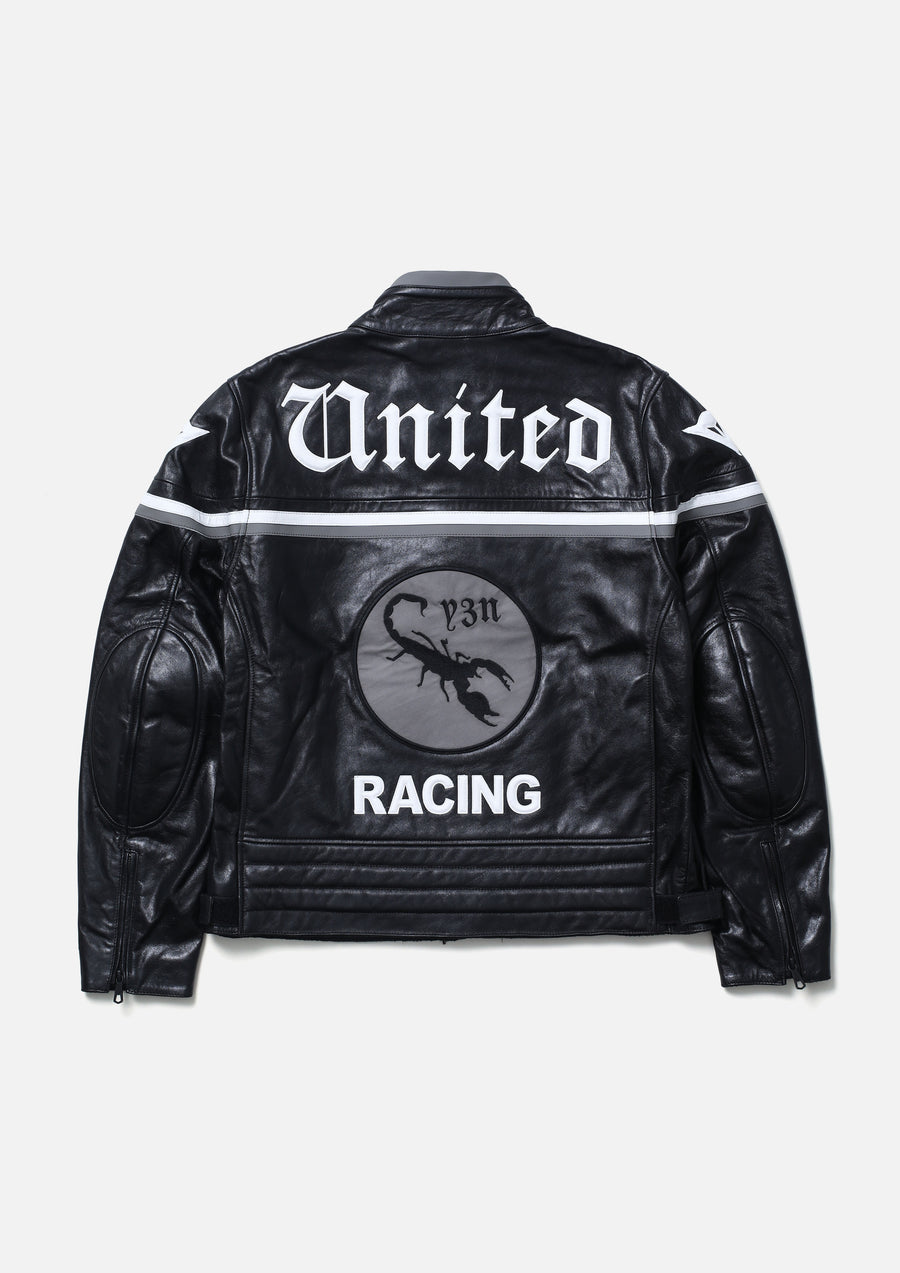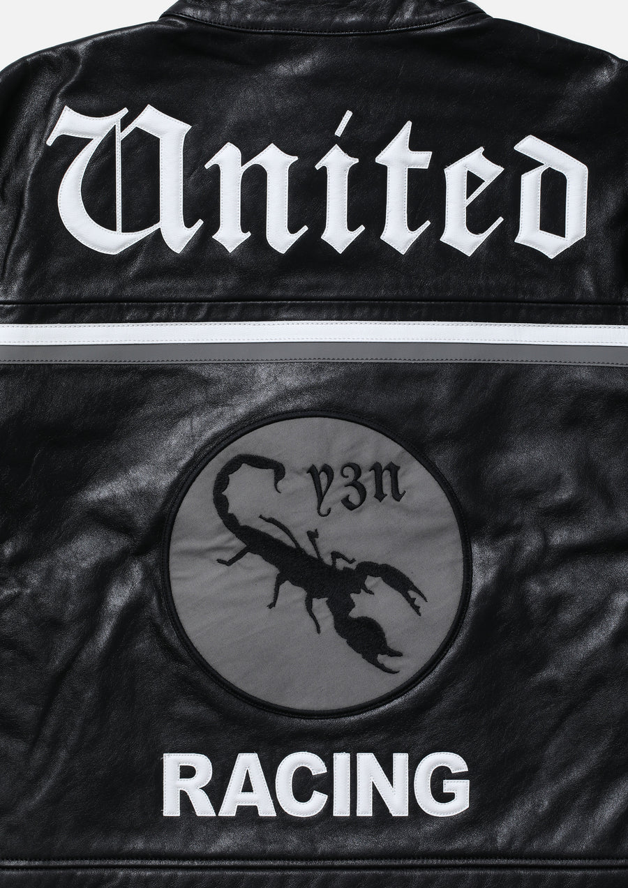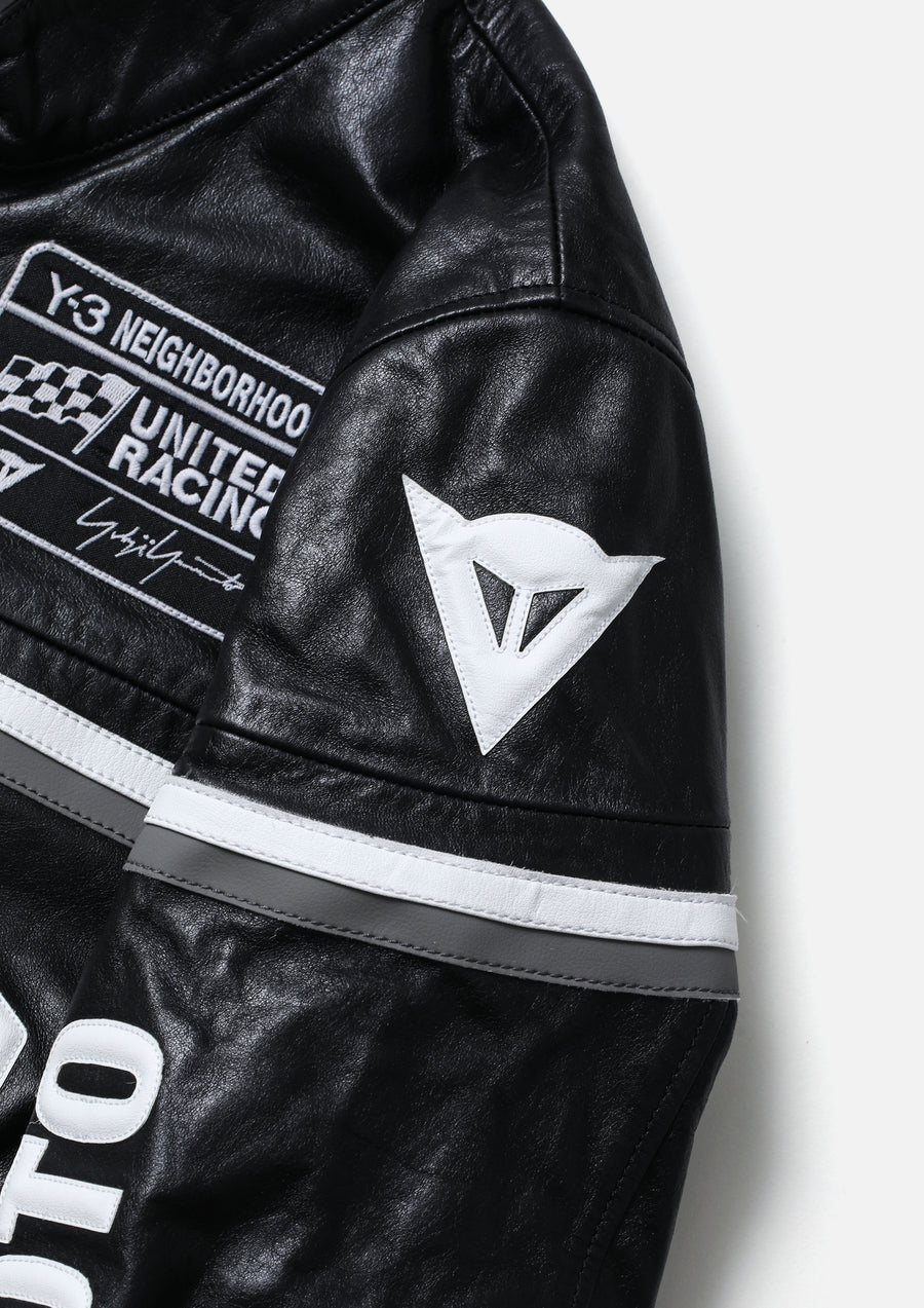 ダイナミックなスポーツを楽しむアスリート達に最高のプロテクターを提供するブランドDaineseに製作を依頼したレーサージャケット。カウレザーを使用。象徴的なモチーフやロゴパッチを随所に配置。フロントジップ、ジッパーポケット、複数のインナーポケット、肘当て、オリジナルジャカード裏地などのディティールを採用。adidasのスポーツの専門的な技術・機能と山本耀司のデザインが融合したスポーツファッションブランド「Y-3」とのコラボレーション。