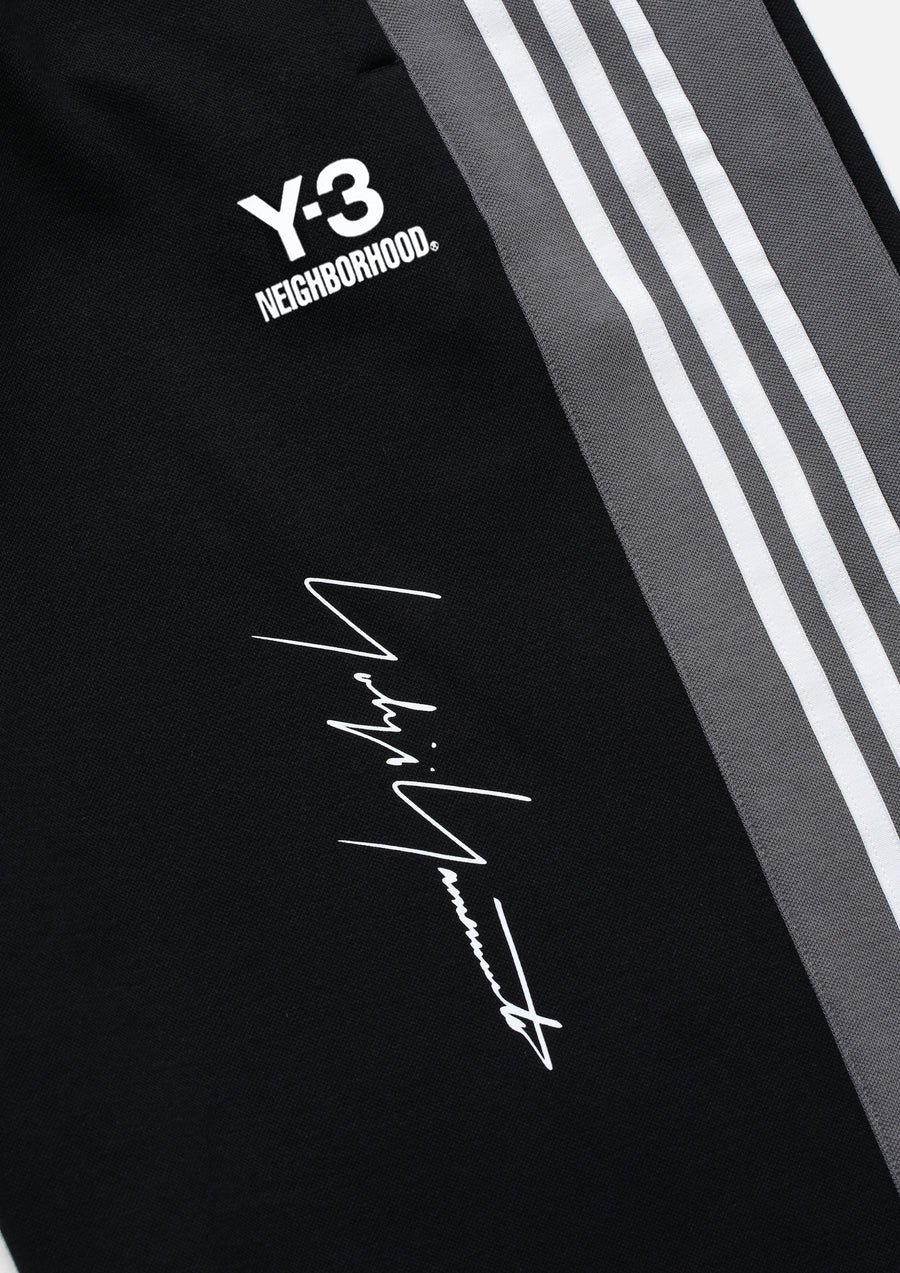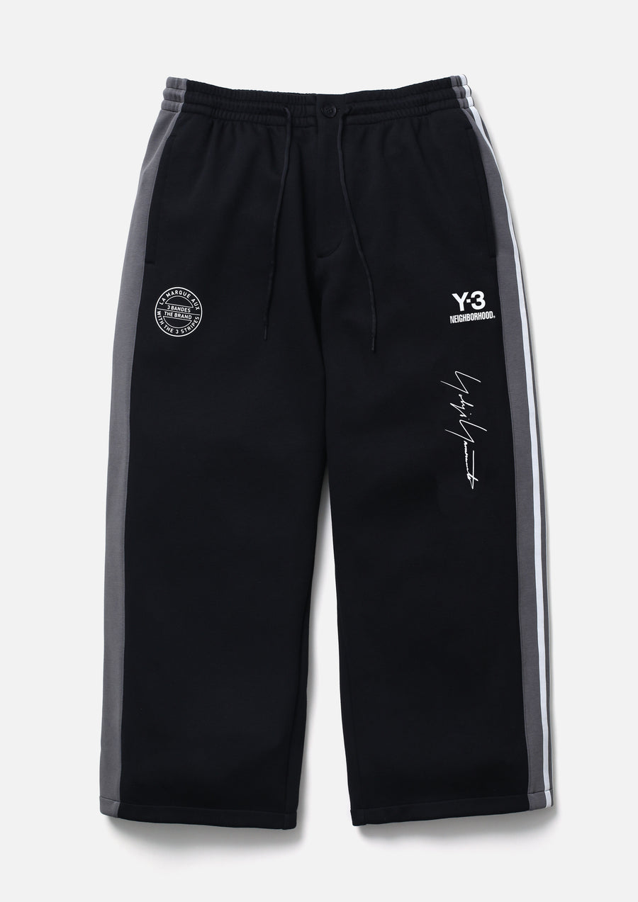 隠しスナップボタン仕様のサイドスリットと片脚にあしらわれたスリーストライプスが特徴的なトラックパンツ。両脚にロゴをプリント。adidasのスポーツの専門的な技術・機能と山本耀司のデザインが融合したスポーツファッションブランド「Y-3」とのコラボレーション。
