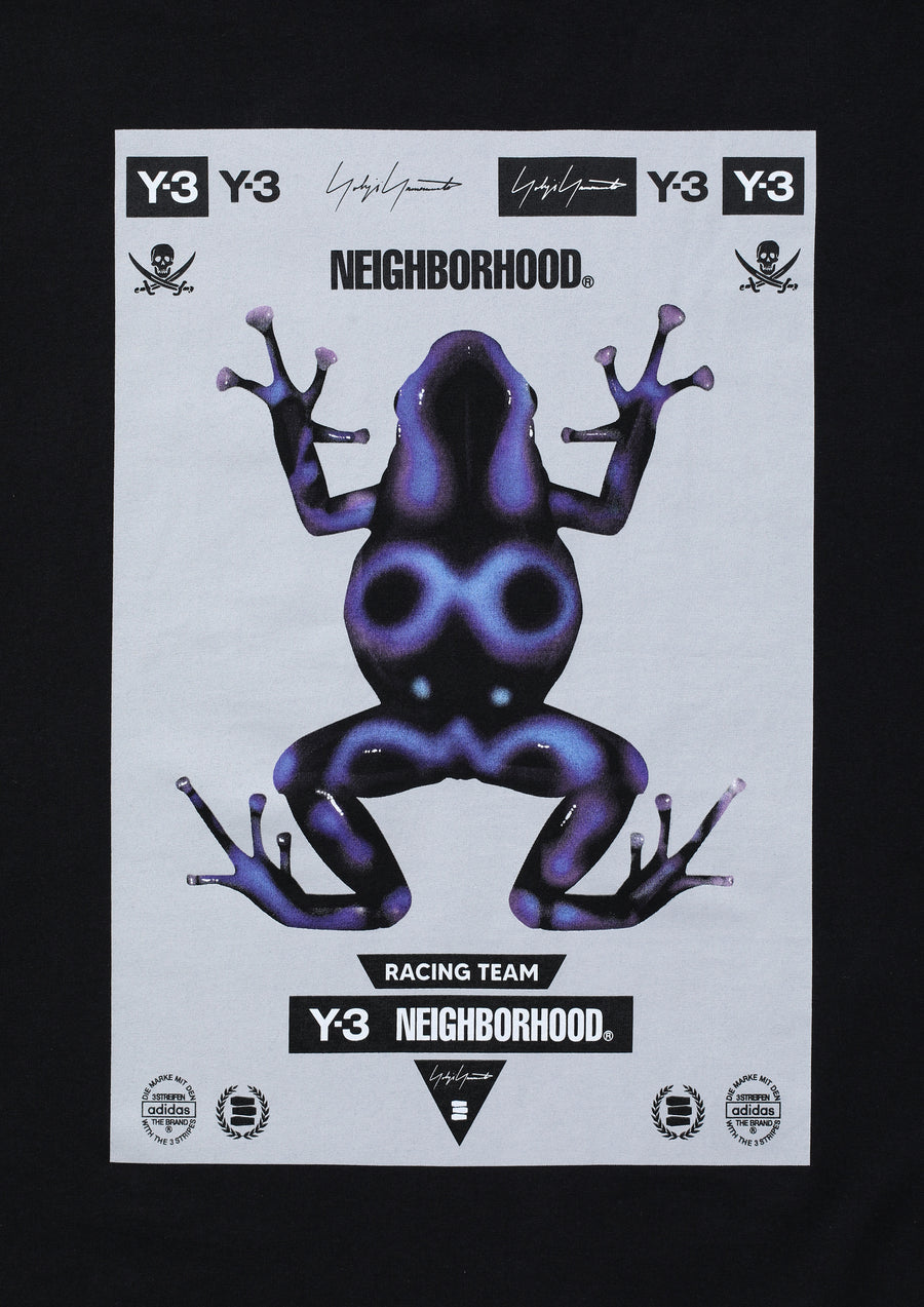 ファッション、アート、モータースポーツの世界に、際立ったビジュアルスタイルとウィット、社会的メッセージを落とし込むイギリス出身の現代アーティストDavid Gwyther主宰DSC (Death Spray Custom)によるグラフィックをプリントしたショートスリーブTシャツ。背面にはロゴをプリント。adidasのスポーツの専門的な技術・機能と山本耀司のデザインが融合したスポーツファッションブランド「Y-3」とのコラボレーション。
