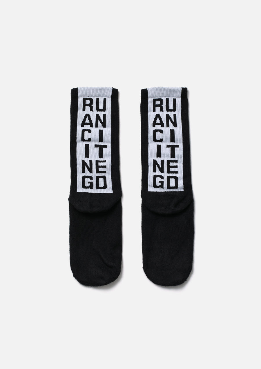 ジャカード編みのロゴとグラフィックを施したリブソックス。adidasのスポーツの専門的な技術・機能と山本耀司のデザインが融合したスポーツファッションブランド「Y-3」とのコラボレーション。