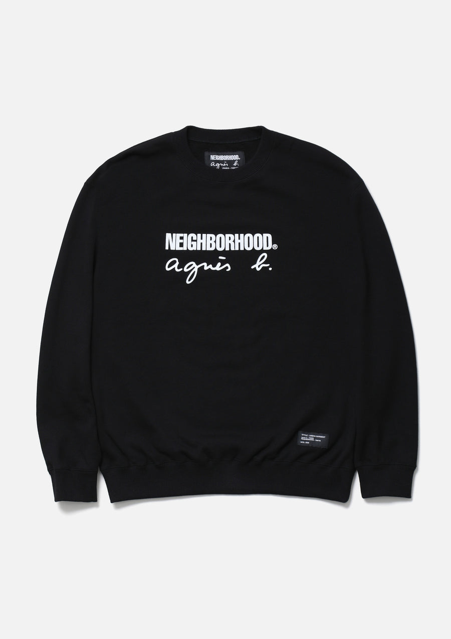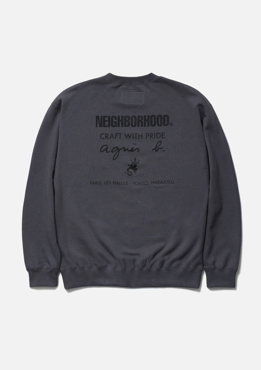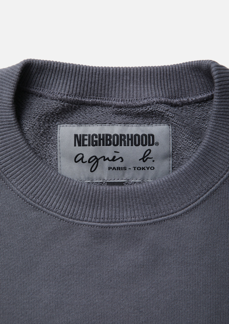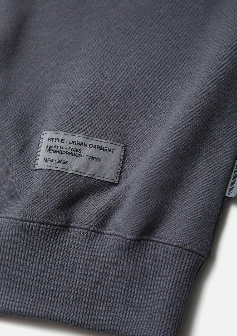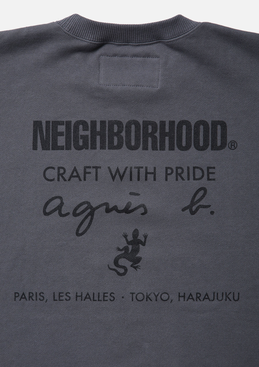 agnès b.定番のプルオーバーをベースにした、コットン裏毛素材のプルオーバースウェット。フロントとバックに両ブランドのロゴをプリント。袖口と裾はリブ仕様。左裾にブランドタグ、脇接ぎにピスネームを付属。ゆとりのあるシルエット。