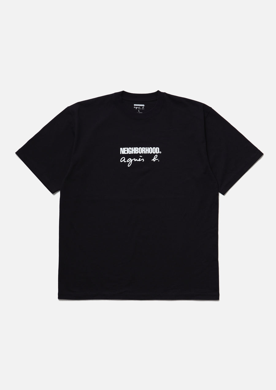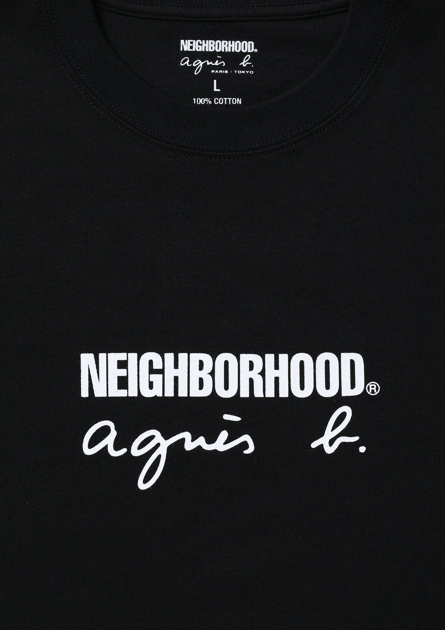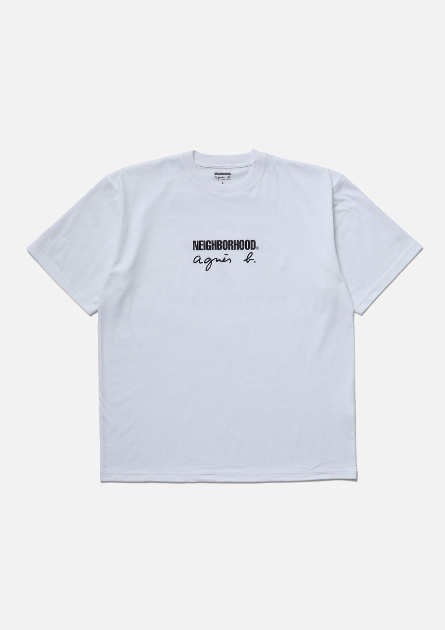 agnès b.オリジナルボディを使用したショートスリーブTシャツ。両ブランドのロゴをプリント。agnès b.とのコラボレーション。