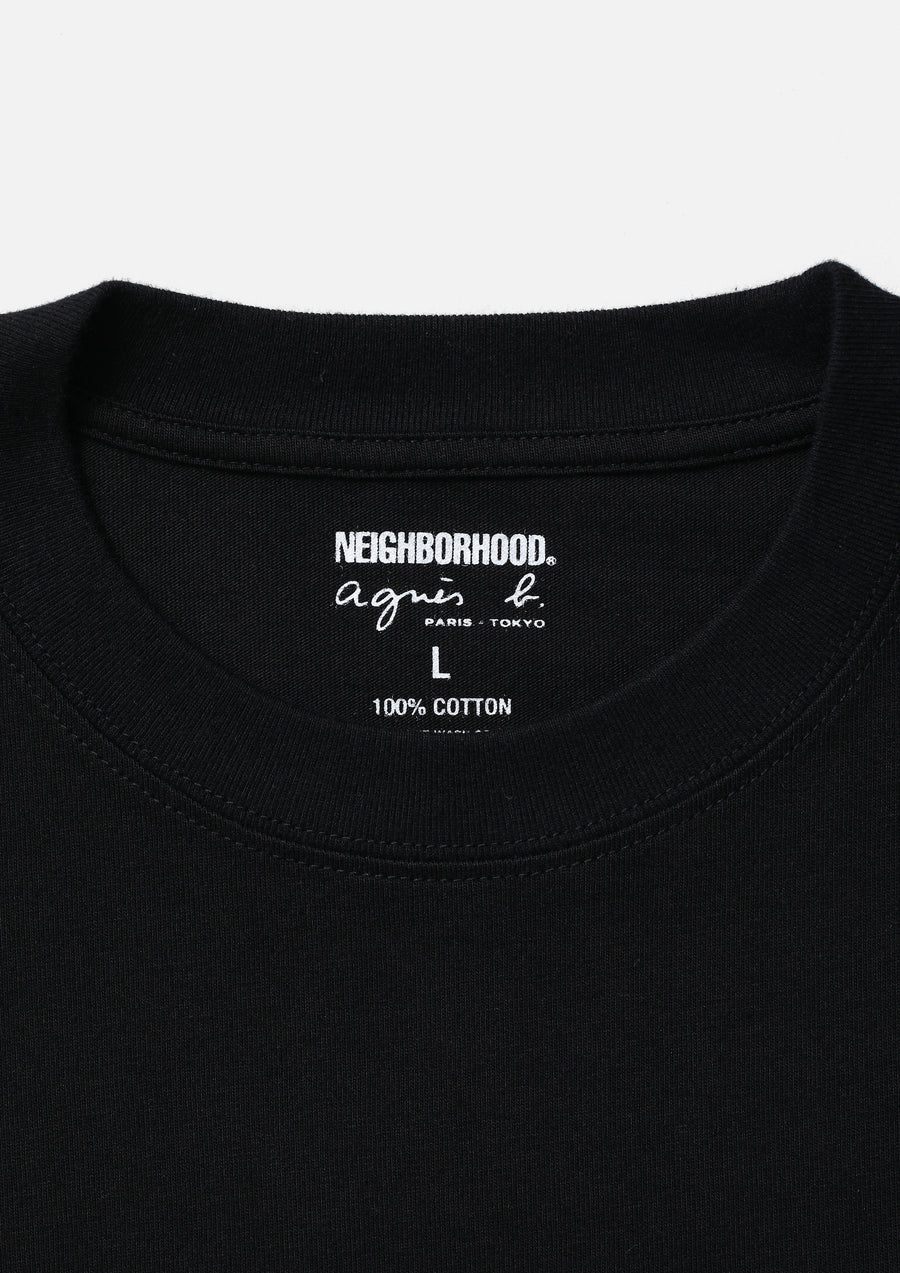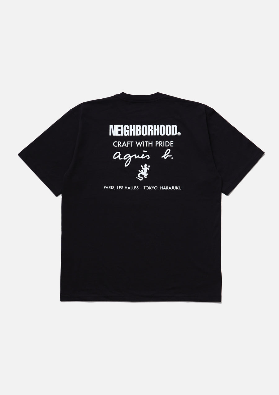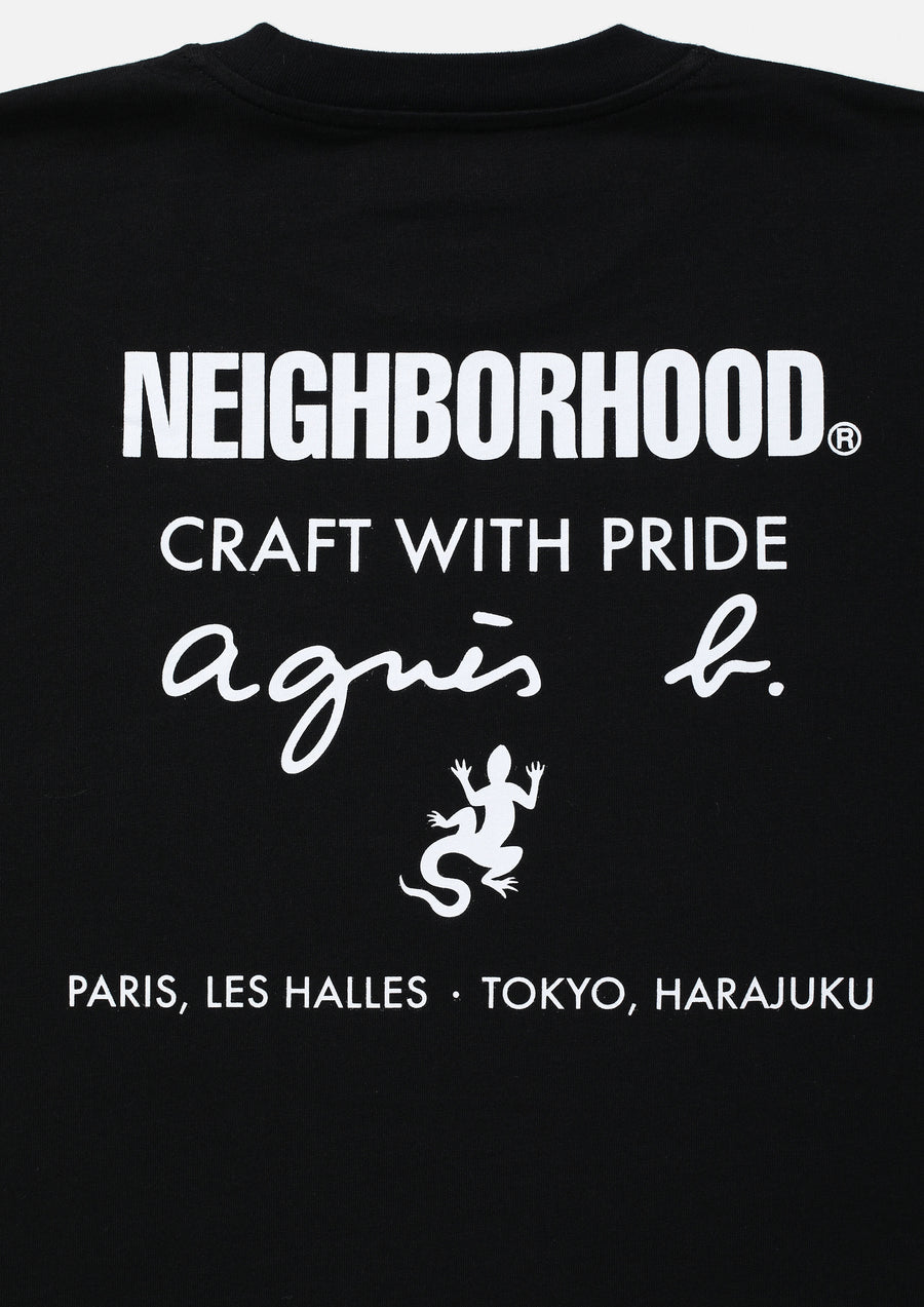 agnès b.オリジナルボディを使用したショートスリーブTシャツ。両ブランドのロゴをプリント。agnès b.とのコラボレーション。