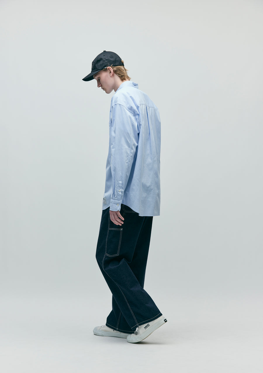 12ozデニム生地を使用したペインターパンツ。、ヒップポケットには"N"型のデザインステッチを施し、ツールポケットやハンマーループを配備。オリジナルのスナップボタン、とフロントファスナー、スレキ生地を採用。ヒップポケット上部にネームタグ、サイドシームにピスネームを付属。ゆとりのあるストレートシルエット。