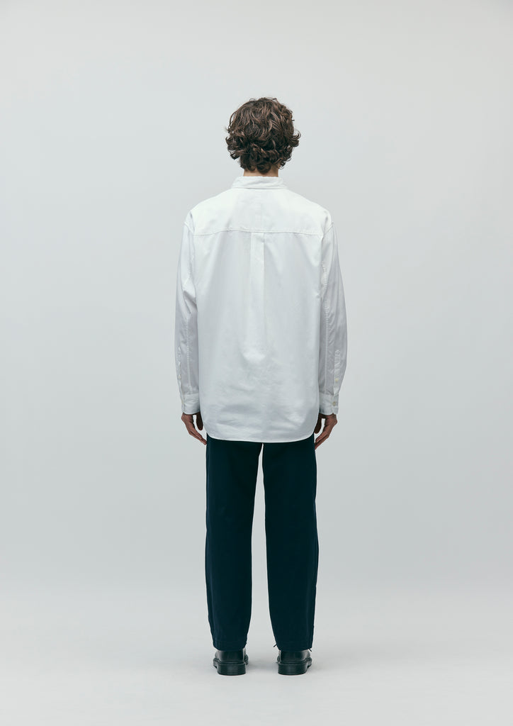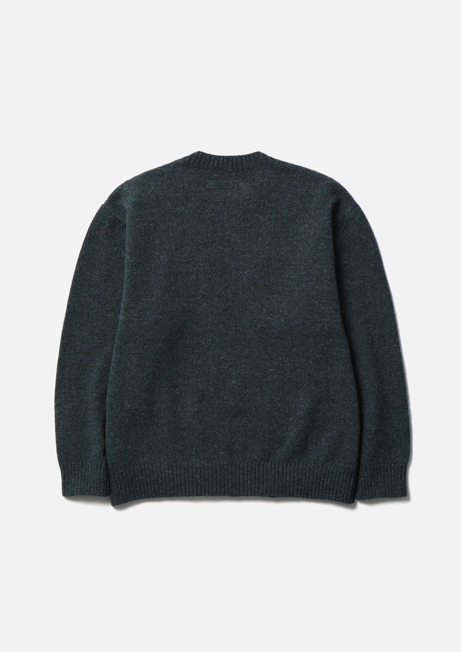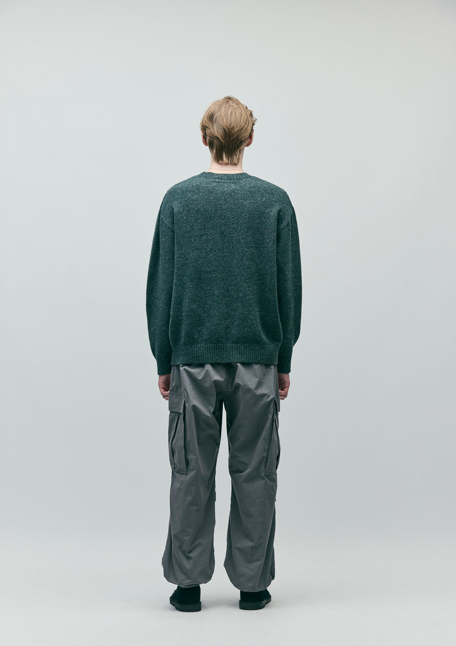 メリノウール素材を使用し、5ゲージ天竺編みで仕上げたクルーネックニット。左裾にネームタグを配置。