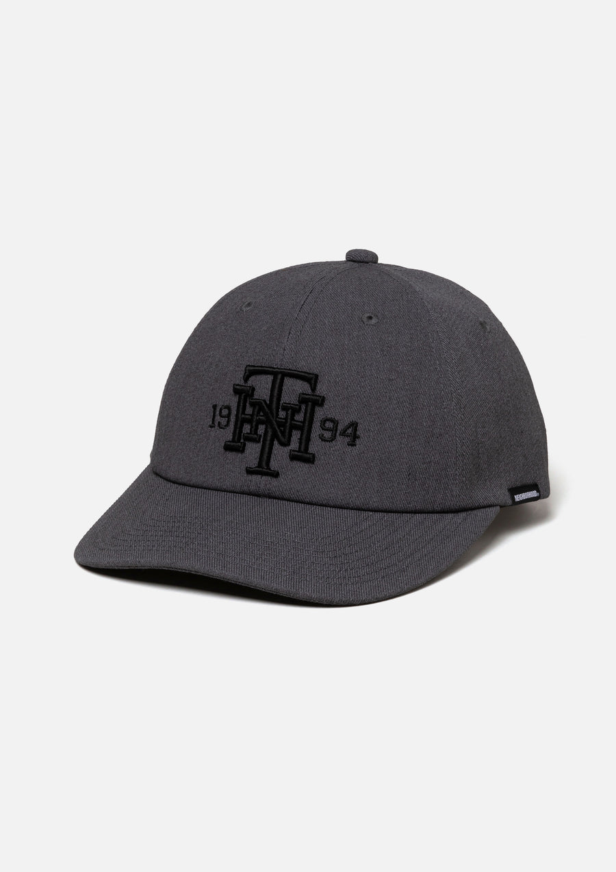 強撚の糸を使用した、耐久性や吸水速乾性に優れるT/Cカツラギ素材のベースボールキャップ。フロントにロゴと創立年を3D刺繍と振り刺繍で表現。後部アジャスターにはオリジナルバックルを採用。左サイドにピスネームを付属。